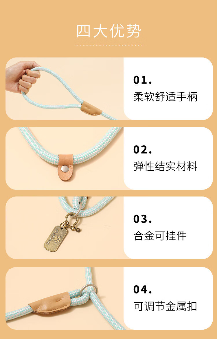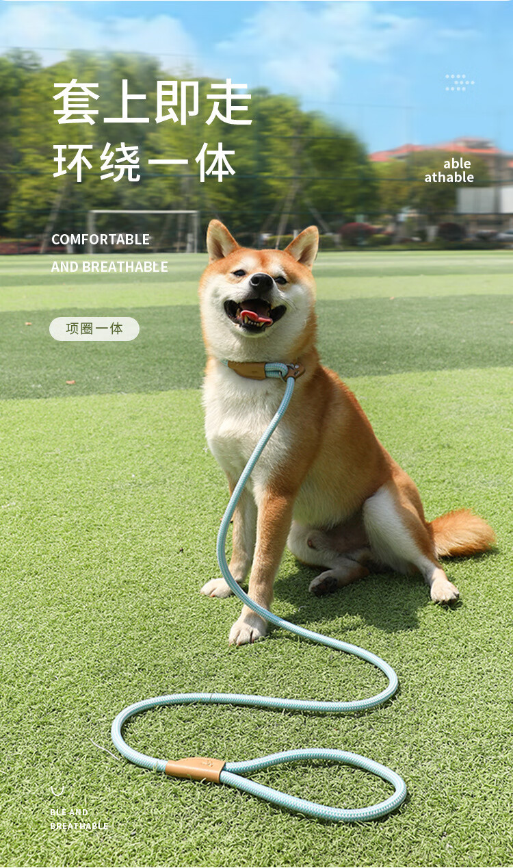 Dog rope training p chain explosion-proof dog walking rope dog rope chain medium p rope large, medium and small dog walking dog leash sky blue 1.5*0.6