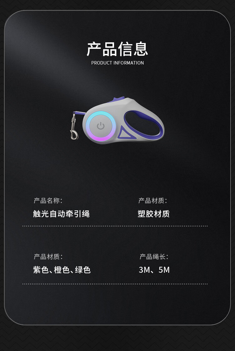 LED light-up dog leash pet automatic leash telescopic dog leash dog leash dog supplies rope explosion-proof punch-Dream Purple 5 meters No Specifications