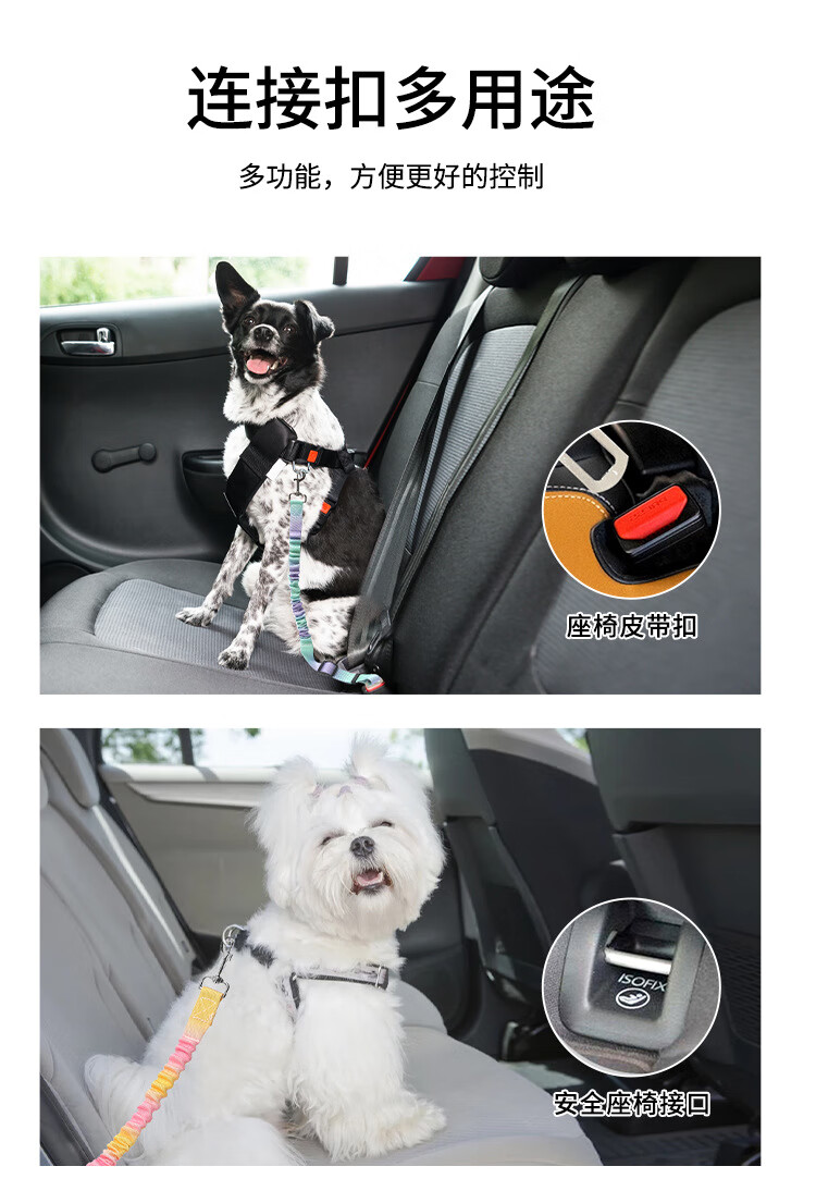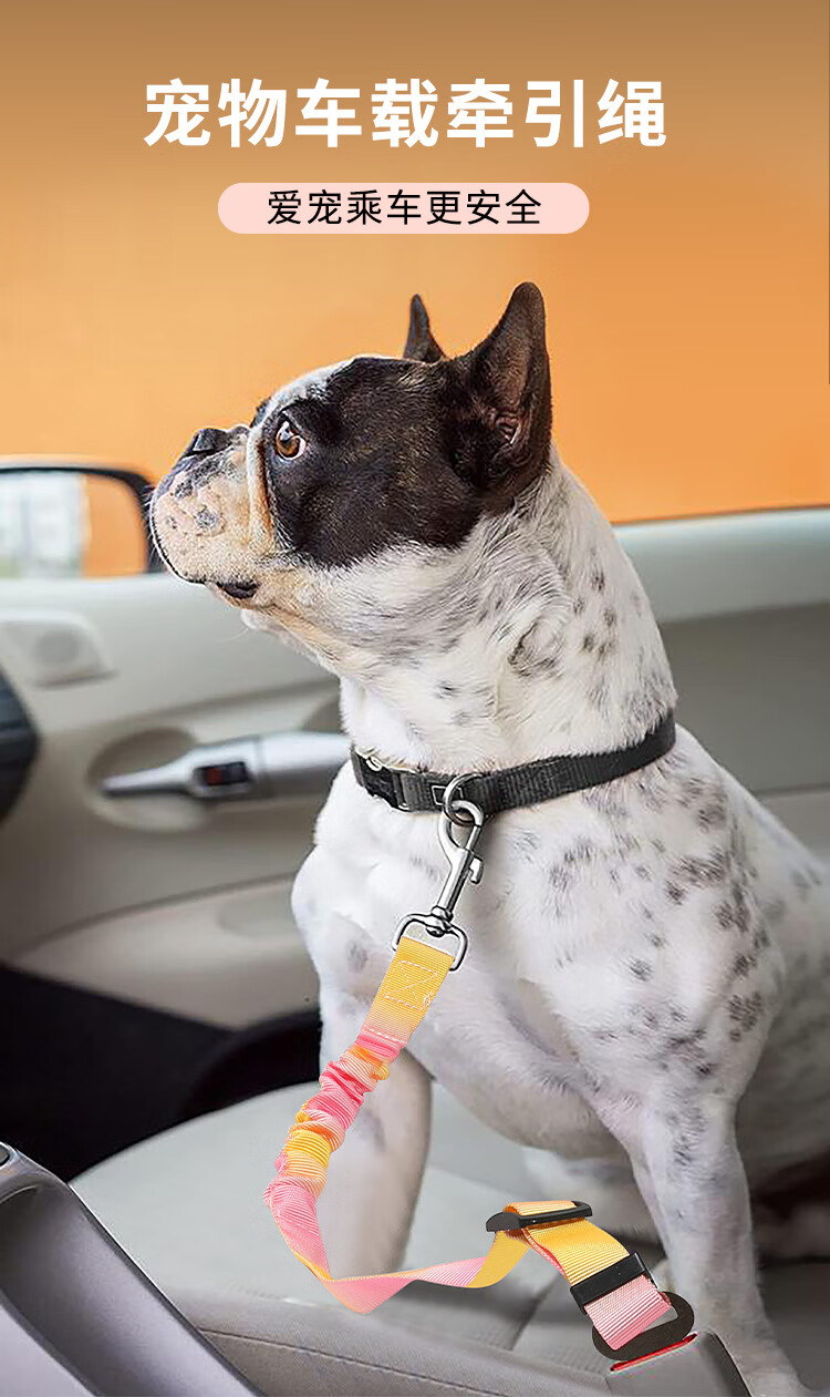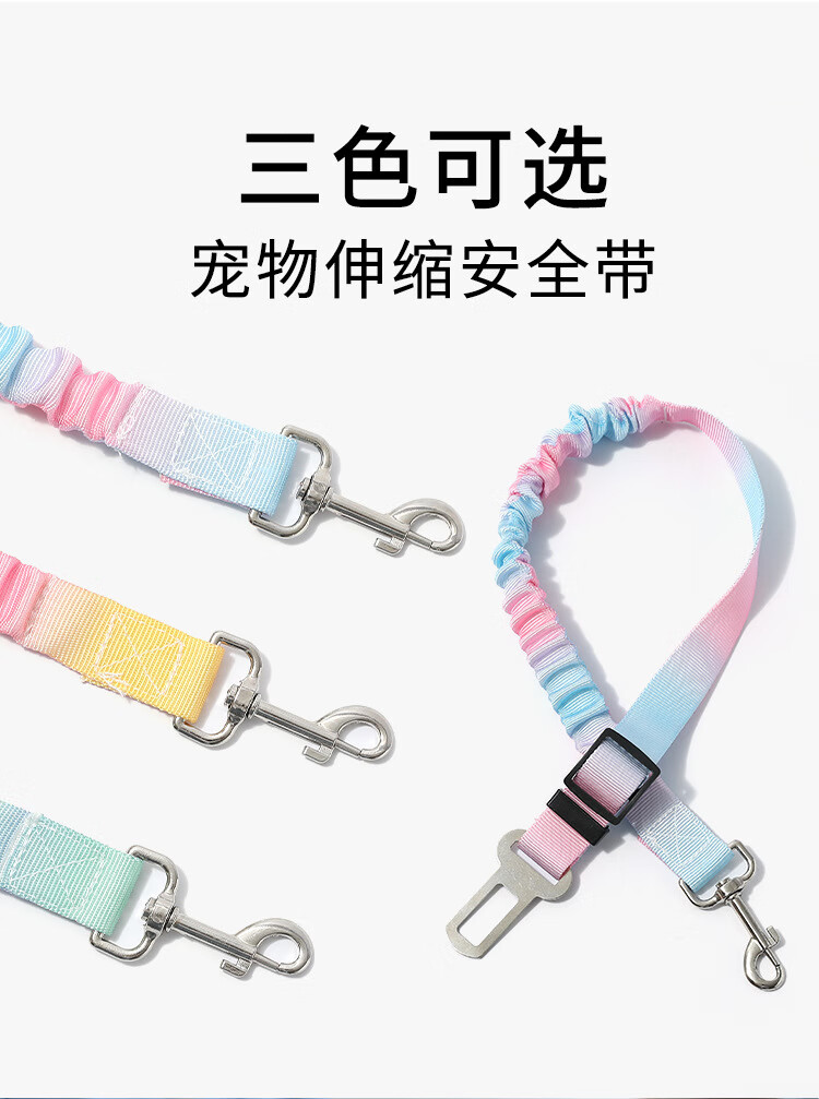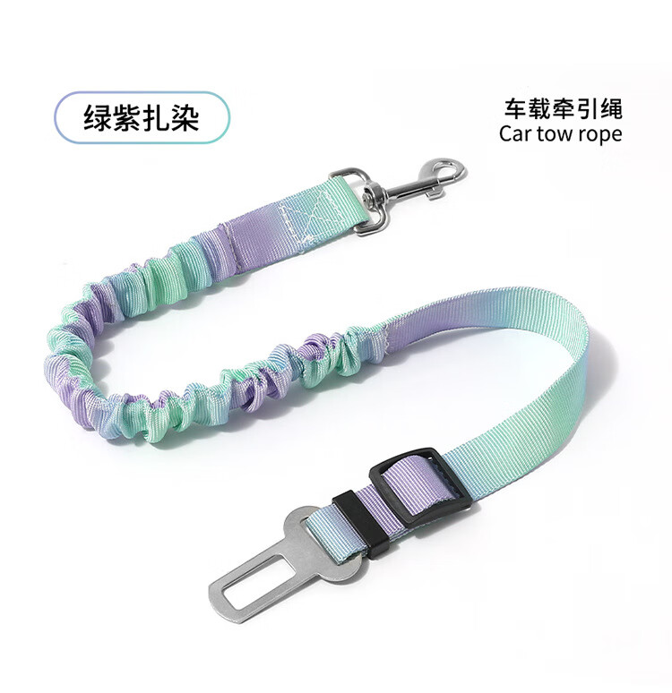 Pet car seat belt, retractable dog safety rope, travel car traction belt, fixed, safe and anti-escaping, green and purple gradient, length 60-80cm*width 2.5cm (elastic rope)