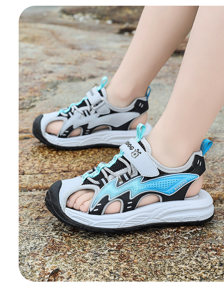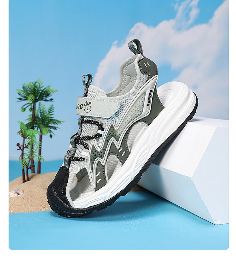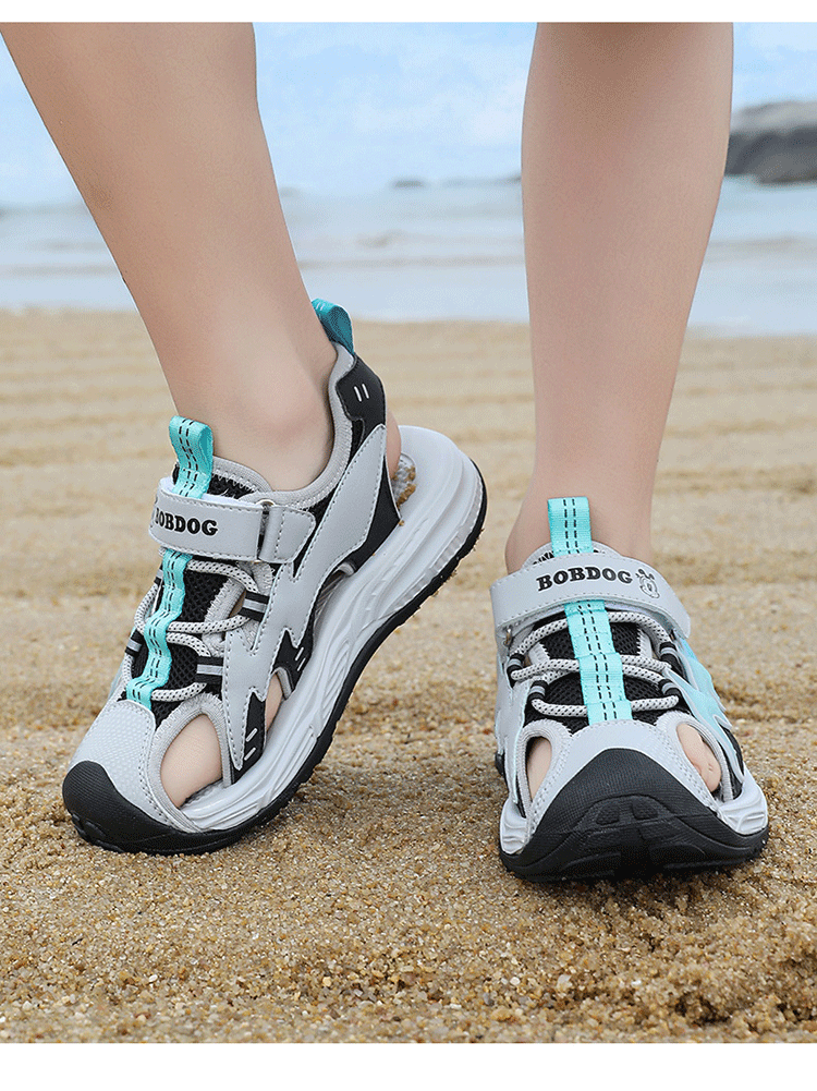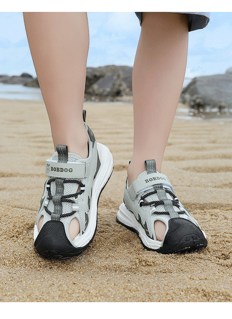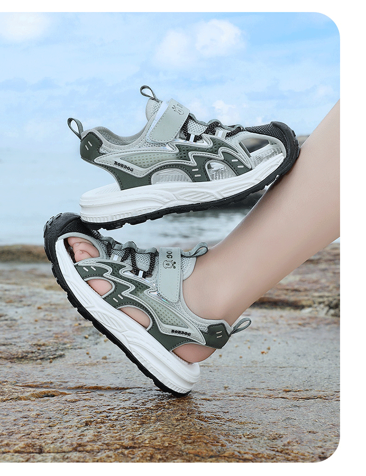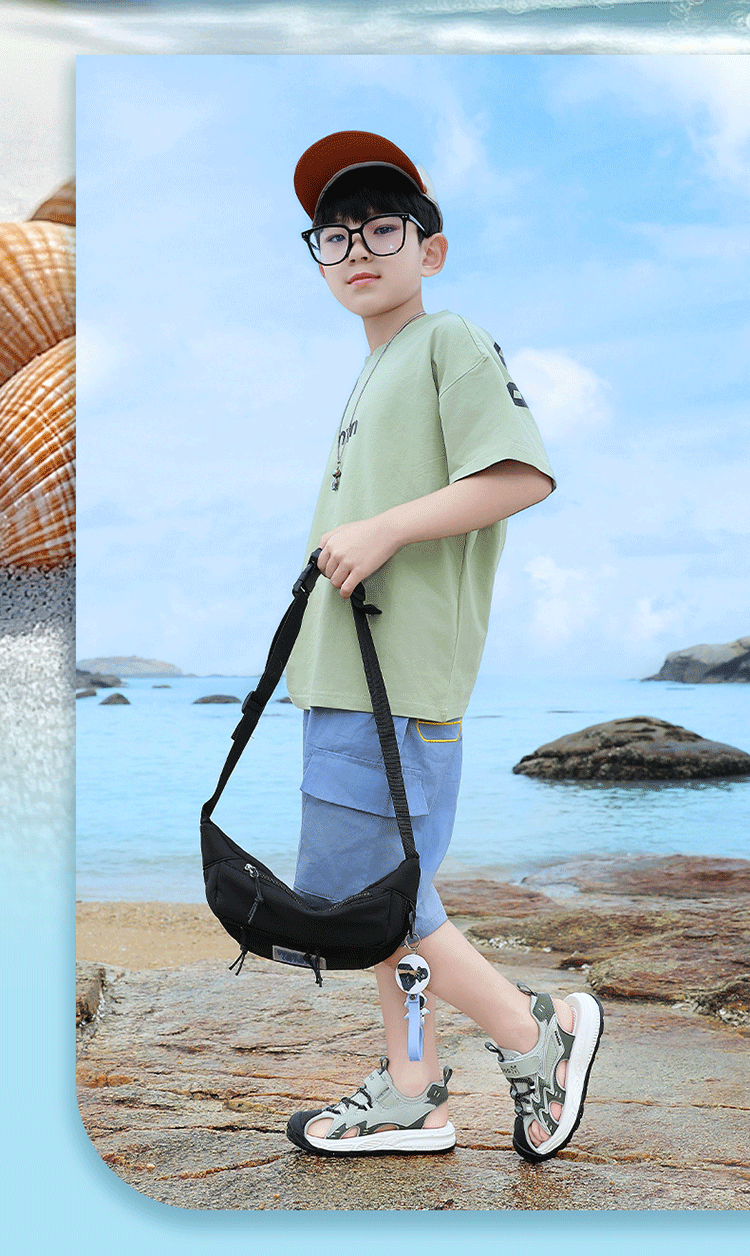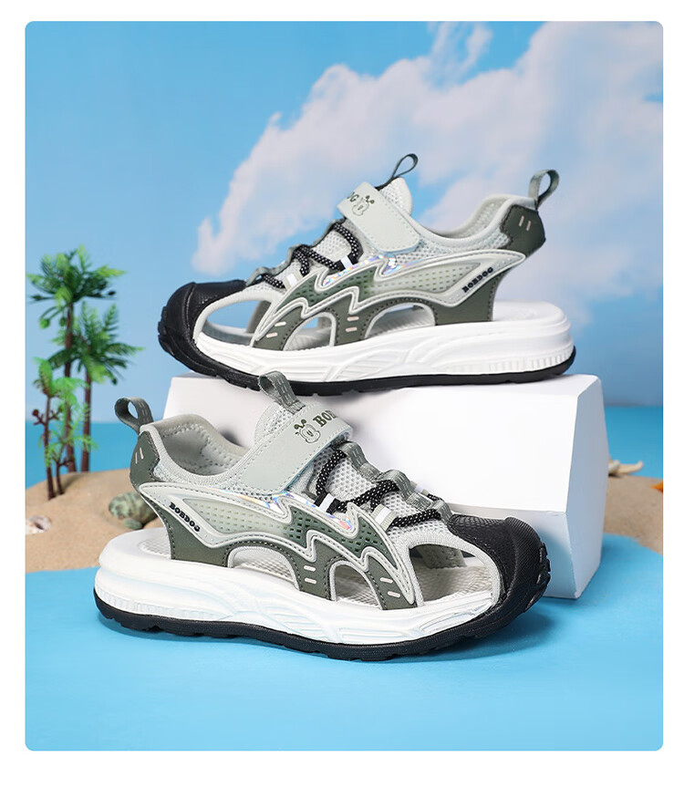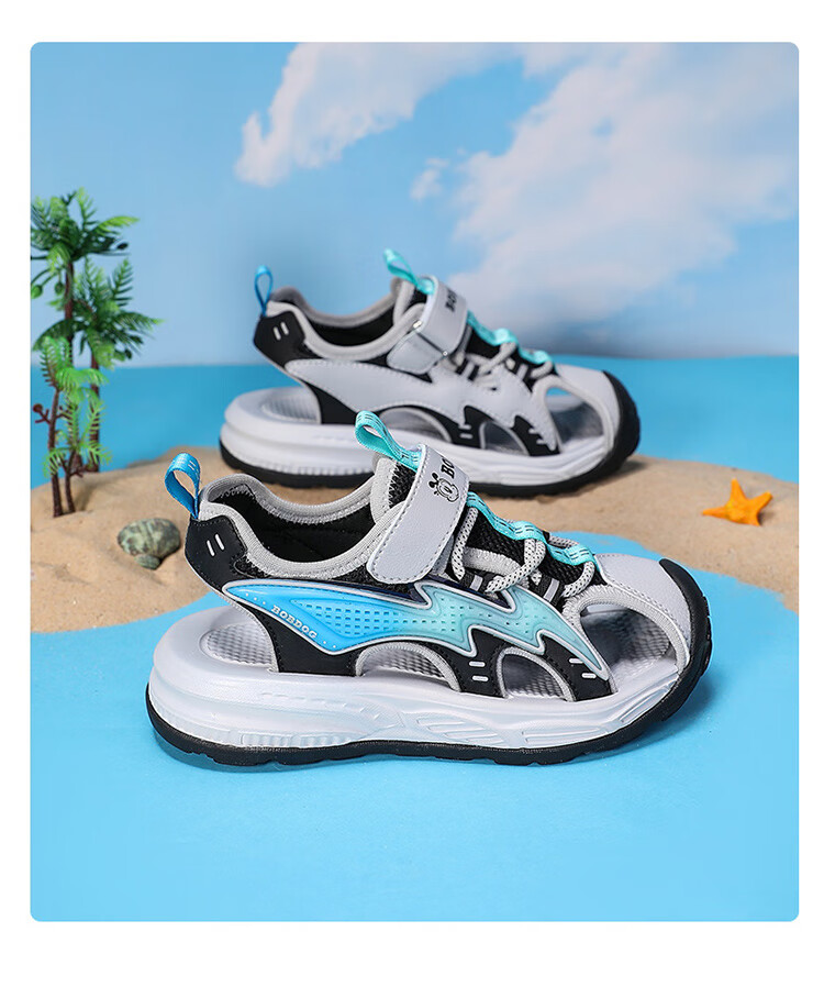 Babudou boys' toe-toe sandals summer new style breathable soft sole non-slip casual shoes sports sandals for middle-aged and older students student sandals beige 34