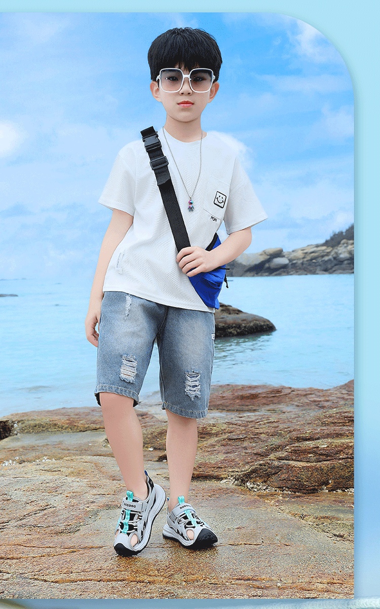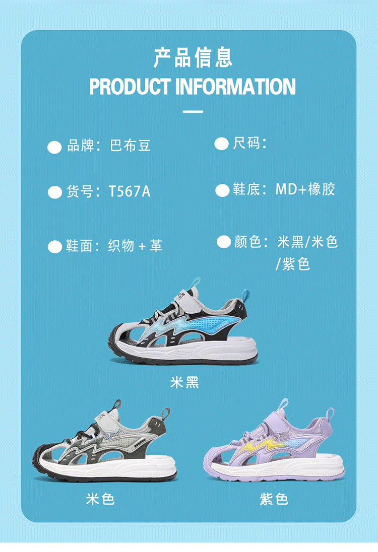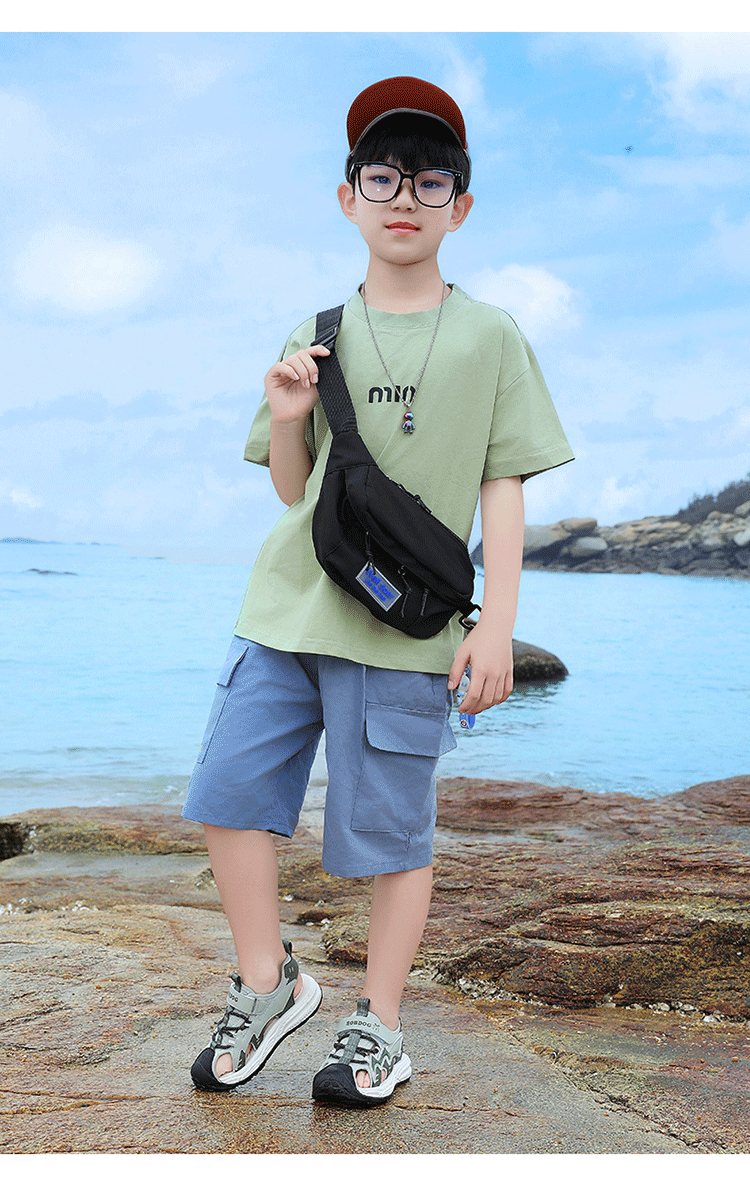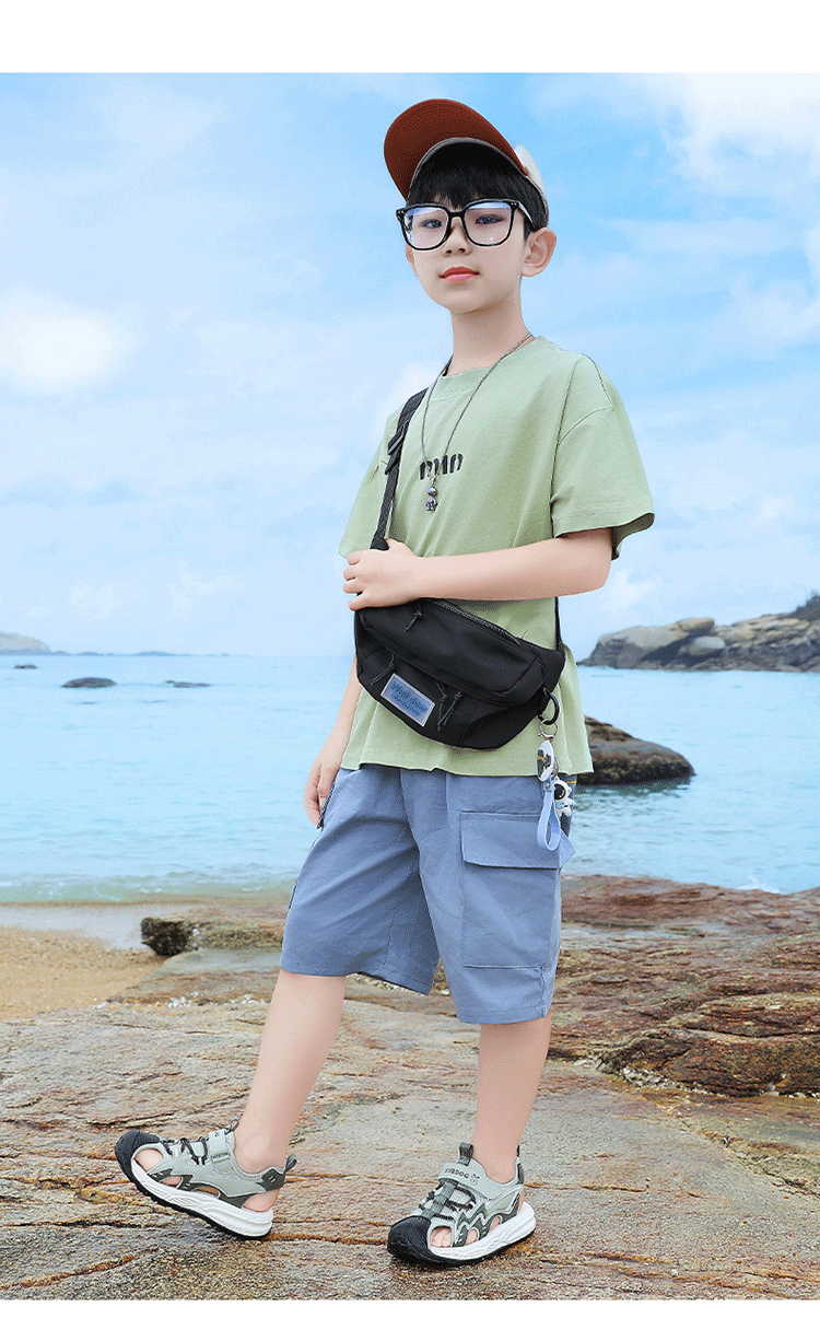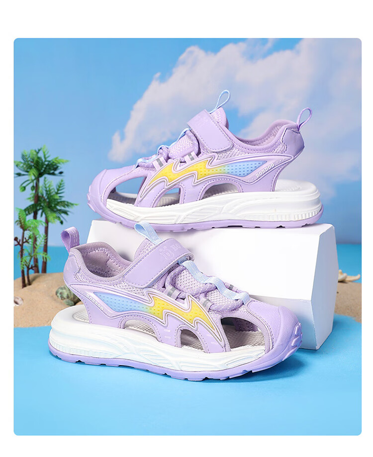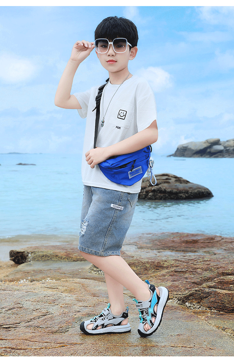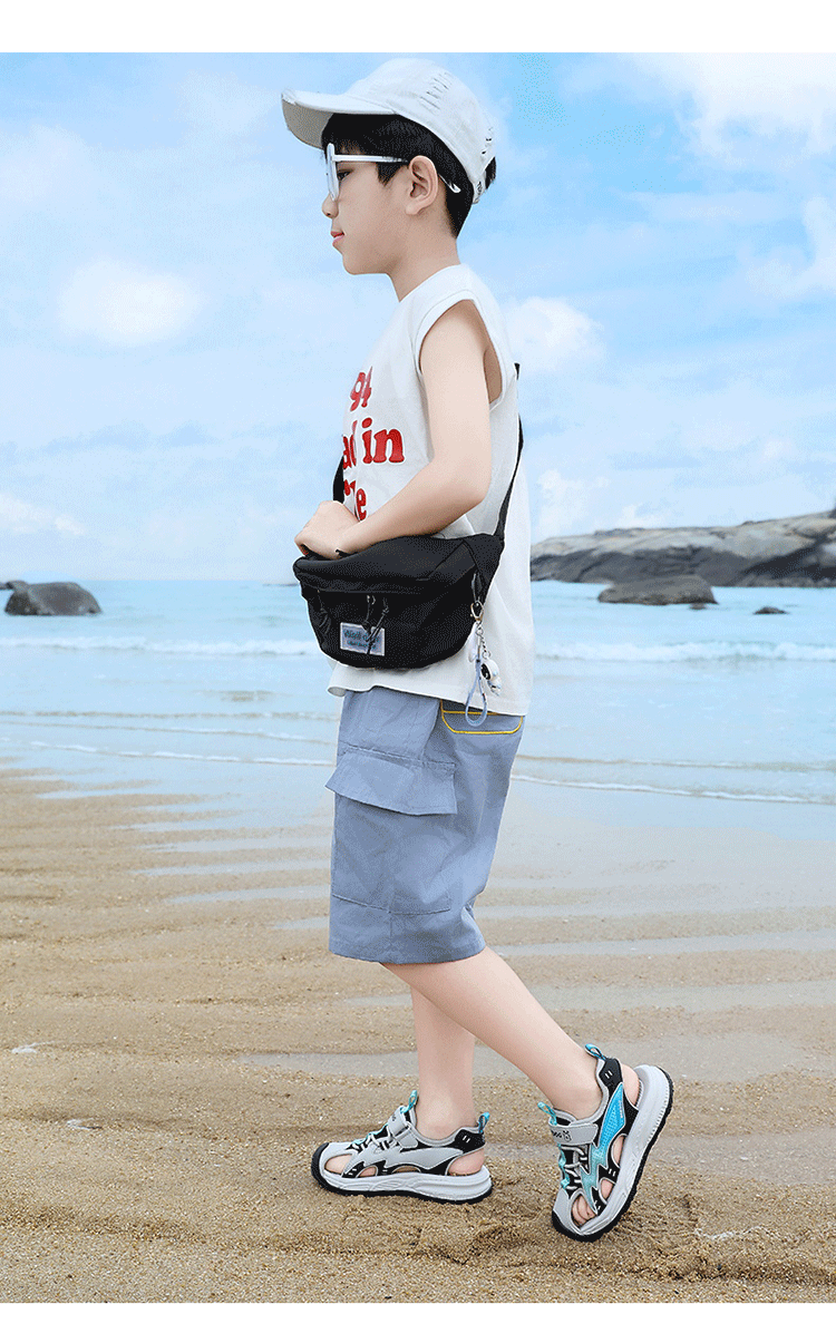 Babudou boys' toe-toe sandals summer new style breathable soft sole non-slip casual shoes sports sandals for middle-aged and older students student sandals beige 34
