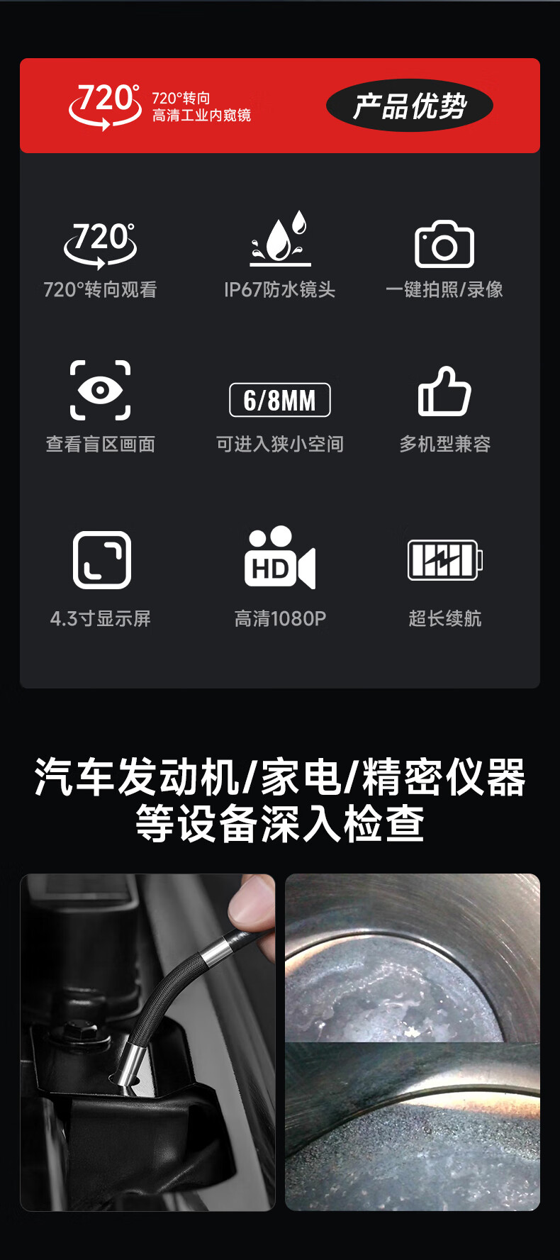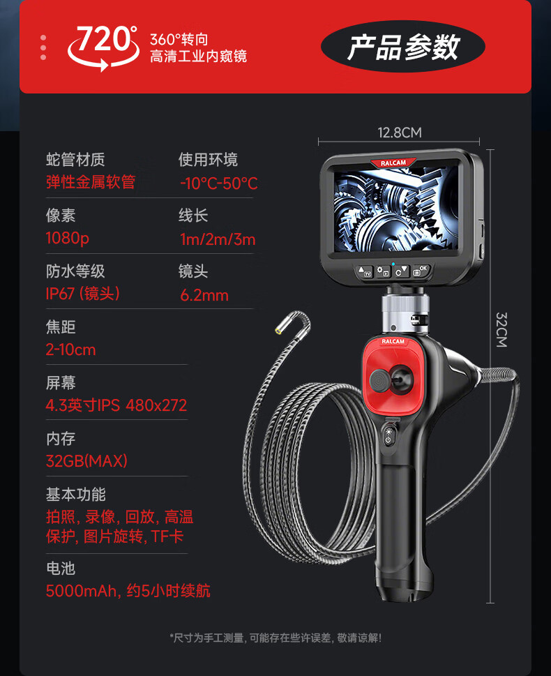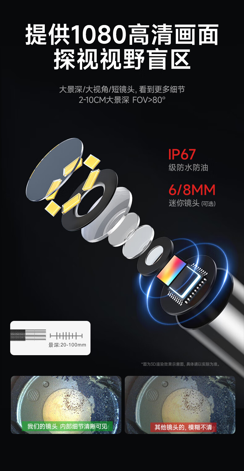 Dr. Jiang endoscope industrial-grade high-definition camera car maintenance pipeline air conditioning probe 7.2 million universal 8mm-3 meters