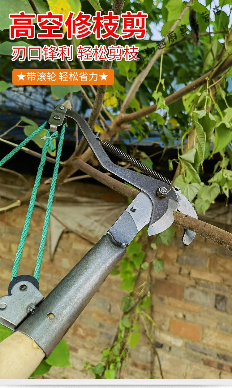 Miaopule fruit-picking shears, high-altitude tree-cutting shears, fruit-picking artifacts, German craftsmanship, high-end quality, stretchable, labor-saving black medium-sized double-wheeled model + 5-meter rope + elastic