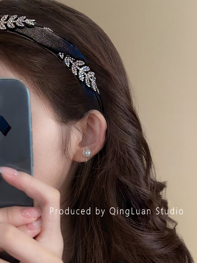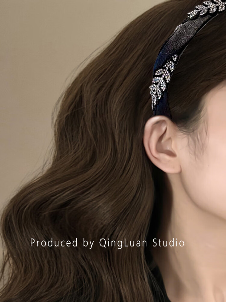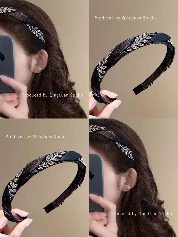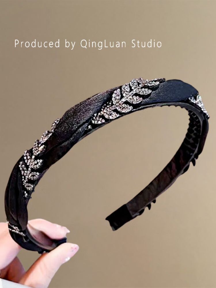 YIZUN. CHOMEL temperament sparkling diamond_fabric rhinestone wheat ear headband for women, high-end, foreign, fashionable, light luxury, high-end headband hair twister, black