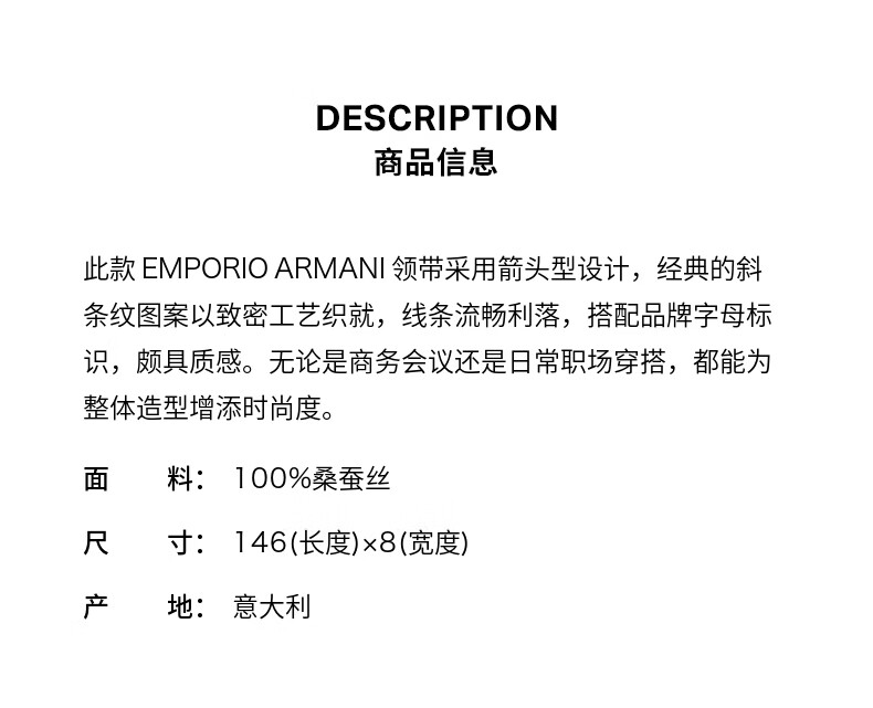 EMPORIO ARMANI/Armani official flagship New Year gift men's mulberry silk diagonal striped hand tie accessories autumn and winter 47635-sea blue one size