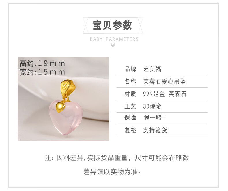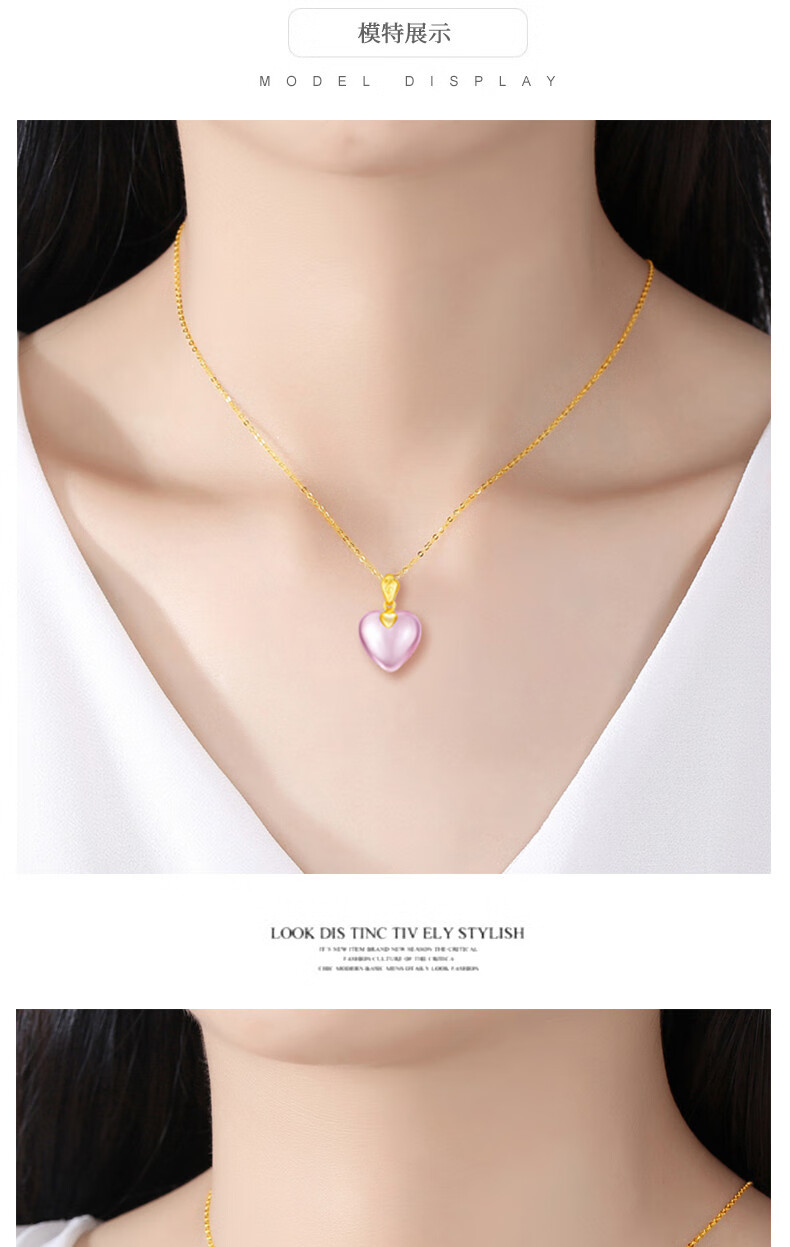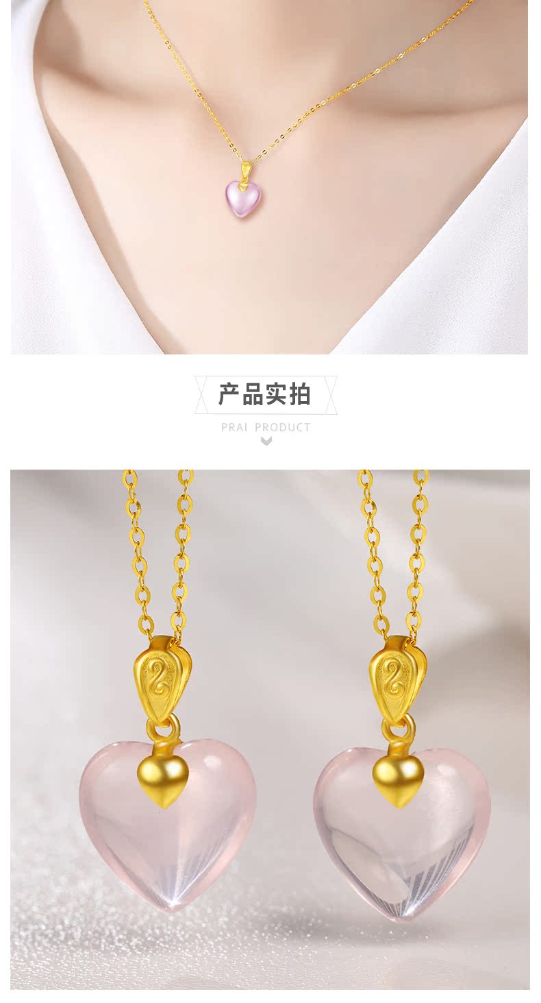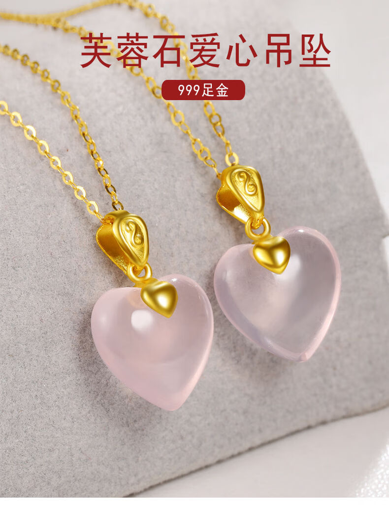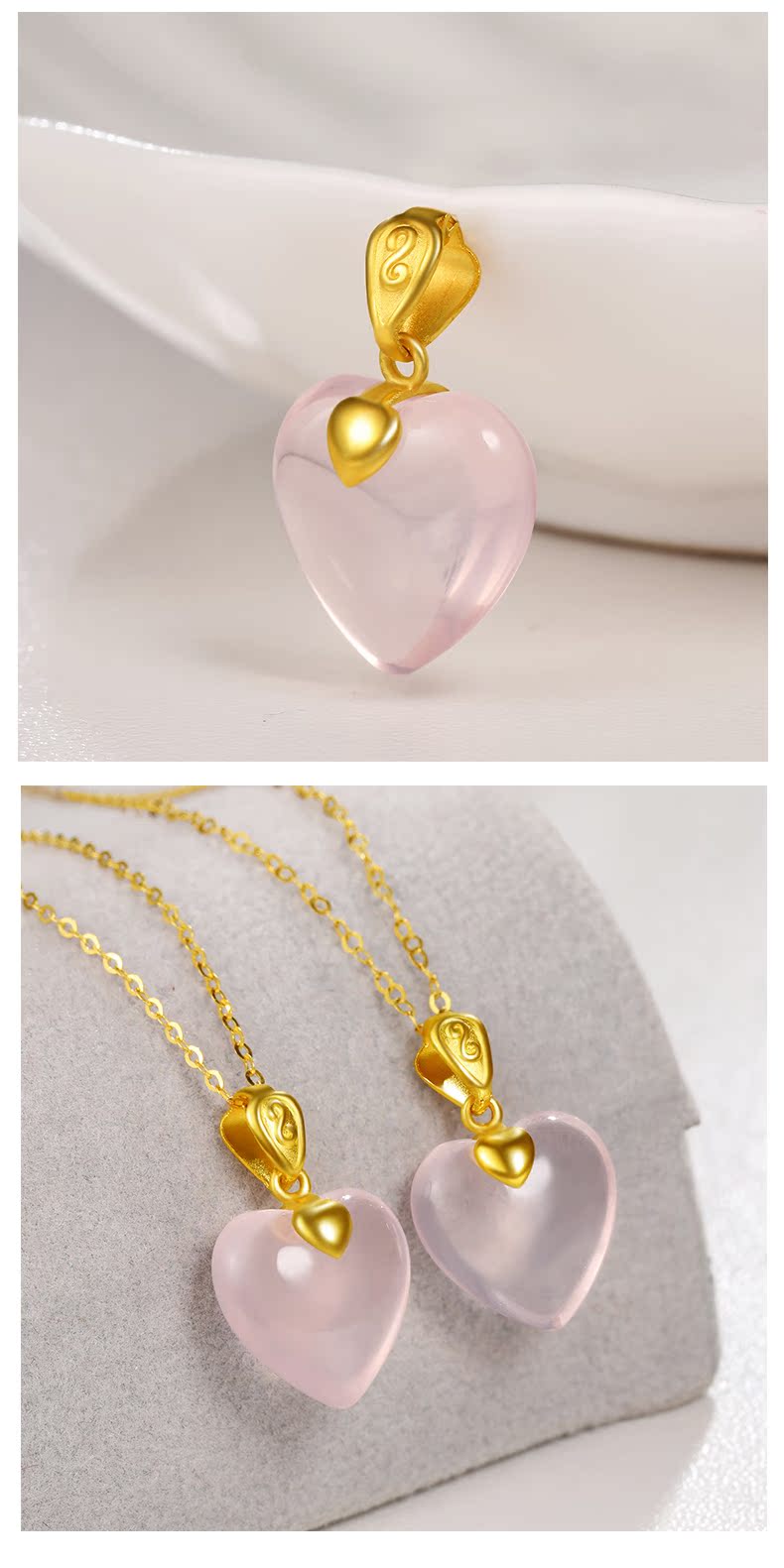 Iosn999 pure gold hibiscus stone peach heart pendant pure gold love necklace pink crystal heart-shaped clavicle chain Chinese Valentine's Day gift hibiscus stone love pendant free gold-plated silver necklace