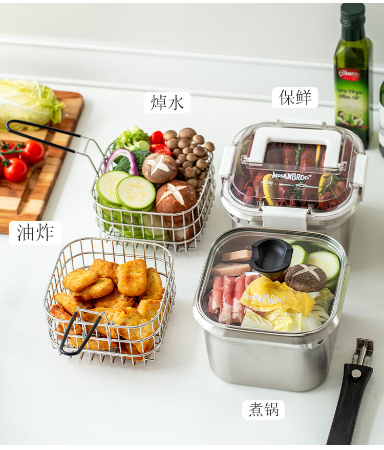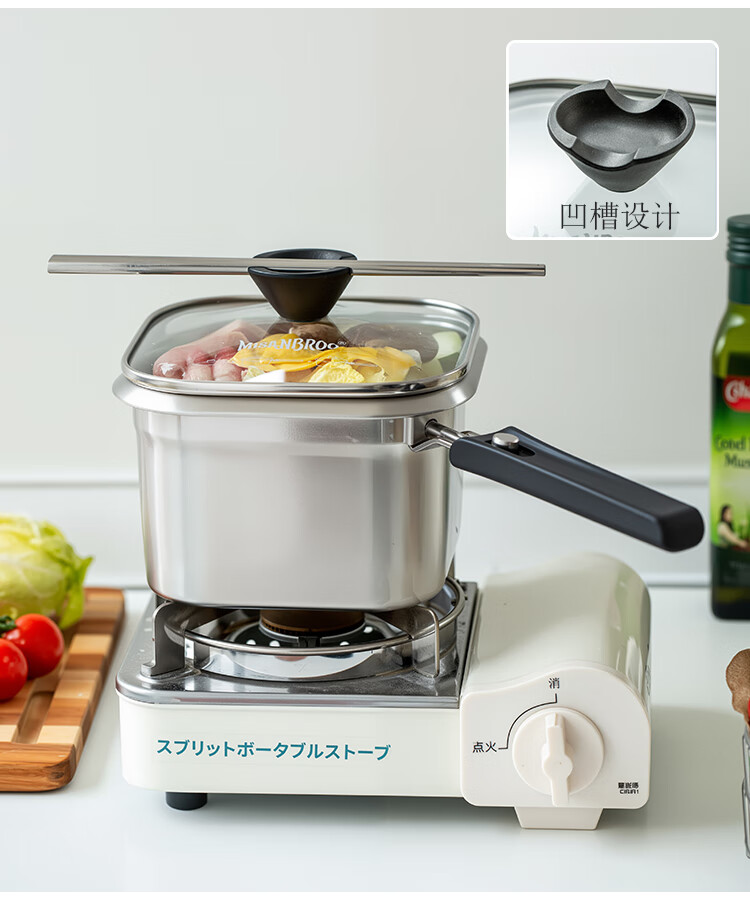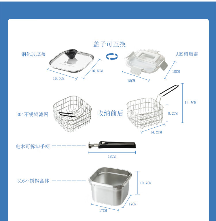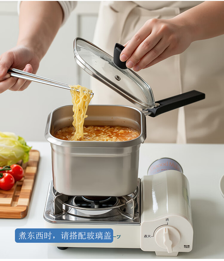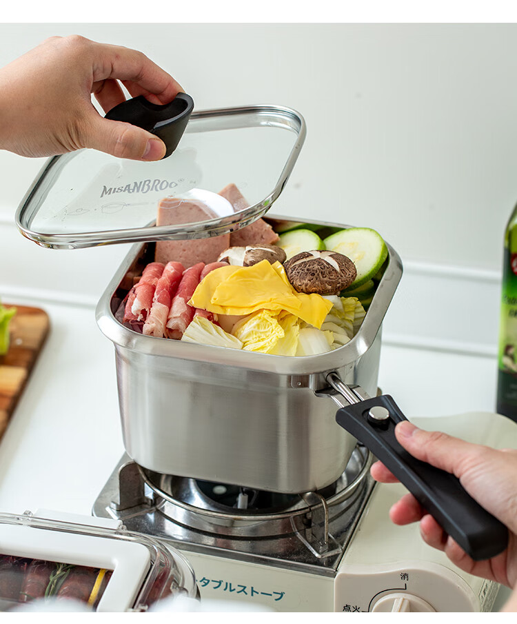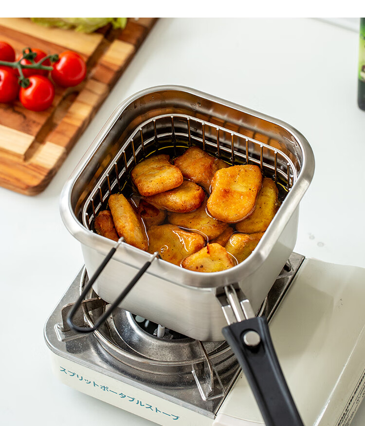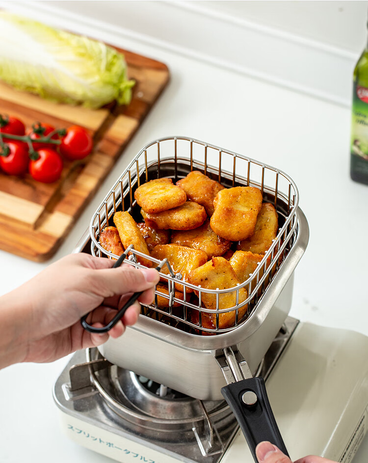 MISANBROO Finnish fryer household 316 stainless steel provincial fried chicken nuggets with filter mini camping picnic pot multi-functional cooking pot + glass lid 17cm