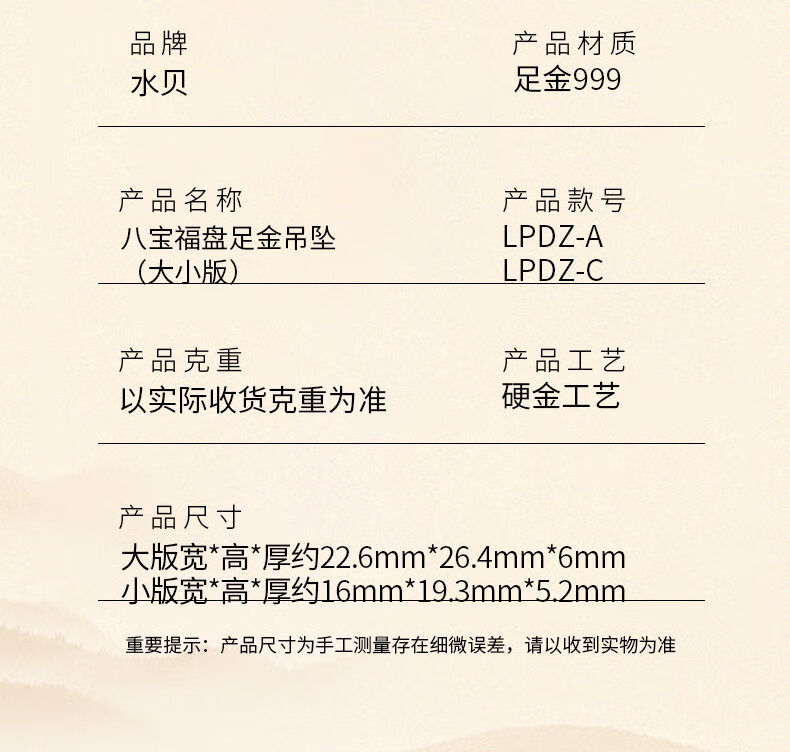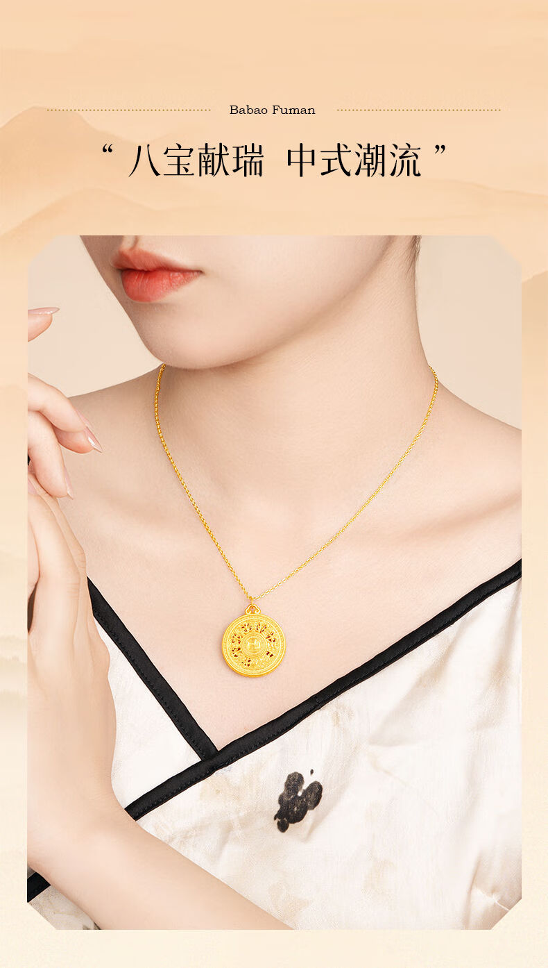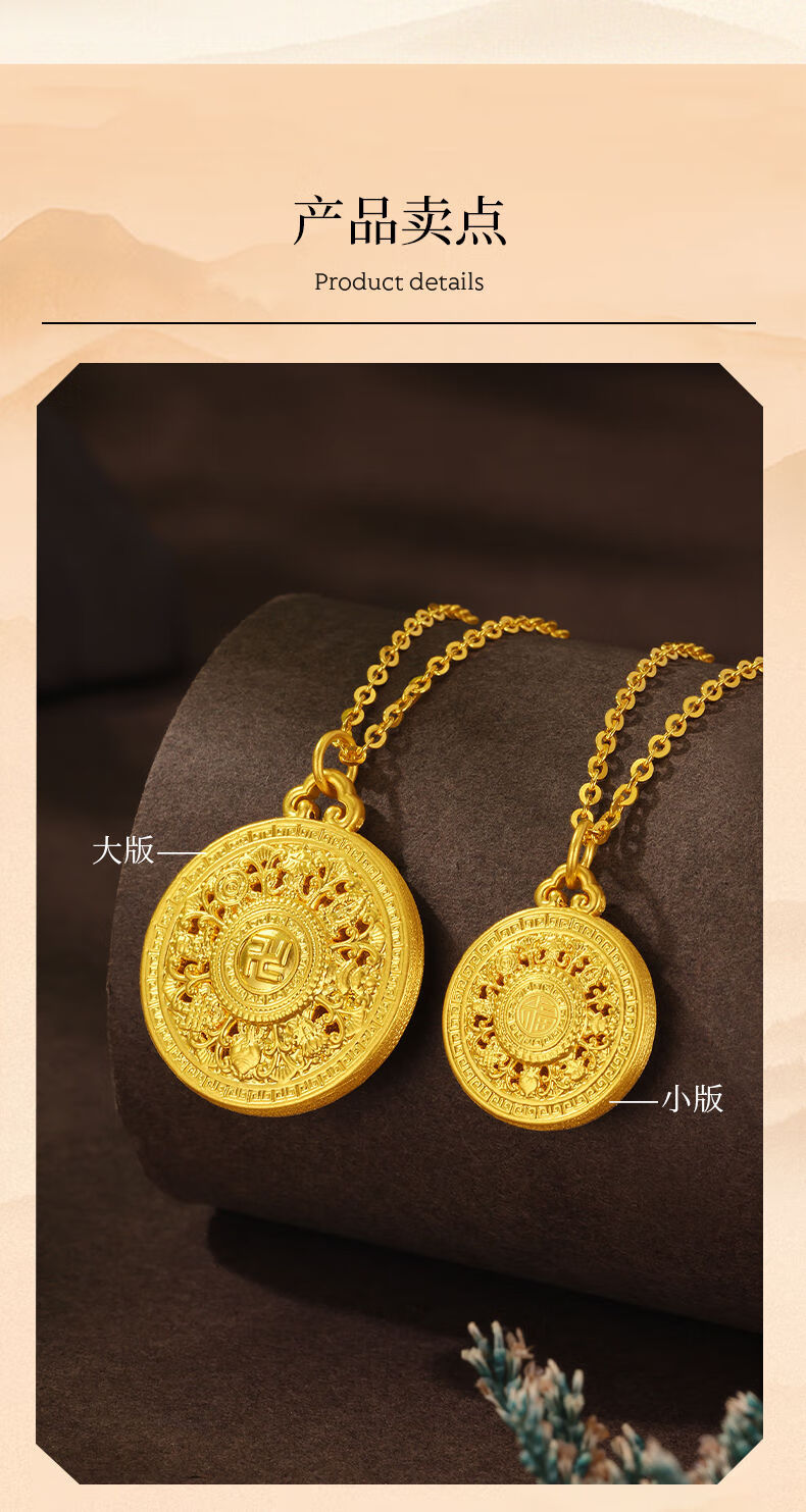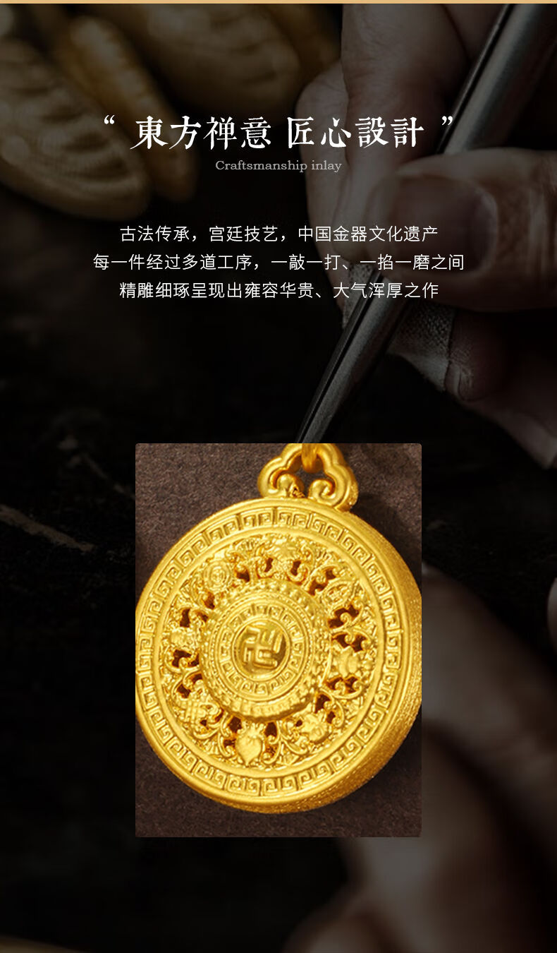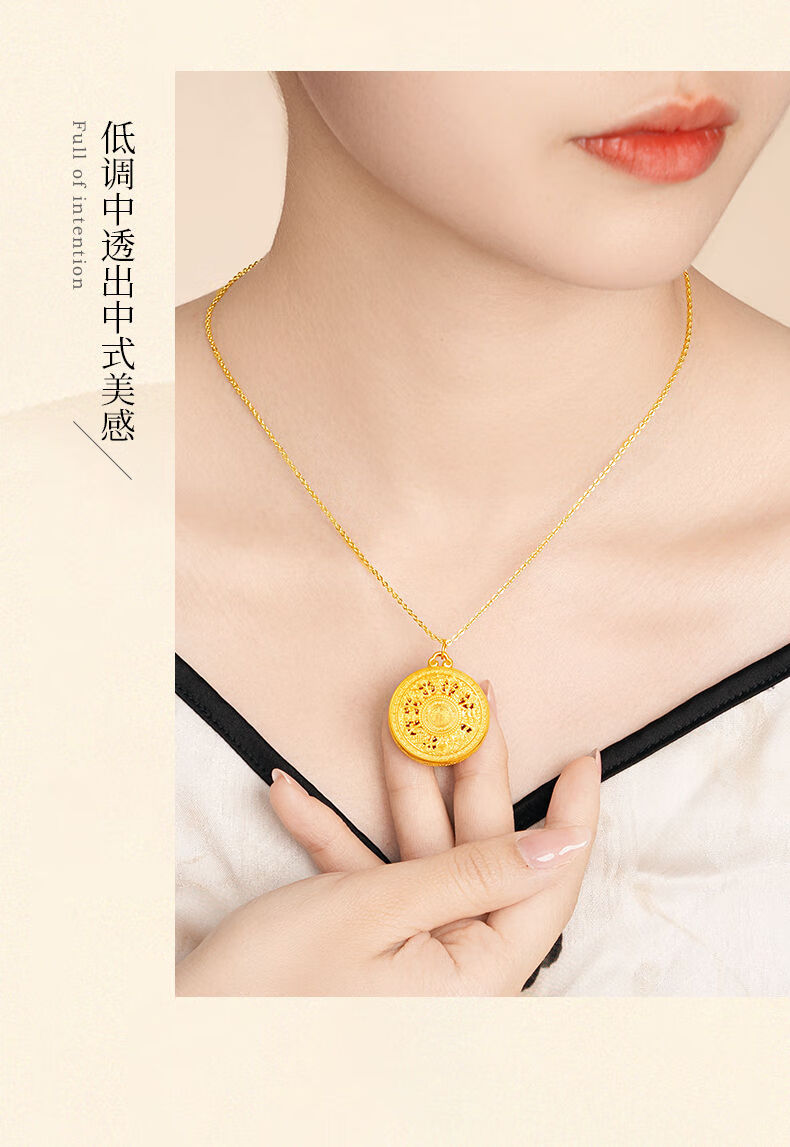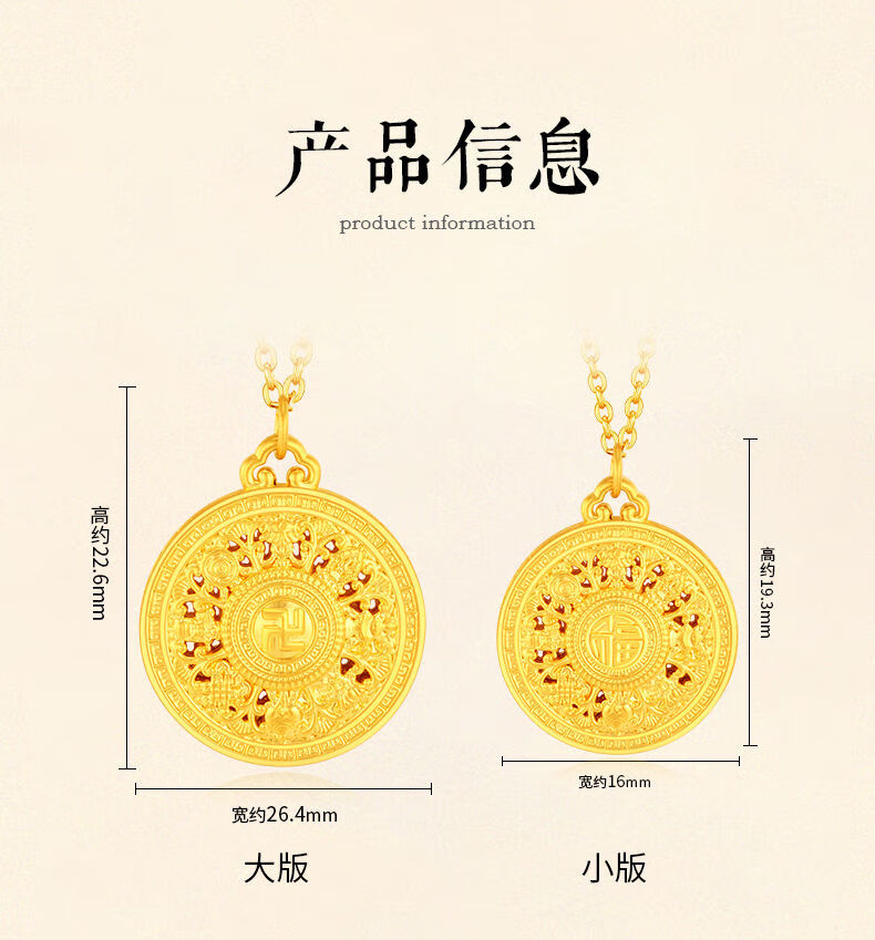 IosnIOSN gold official flagship store 999 pure gold eight treasure compass pendant pure gold small gram heavy gold ornaments couple pendant eight treasure compass pure gold pendant small version about 1.1g
