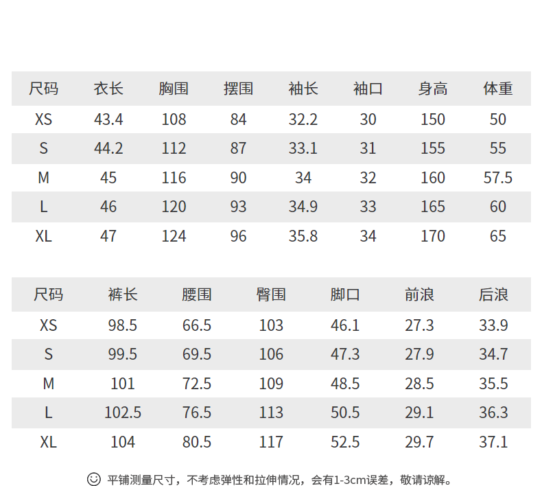 Outseam (cm) 99 cm 101.5 cm 104 cm 106.5 cm 109 cm