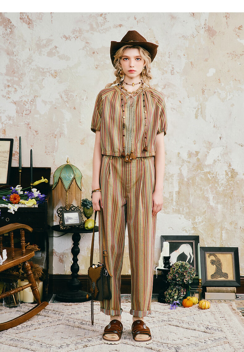 Wancaoyi 2025 new summer striped casual fashion suit olive green L