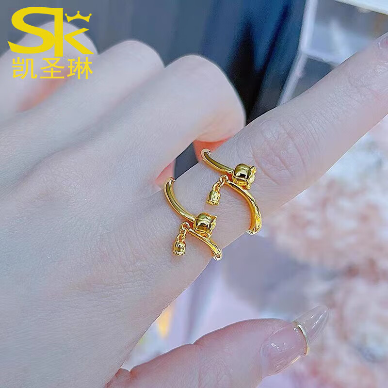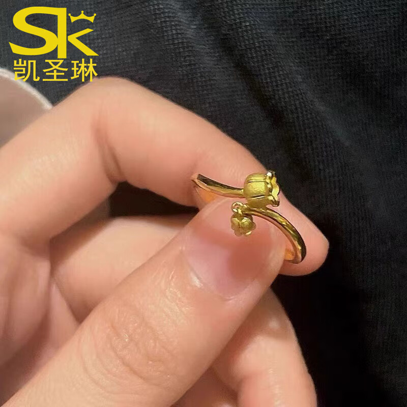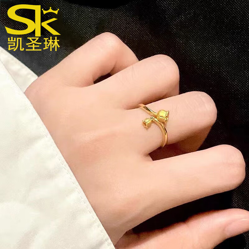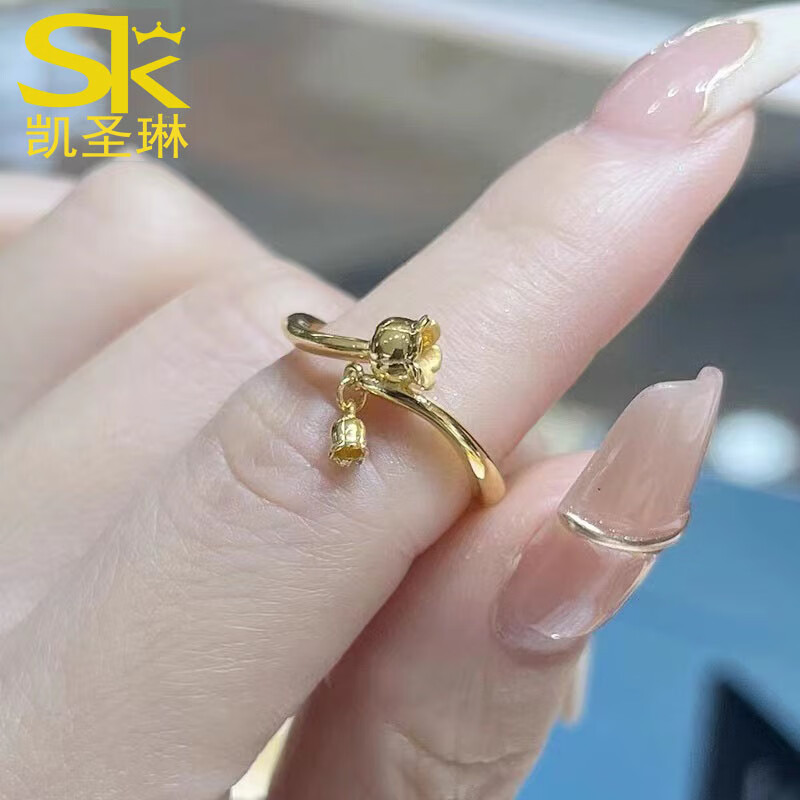 Iosn gold lily of the valley flower ring female 999 pure gold flower ring 3D hard gold wedding ring transfer bead tail ring adjustable about 2.60 grams