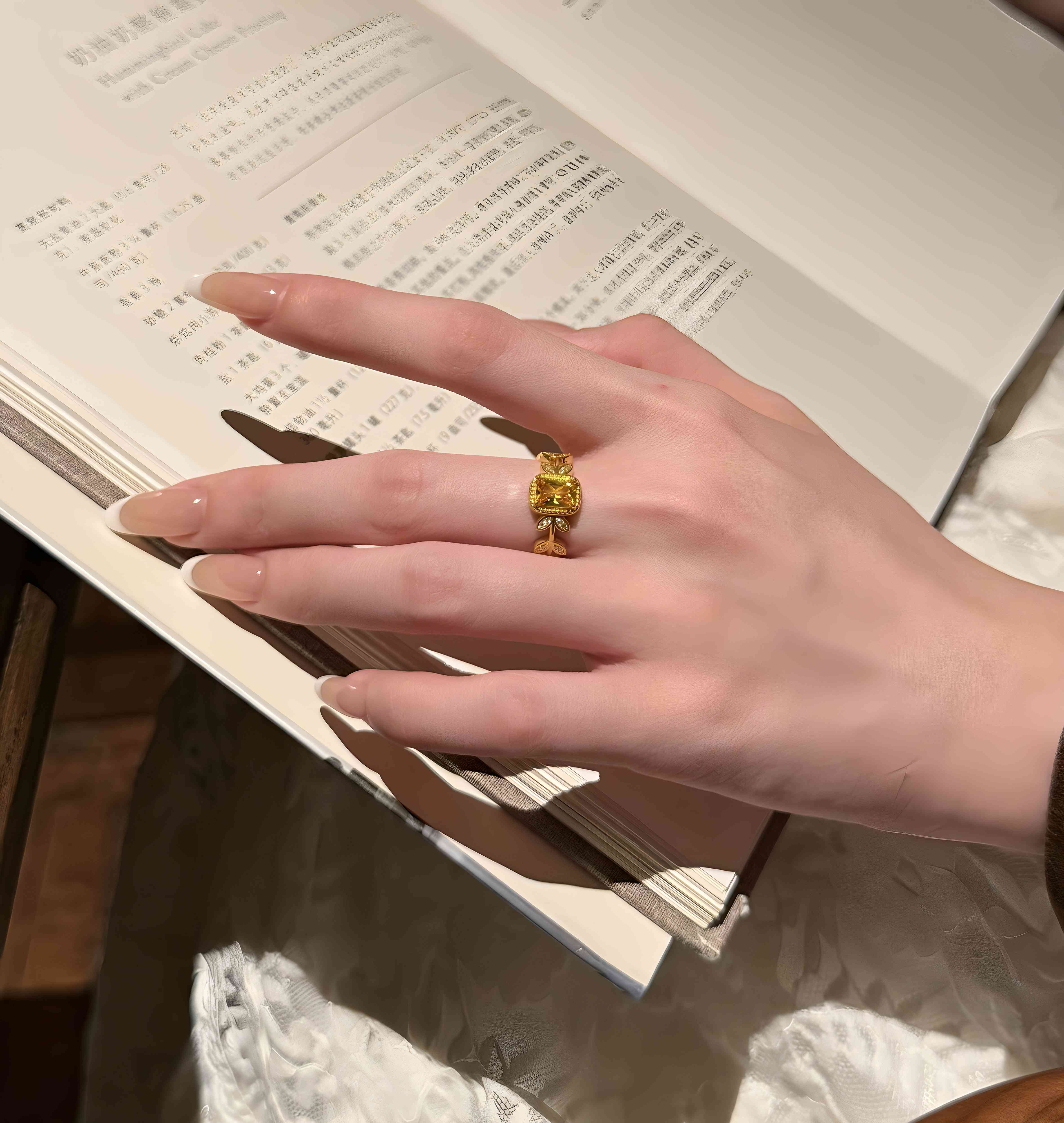 Iosn water shell gold 5D inlaid feather sugar cube ring 999 pure gold fashionable versatile high-end gift for your girlfriend Feather sugar cube ring (9 to 20 circles)