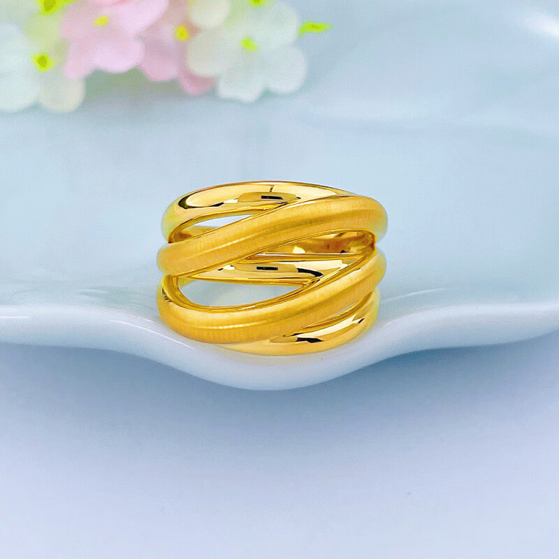 Iosn5D hard gold gold five-ring ring for women 999 solid gold interlocking brushed shiny ring index finger ring for girlfriend 16# about 2.60g