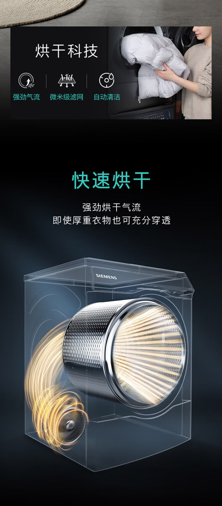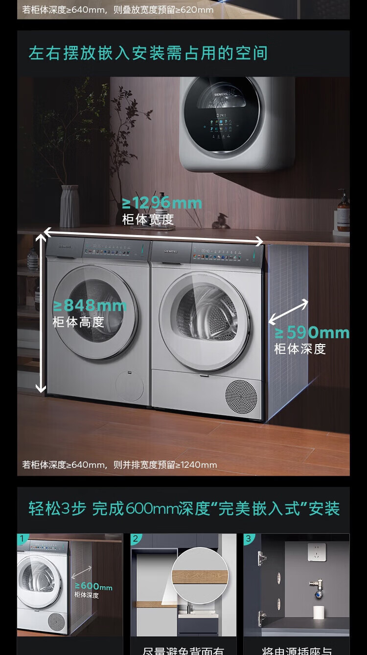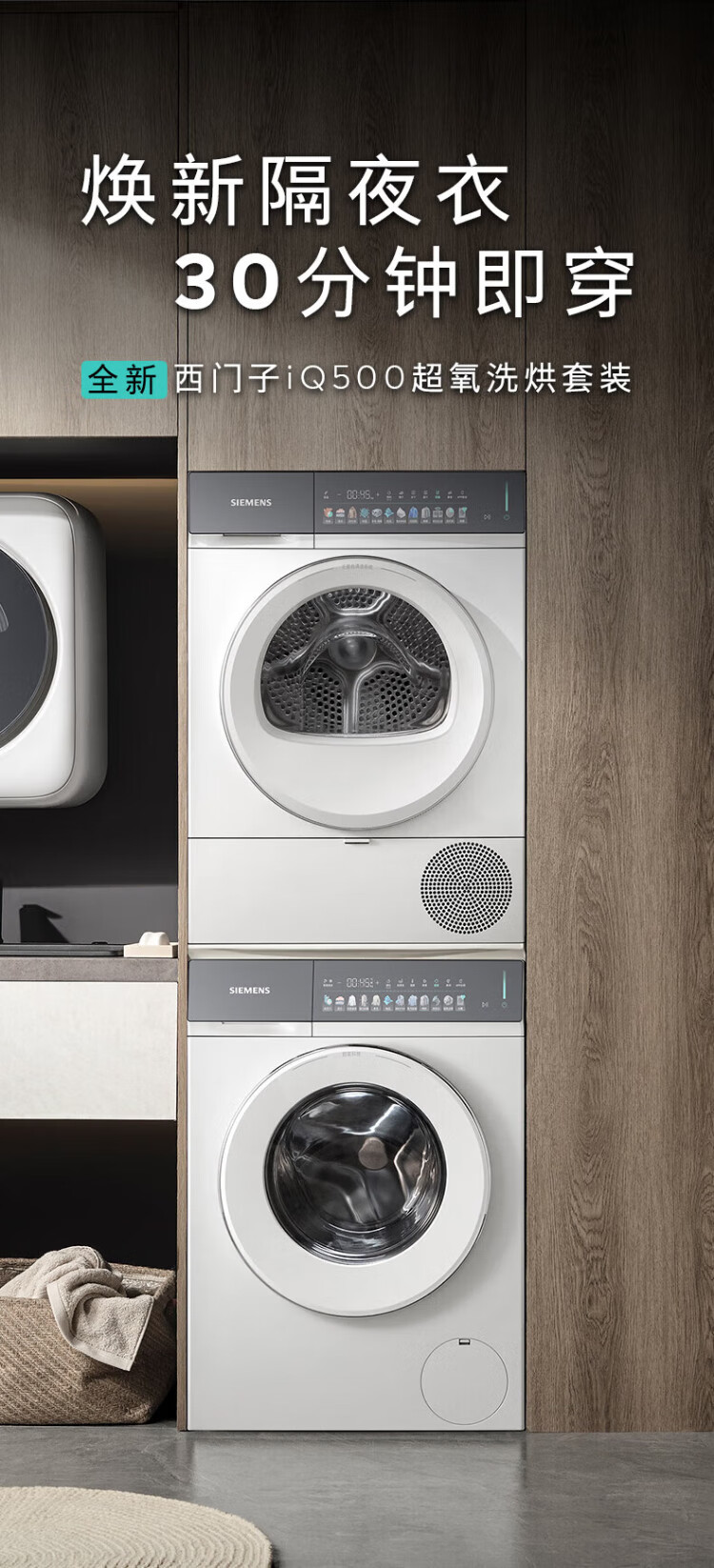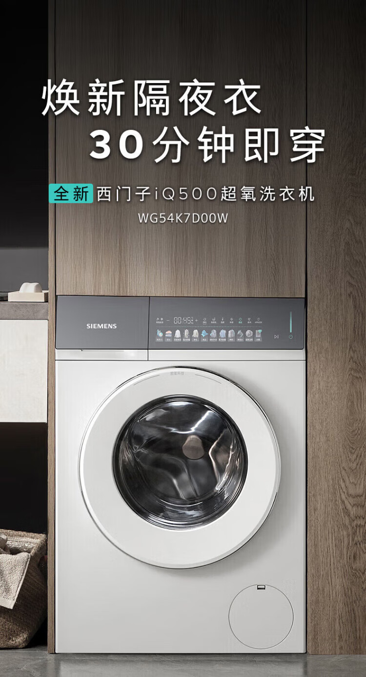 SIEMENS iQ500 Xiaoxing drum washing machine set/all-in-one washer and dryer 10kg large capacity super oxygen air wash 1400 rpm fully automatic 1.1 cleaning ratio steam wrinkle removal integrated wash and dryer white - hot new product丨WG54K7D00W