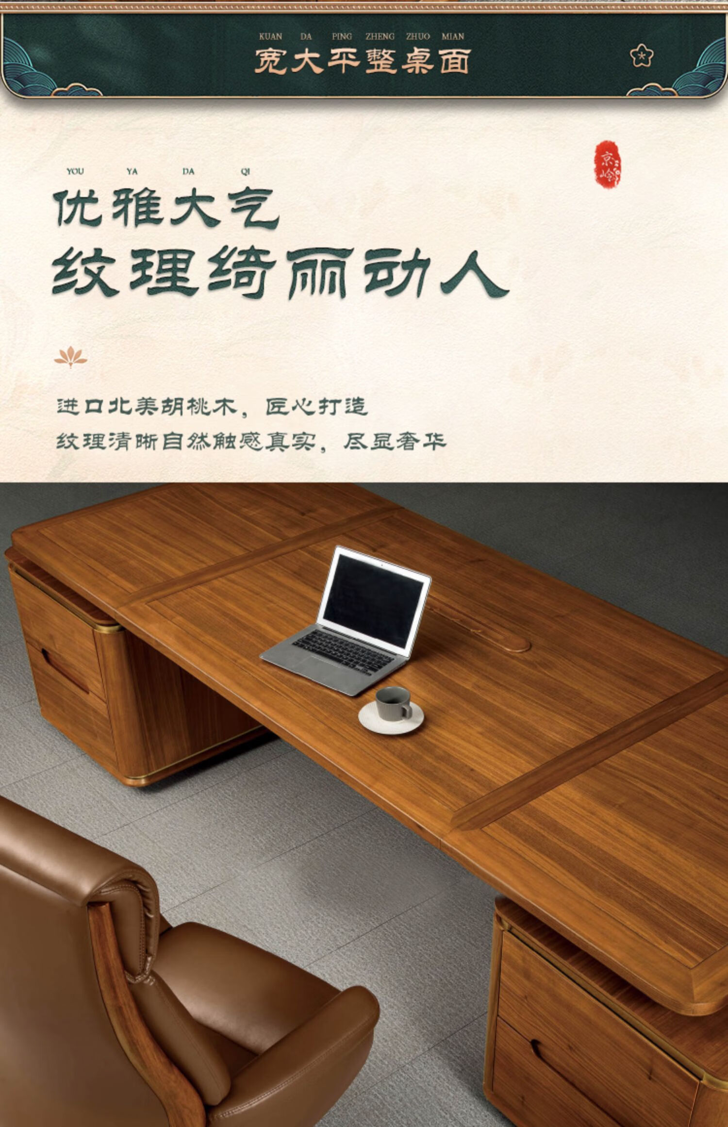 Solid wood new Chinese style boss table walnut president table solid wood executive desk manager table office desk and chair combination 2.4m boss table (solid wood frame) ebony wood