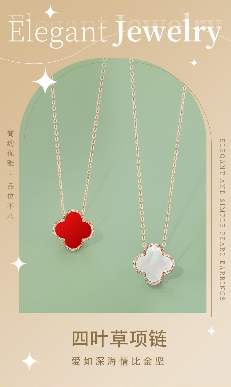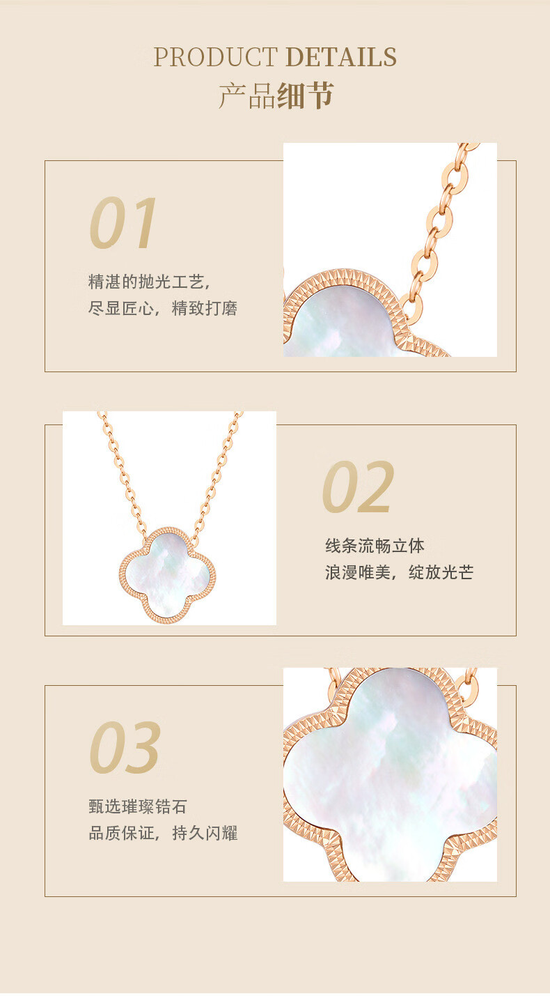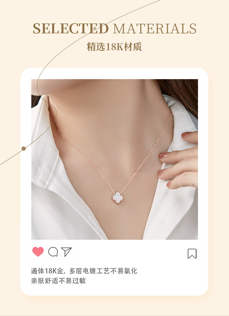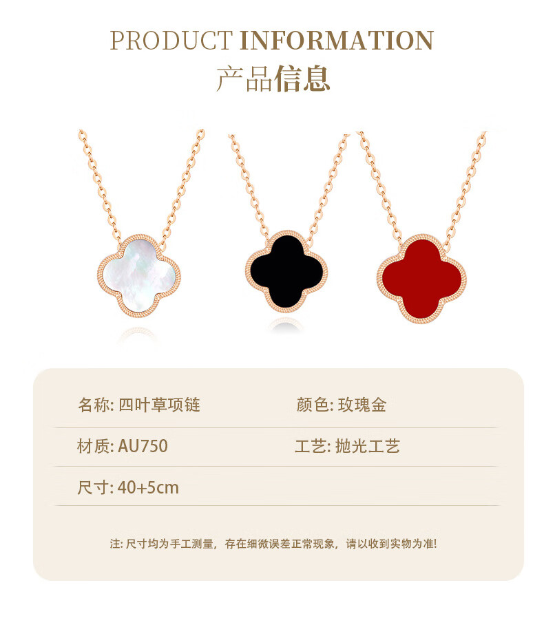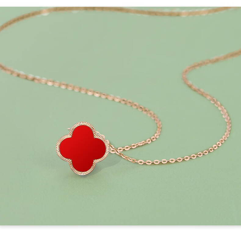 OeinOEIN 18K color gold four-leaf clover necklace women's rose gold pendant light luxury niche Christmas gift for girlfriend red agate 18K rose gold necklace + 18K gold