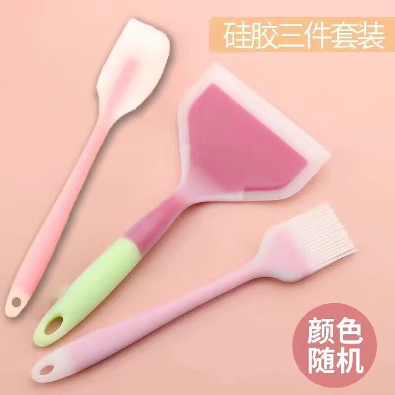 Silicone spatula, high temperature resistant spatula, non-stick spatula for cooking, pancakes, fish, household spatula, random color, special three-piece set, spatula and brush