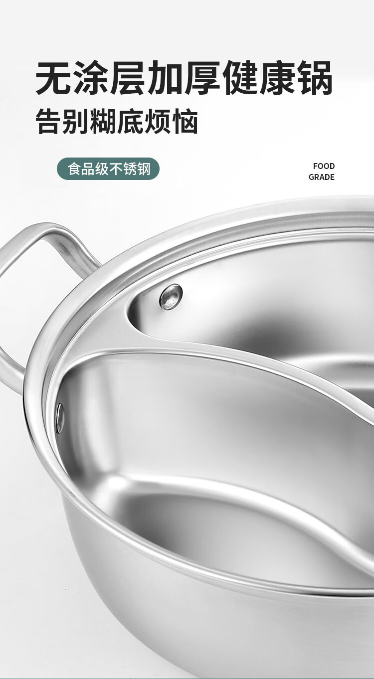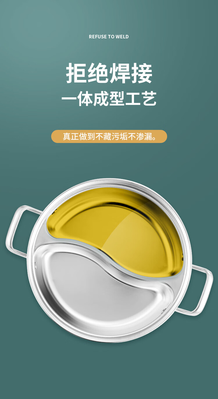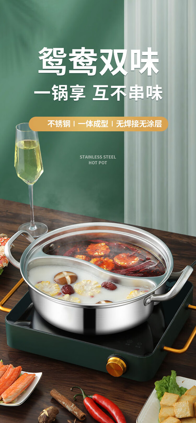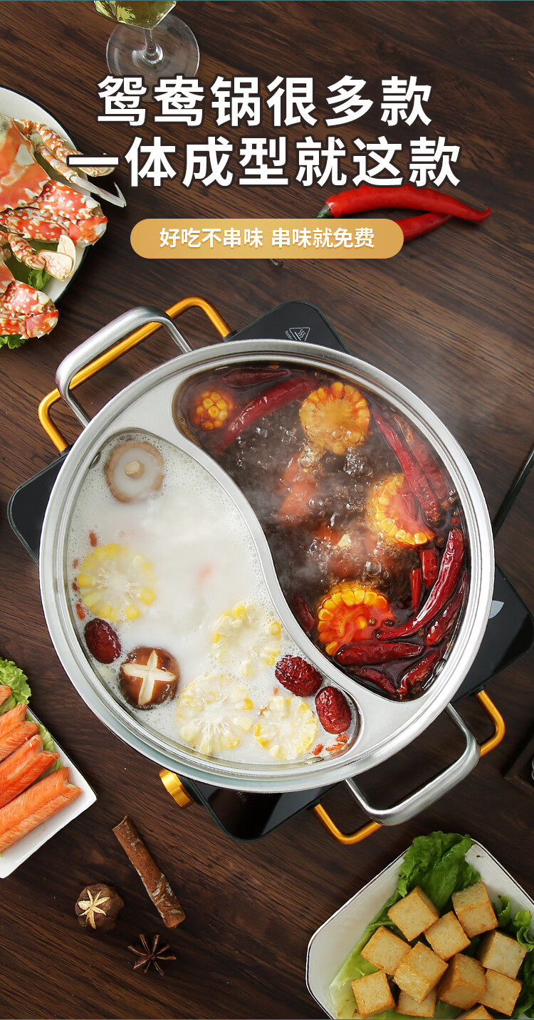 Thickened stainless steel Yuanyang pot one-piece high temperature resistant household large-capacity shabu-shabu induction cooker with lid universal one-piece Yuanyang pot 32cm with lid