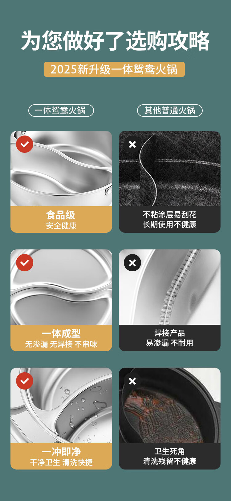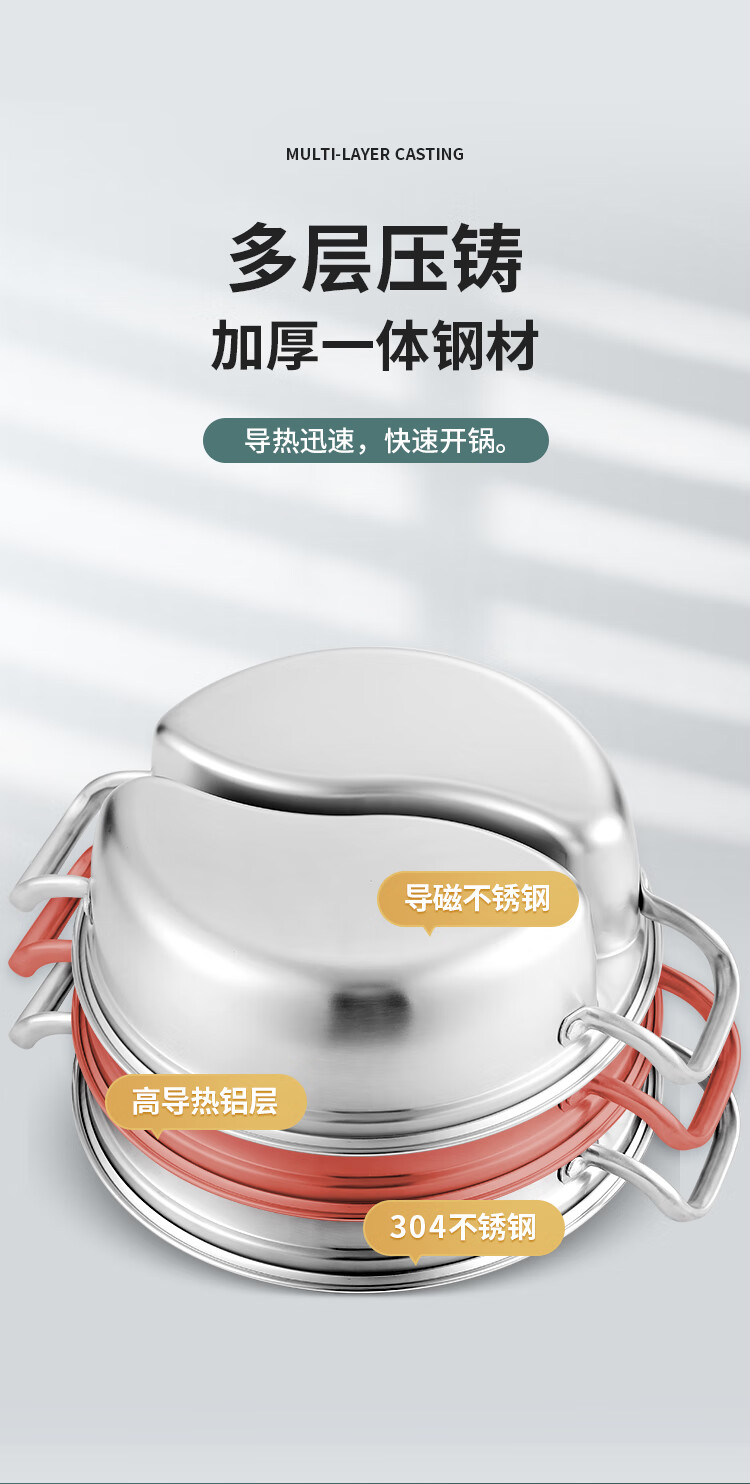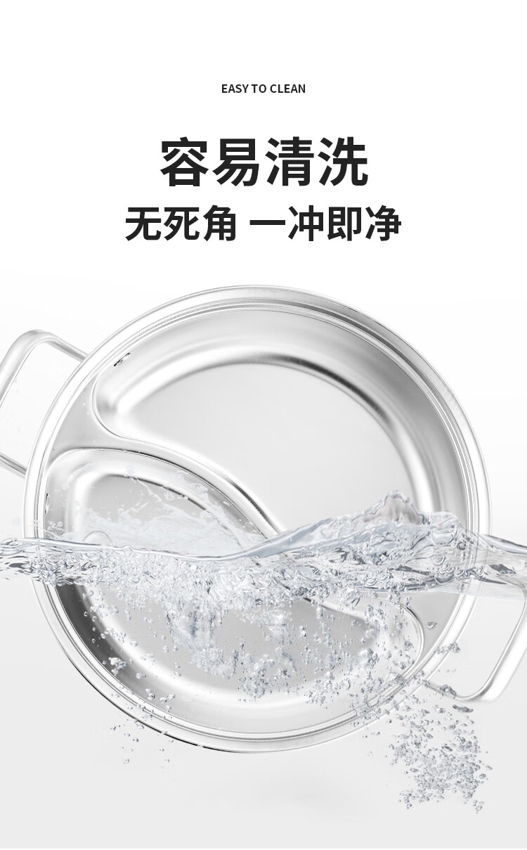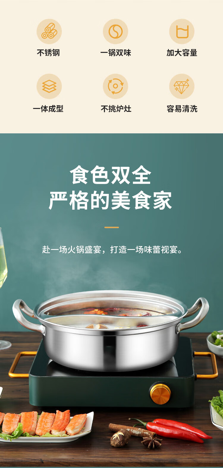 Thickened stainless steel Yuanyang pot one-piece high temperature resistant household large-capacity shabu-shabu induction cooker with lid universal one-piece Yuanyang pot 32cm with lid