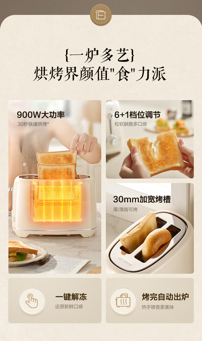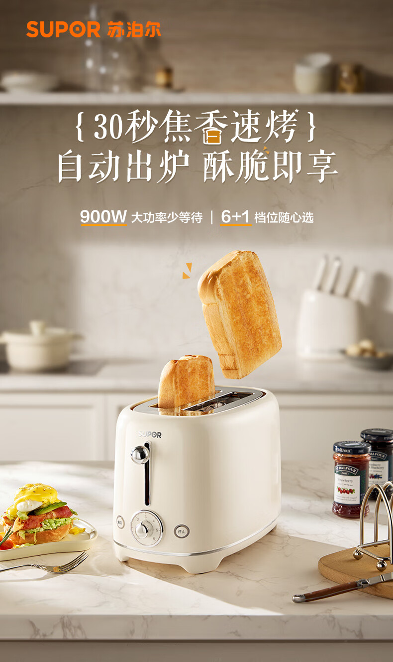 Fat Donglai's same supermarket bread machine toaster household fully automatic toast sandwich toaster breakfast machine off-white