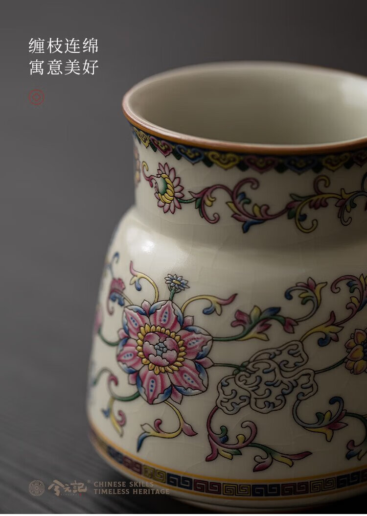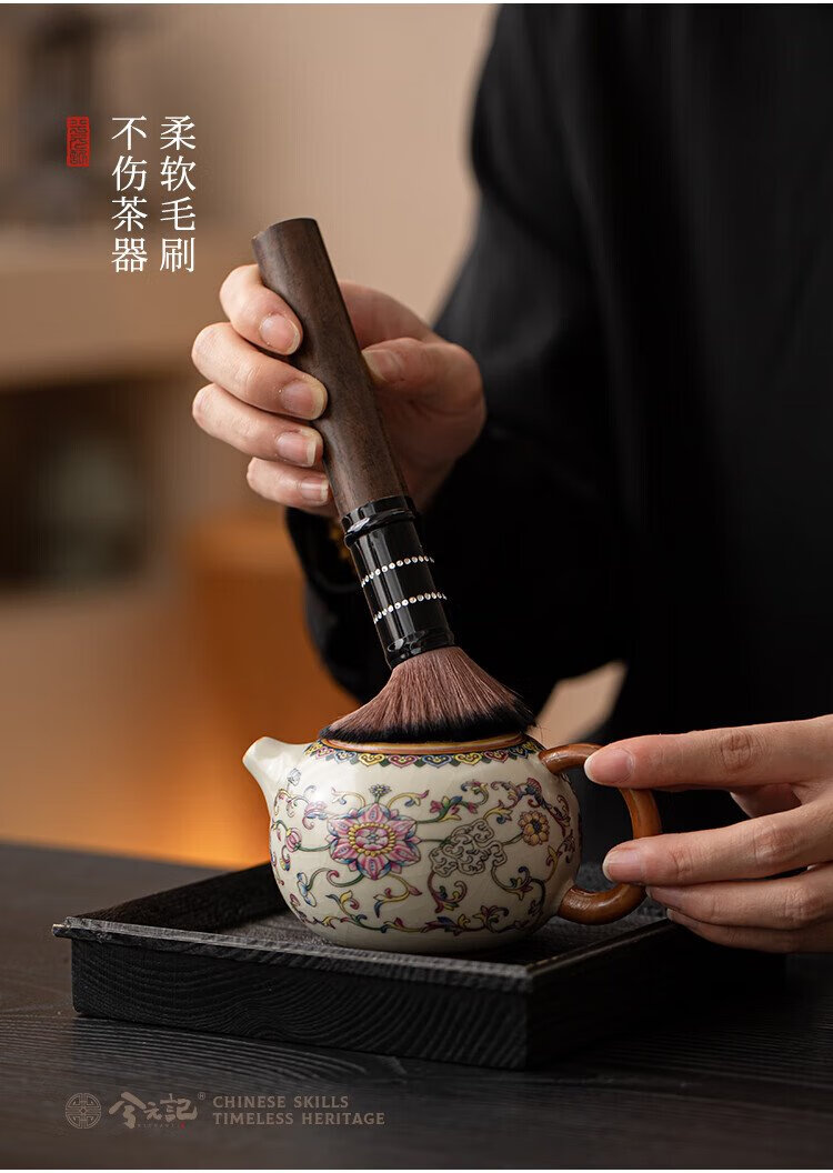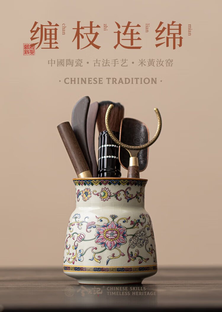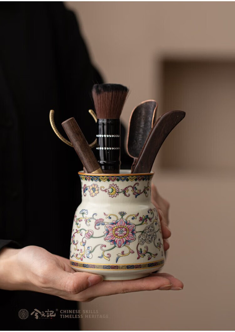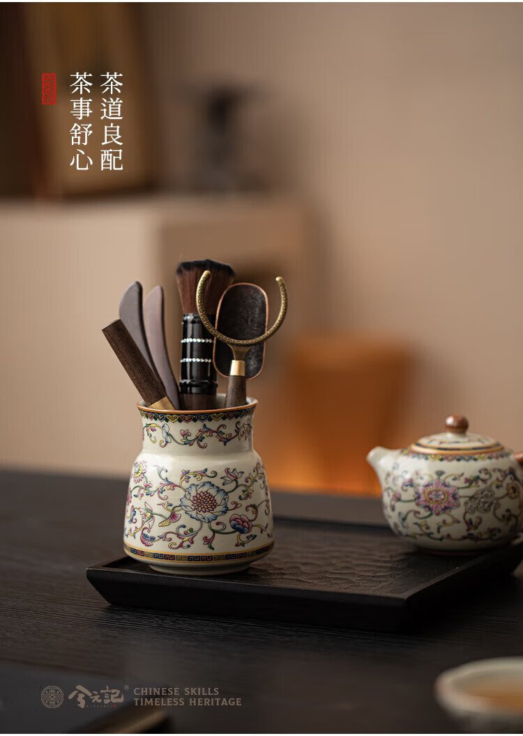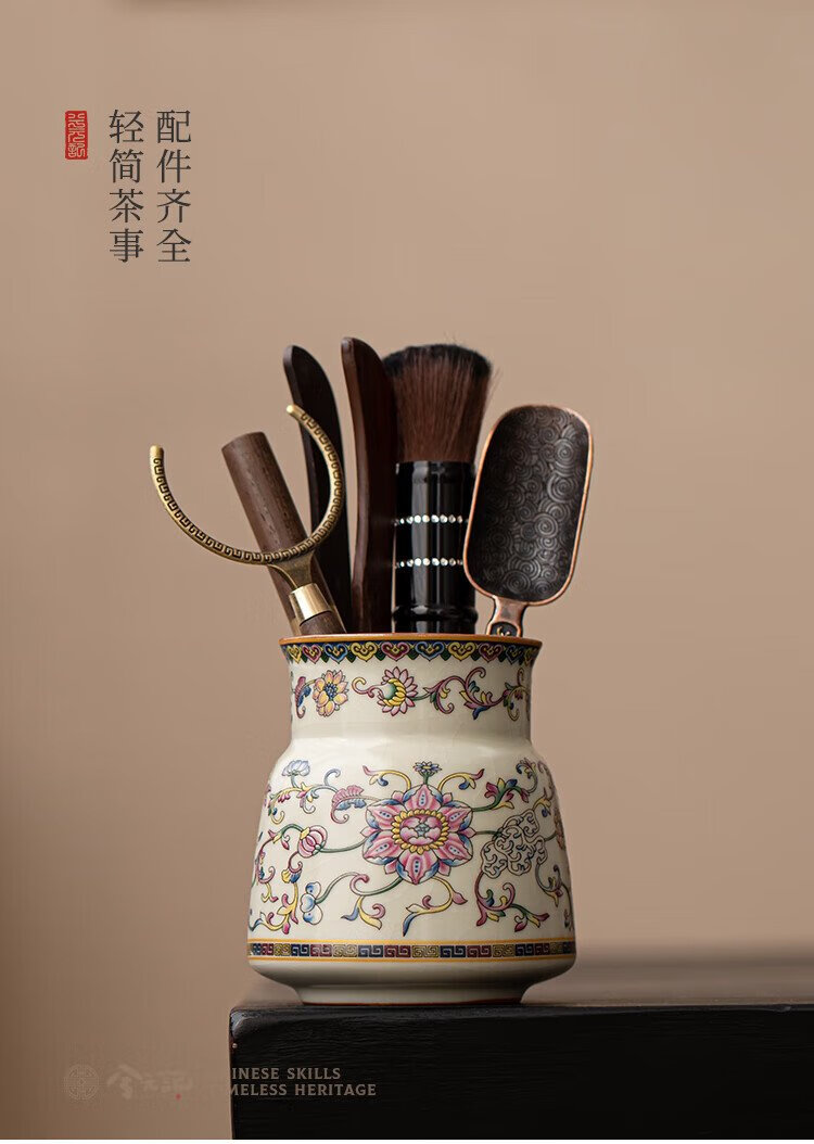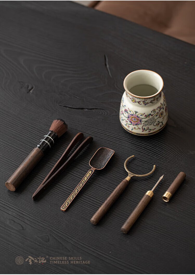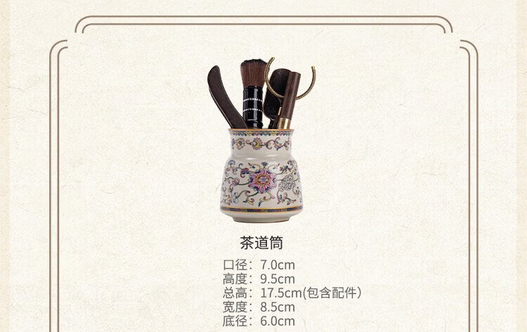 Xiyuanji lotus root rice and yellow Ru kiln tea ceremony accessories Liujunzi Kungfu tea set supplies tea making tools tea knife clip tea brush spoon lotus root rice yellow Ru kiln tea ceremony barrel + ebony accessories