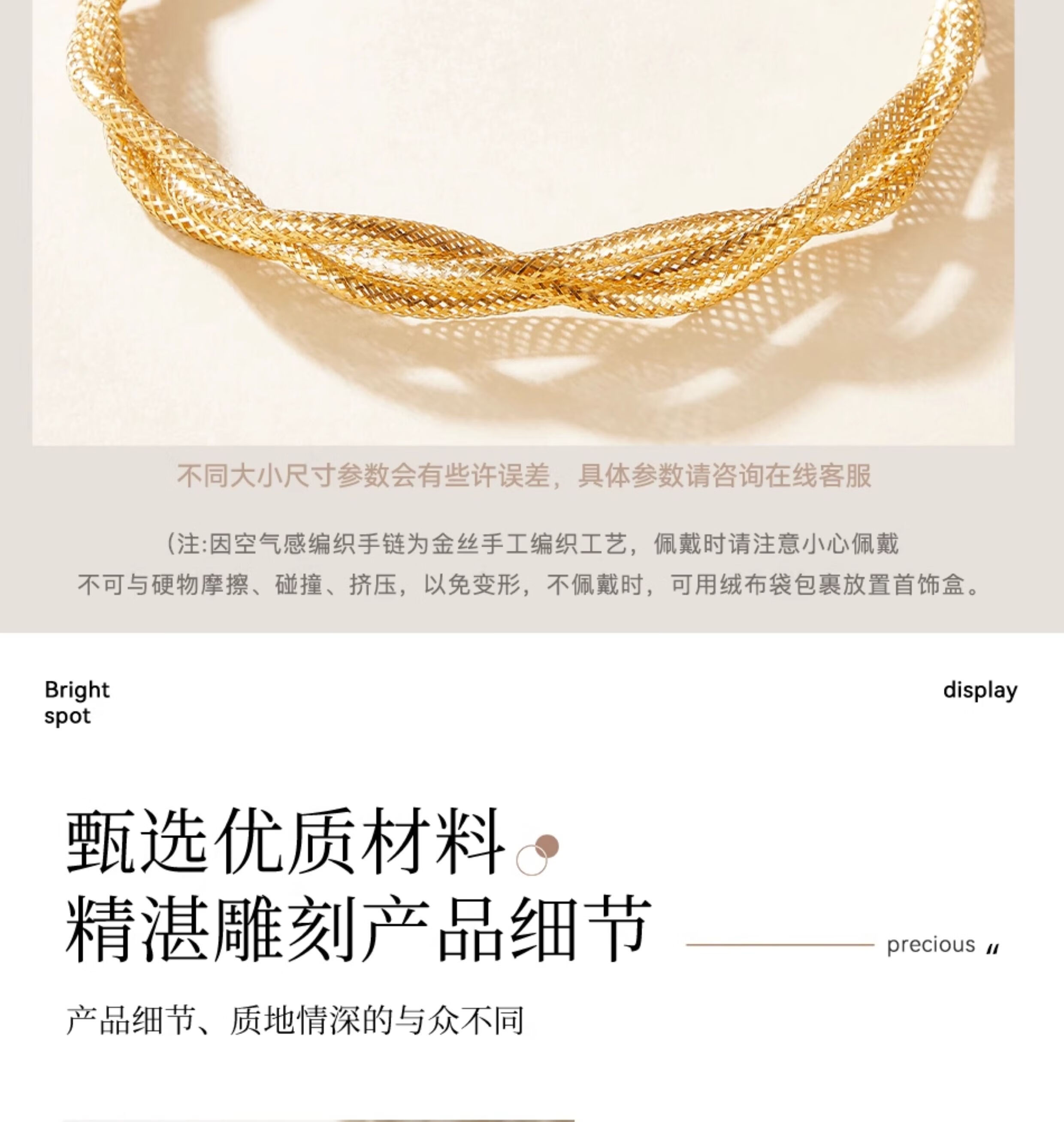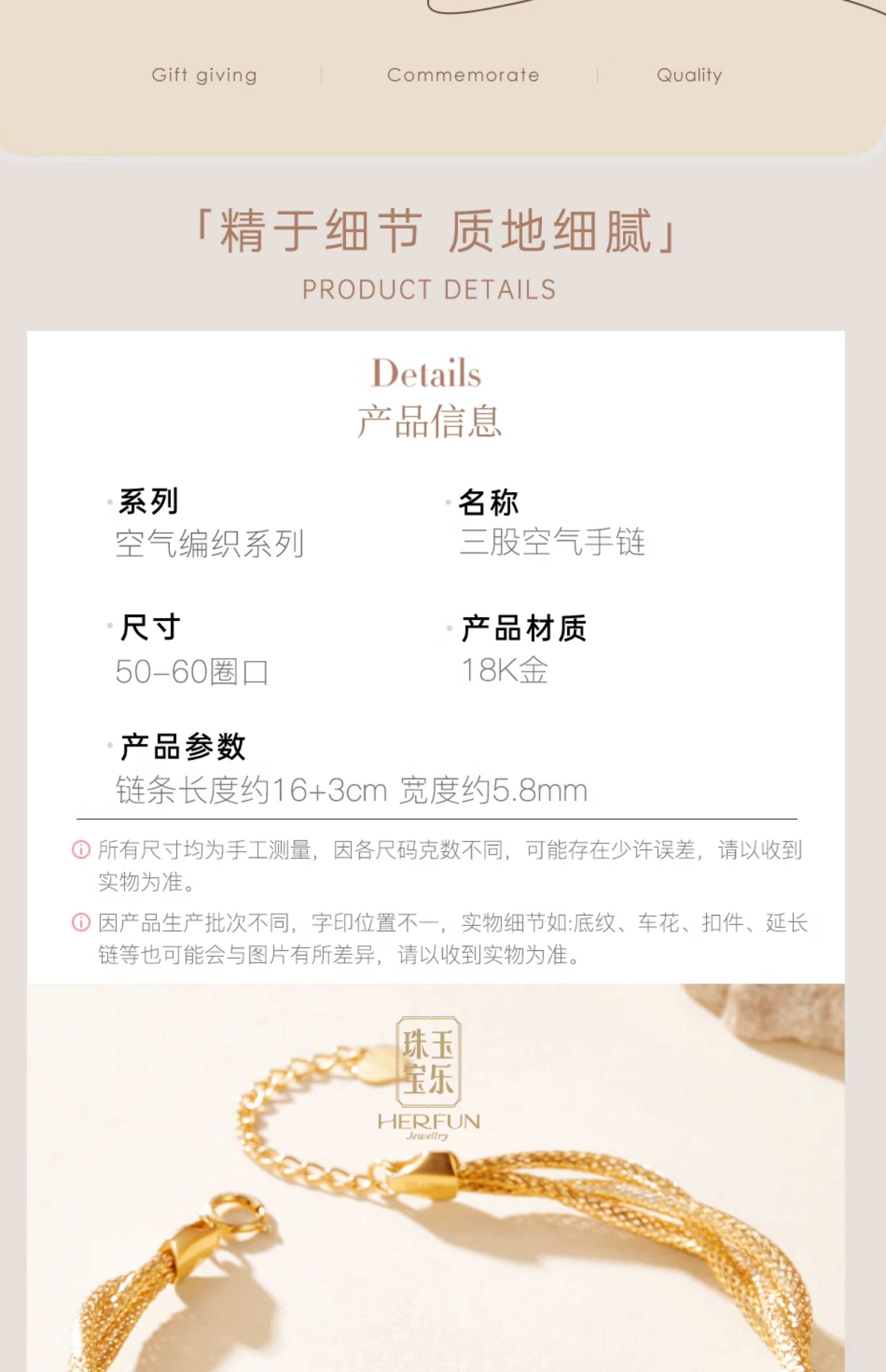 OeinOEIN2025 new 18K gold bracelet Italian gold three-strand air bracelet couple bracelet gold six-strand
