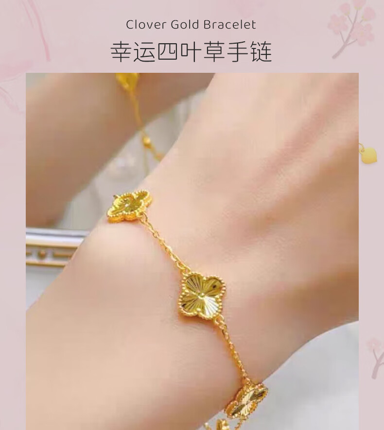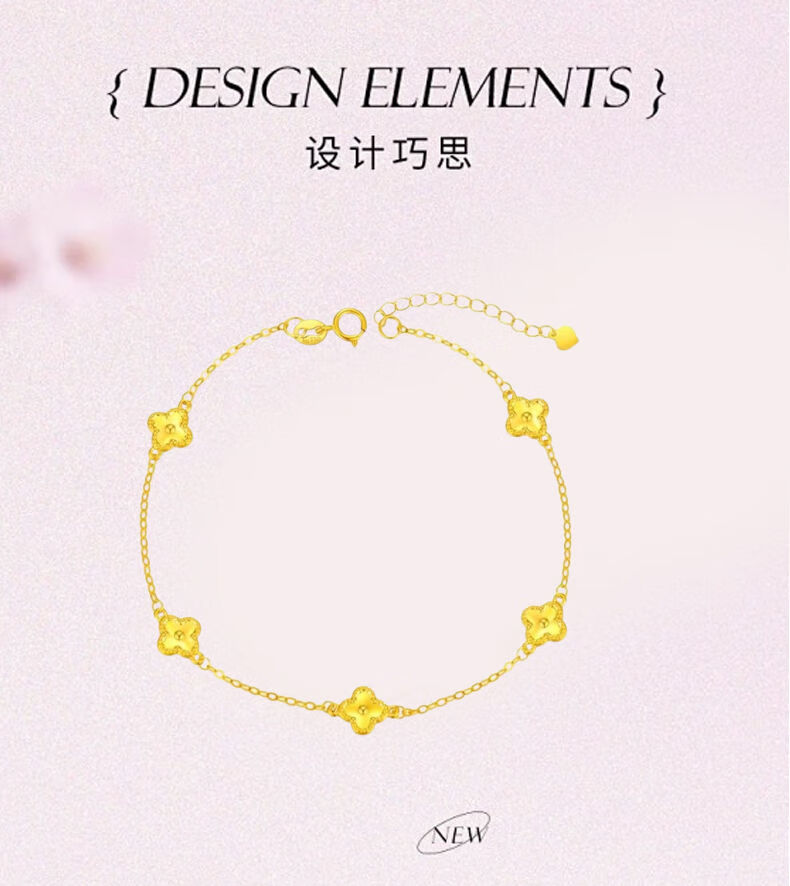 OeinOEIN2025 new lucky four-leaf clover exquisite sparkling laser niche 18K gold adjustable women's bracelet gold yellow