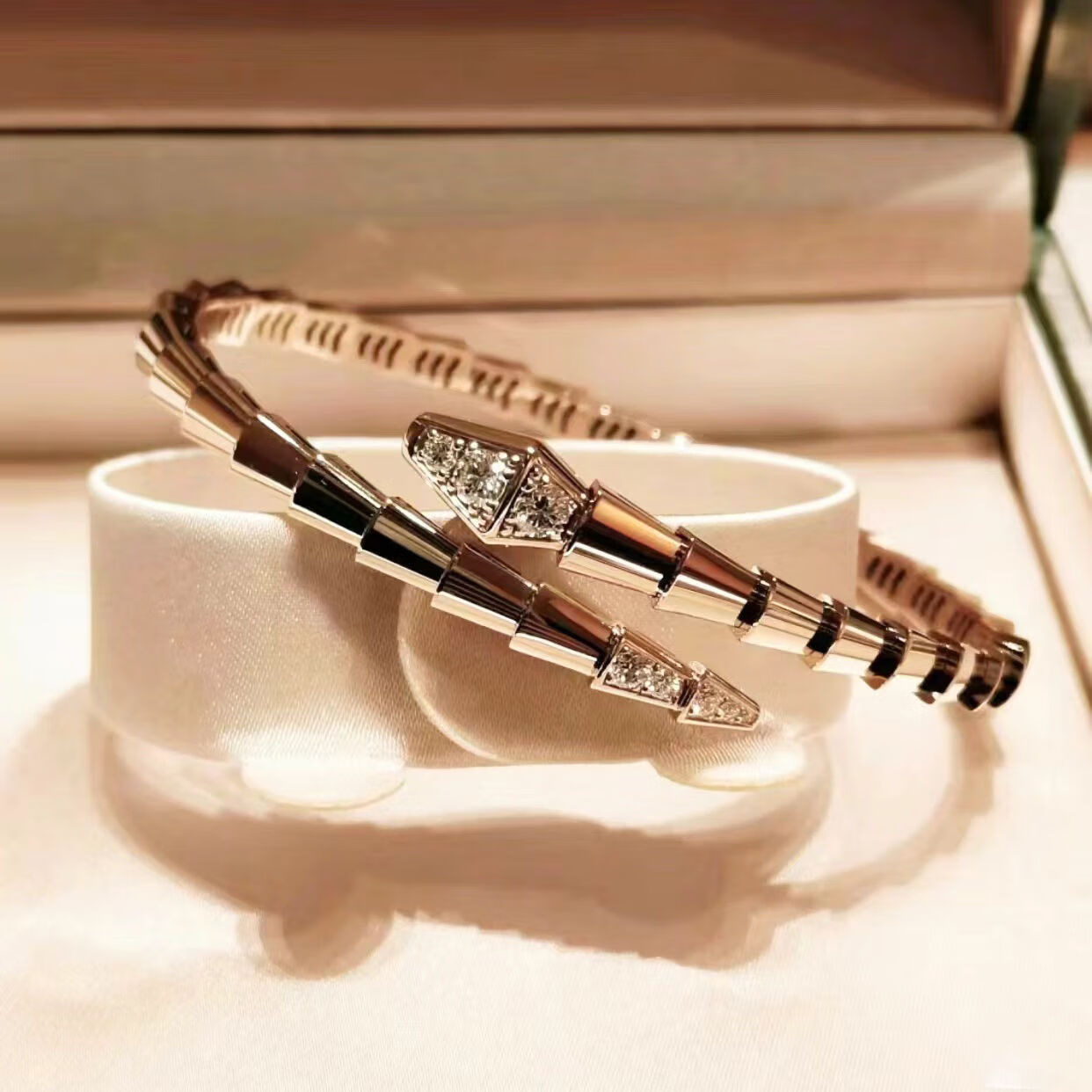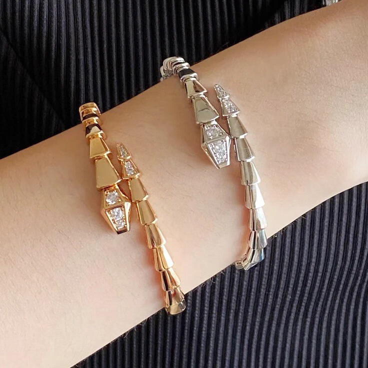 Oein18K rose gold snake bone spirit snake bracelet AU750 counter same style diamond snake head open snake shaped bracelet gift head and tail diamond gold