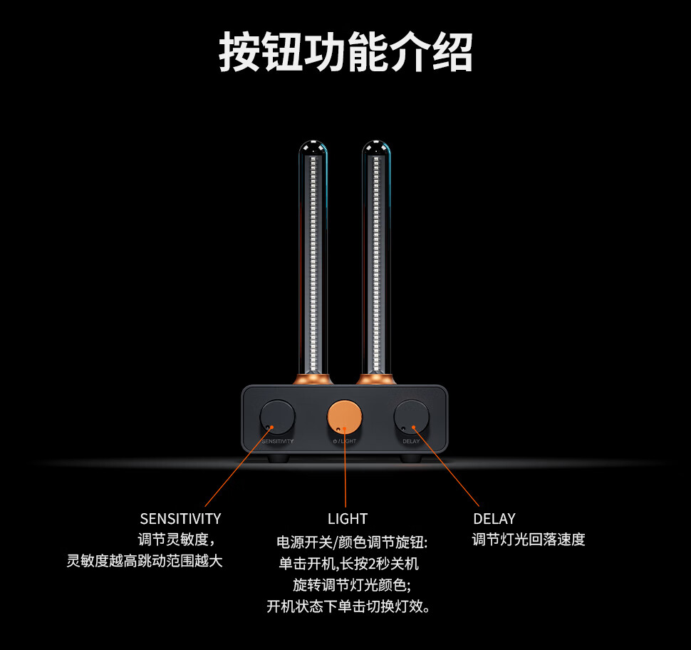 FOSI AUDIO pickup lamp RGB atmosphere lamp e-sports rhythm lamp computer desktop light strip desktop ornaments creative lamp music sensor lamp classic black