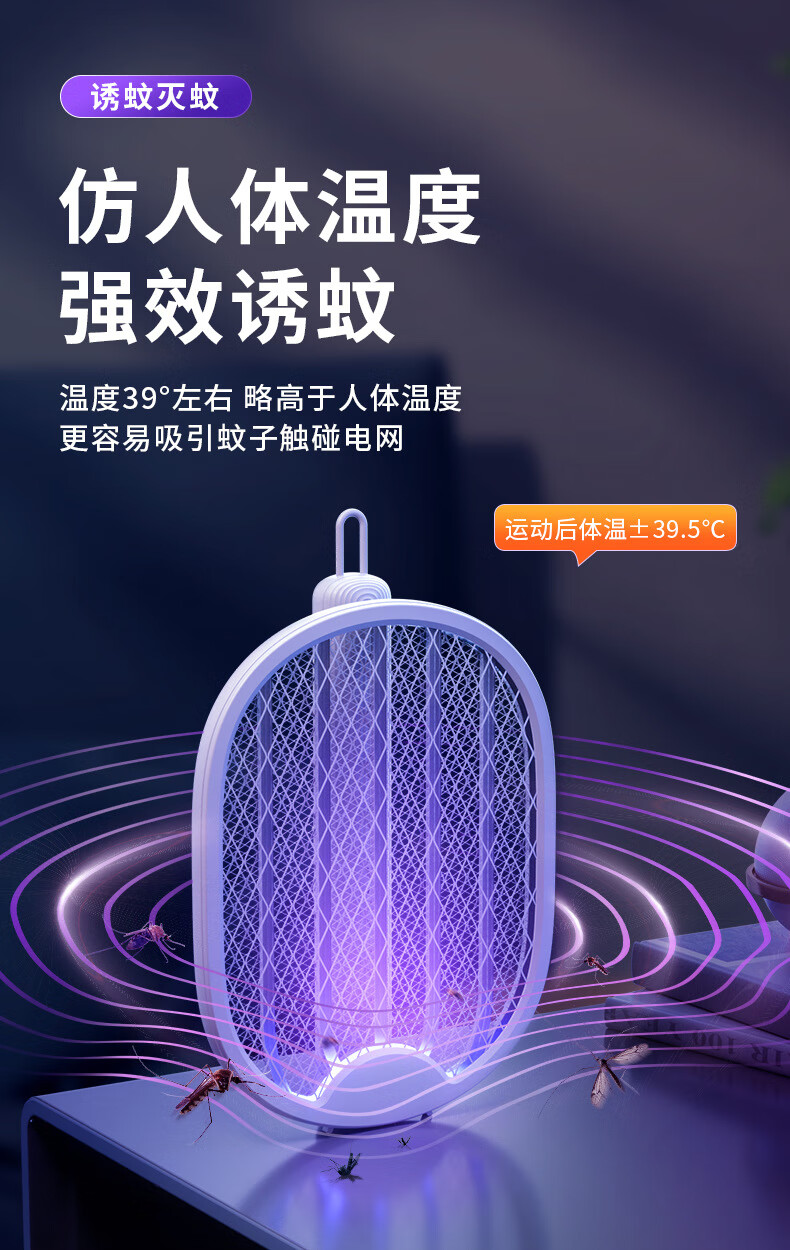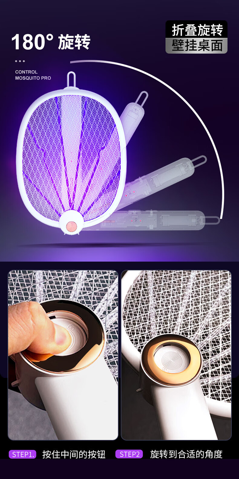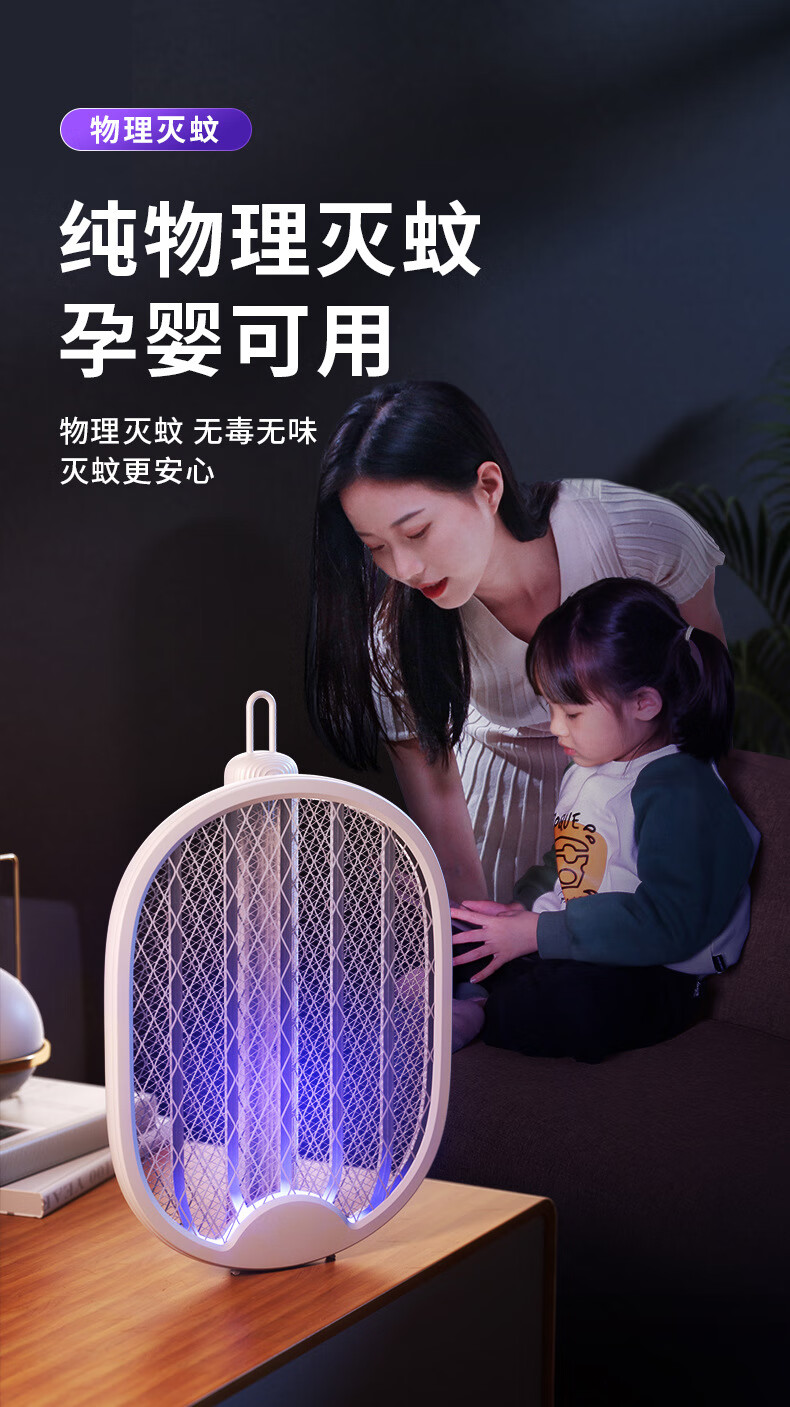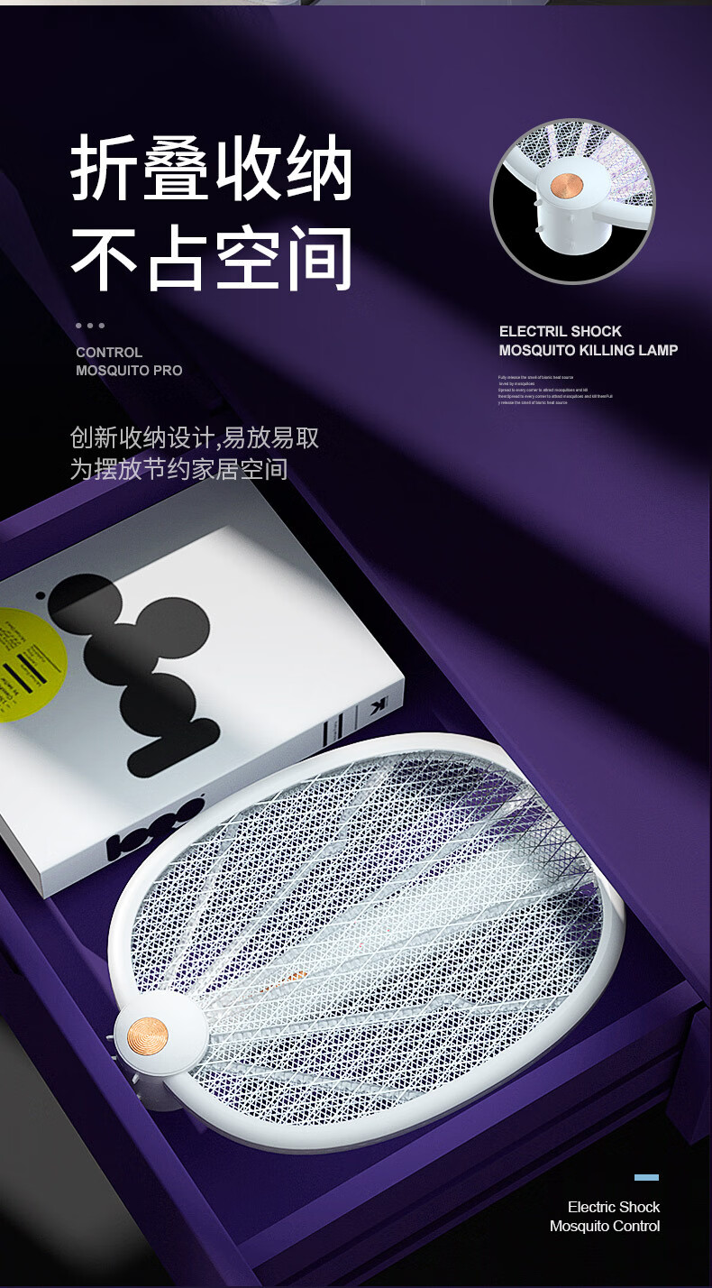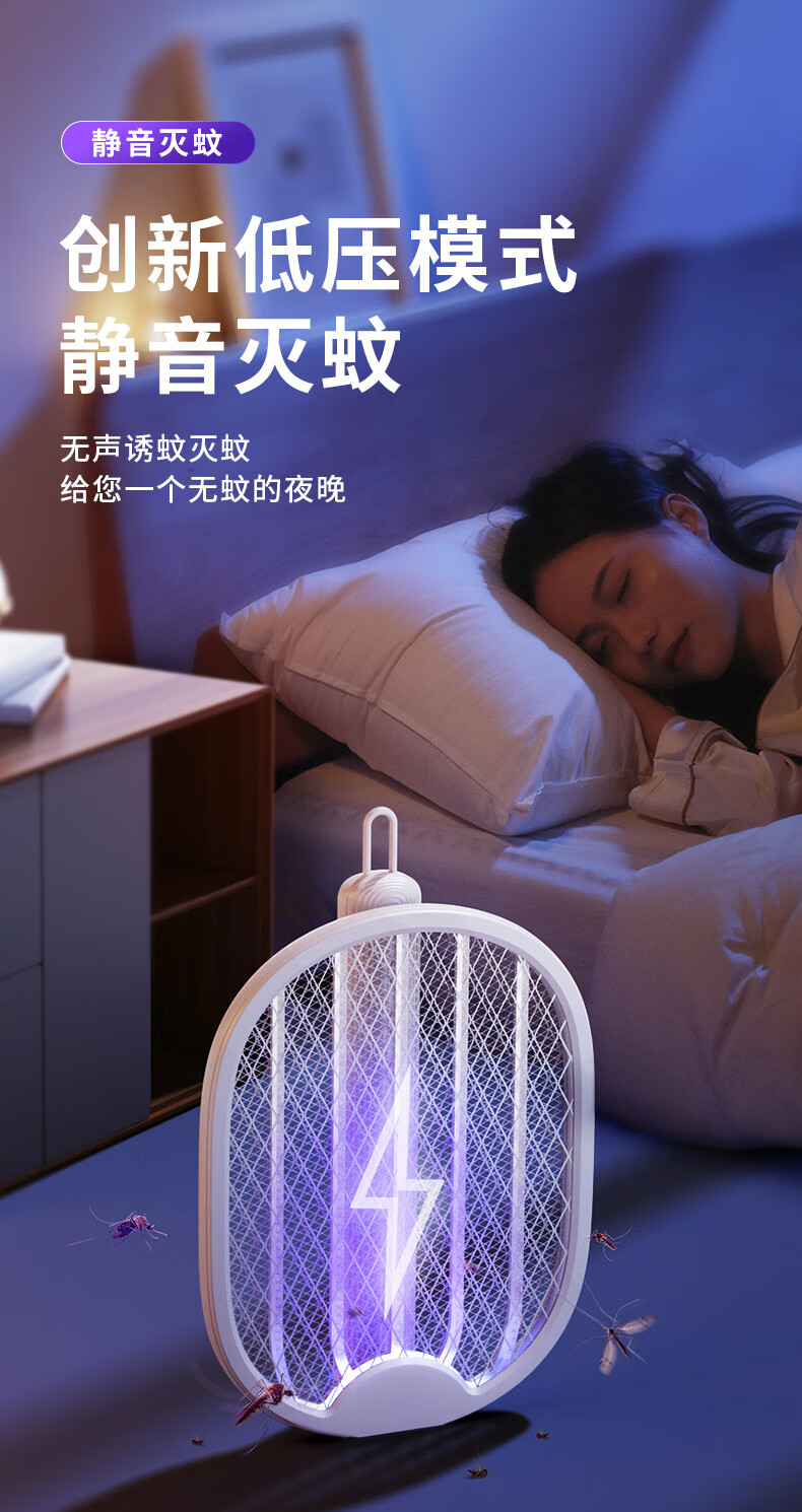Midea Rotating Folding Mosquito Killer Swatter Home Three-in-One Rechargeable Handheld Mosquito Killer Lamp Purple Light Mosquito Attraction Lightweight Electric Mosquito Swatter Electric Mosquito Swatter Rechargeable Household Two-in-One Automatic Mosquito Killer White Leaf-Vertical Mosquito Killer Swatter