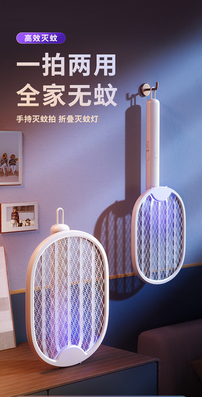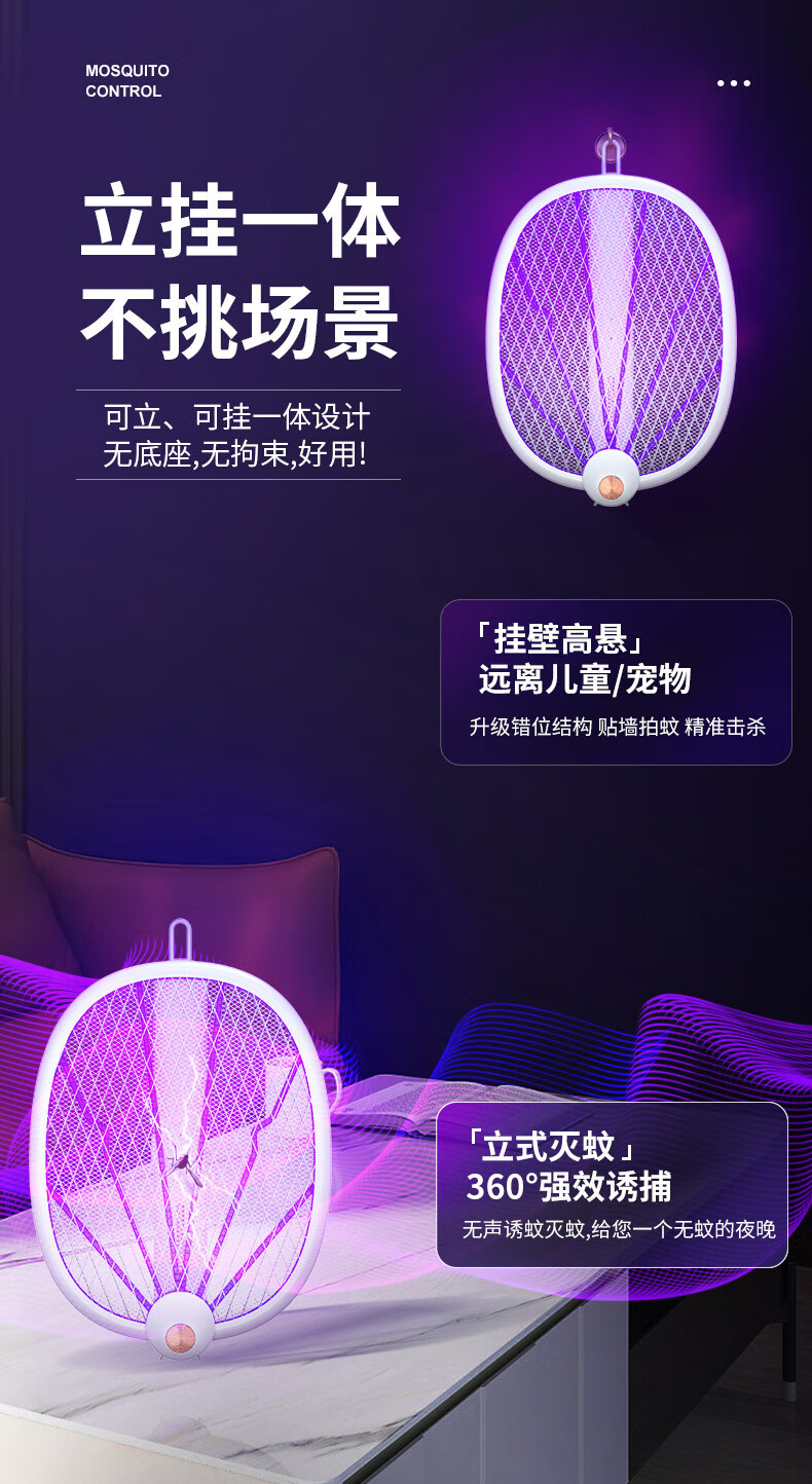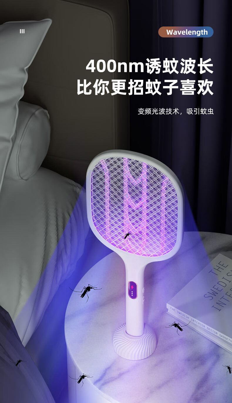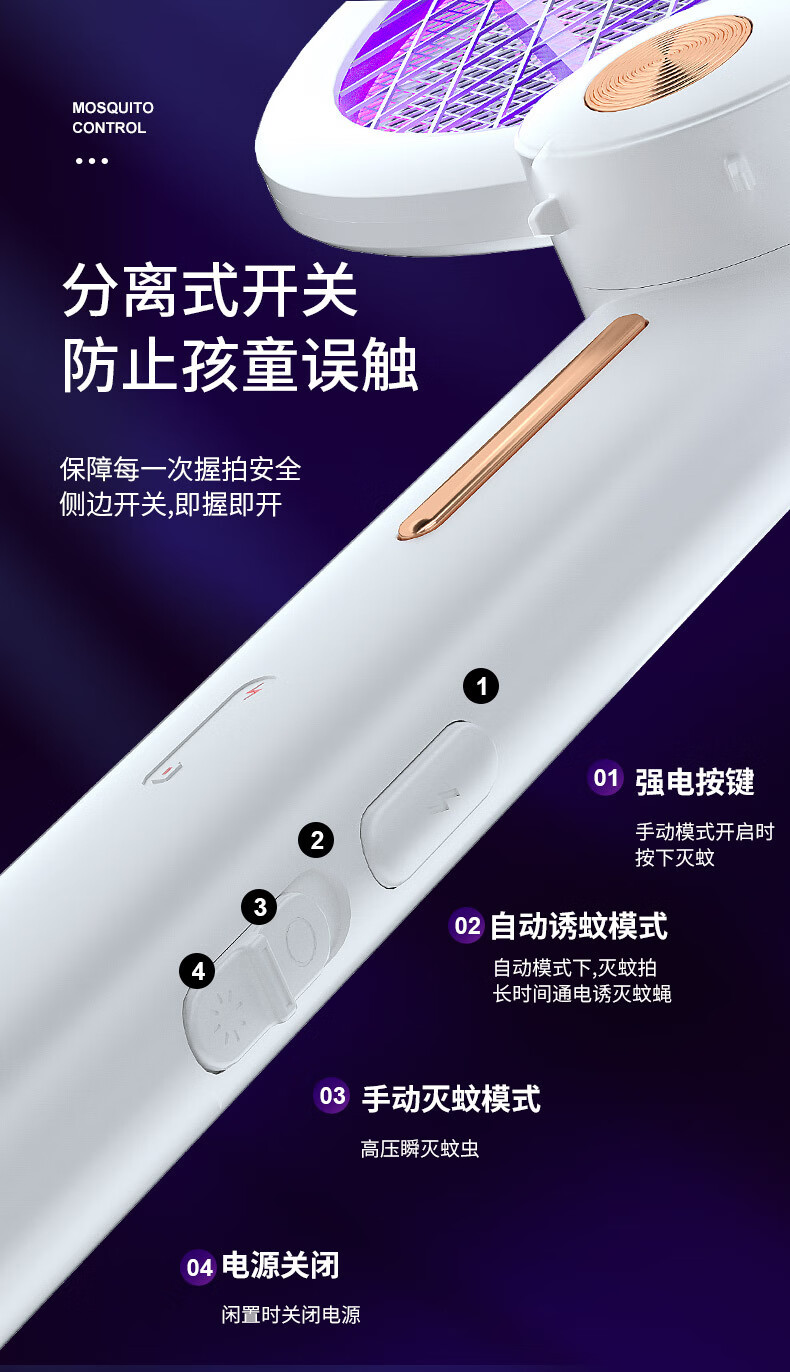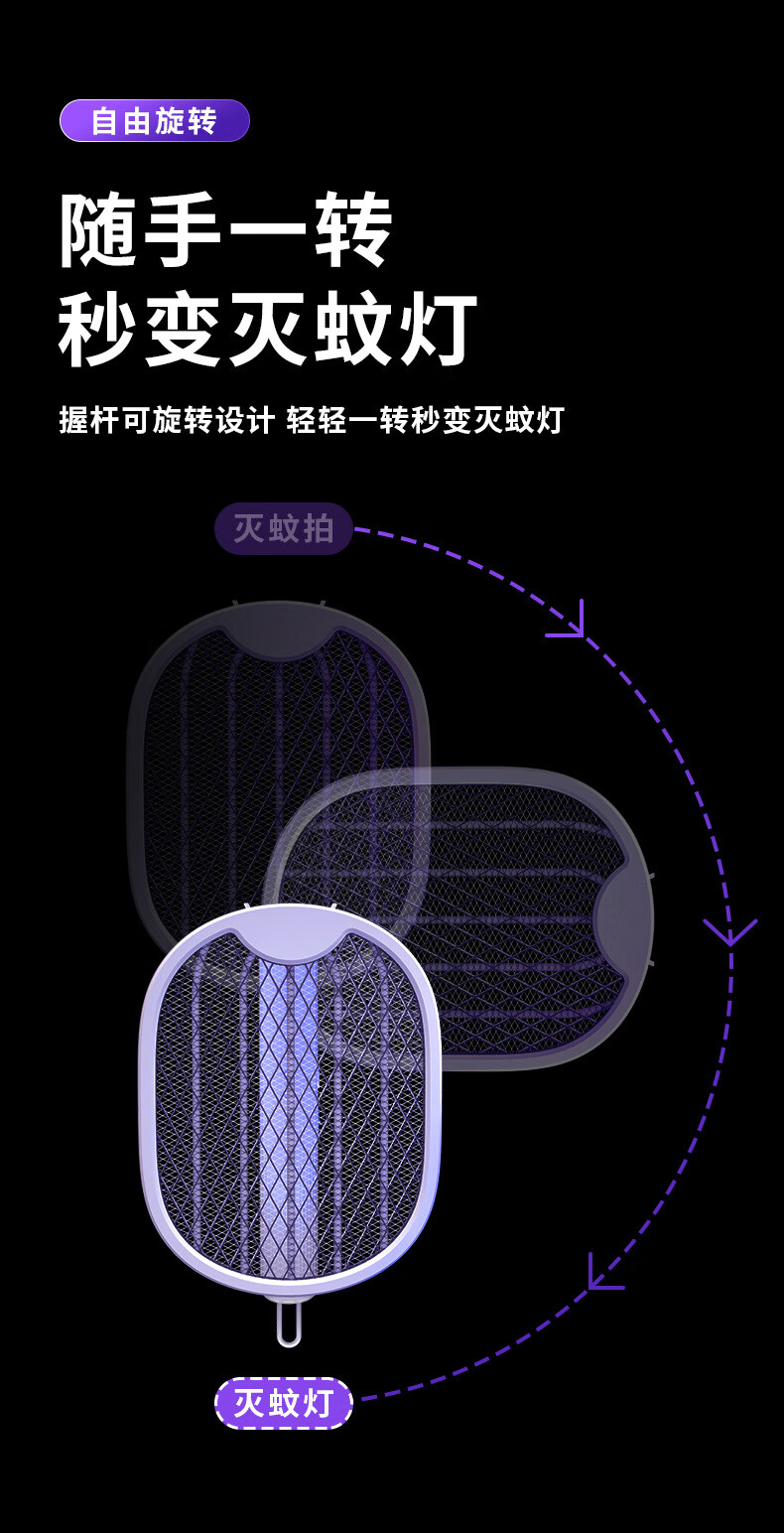 Midea Rotating Folding Mosquito Killer Swatter Home Three-in-One Rechargeable Handheld Mosquito Killer Lamp Purple Light Mosquito Attraction Lightweight Electric Mosquito Swatter Electric Mosquito Swatter Rechargeable Household Two-in-One Automatic Mosquito Killer White Leaf-Vertical Mosquito Killer Swatter