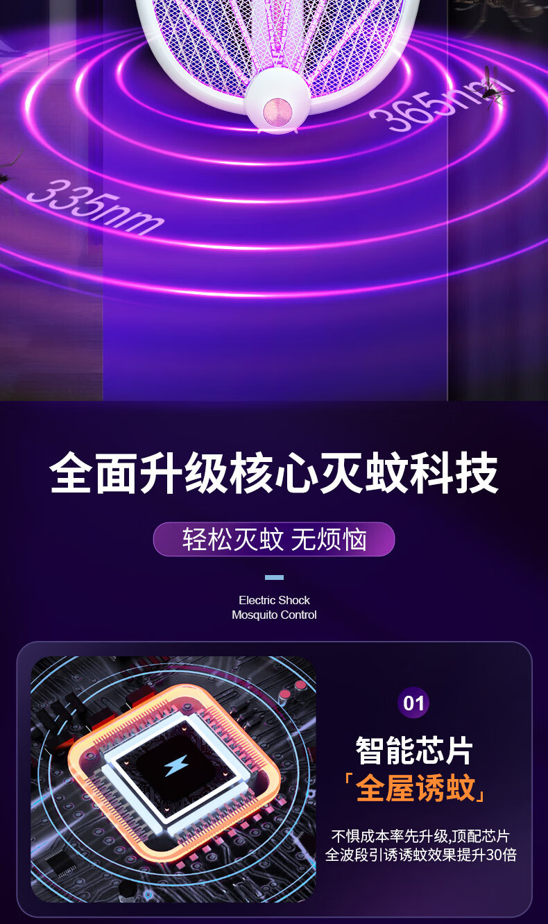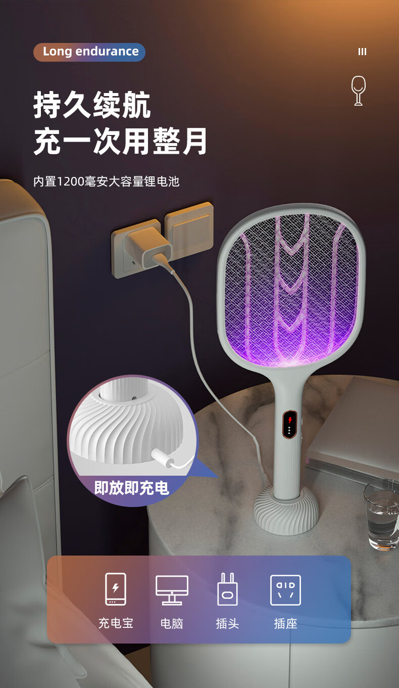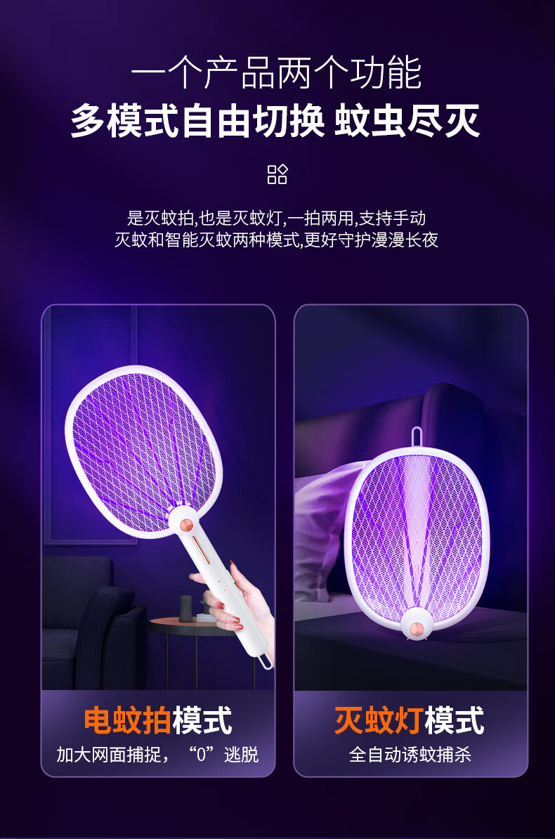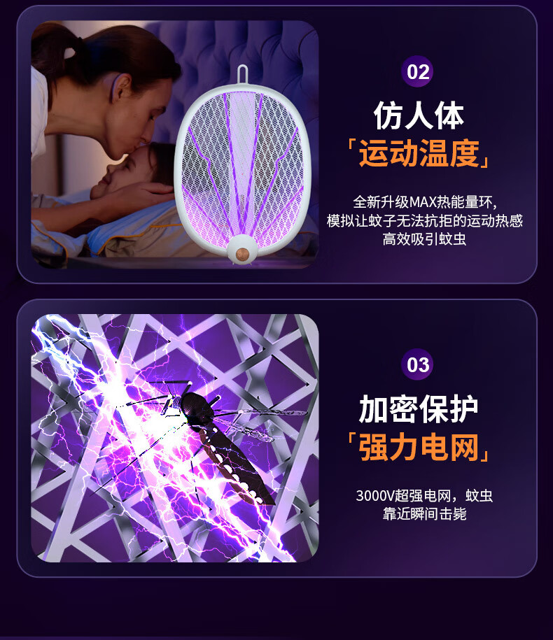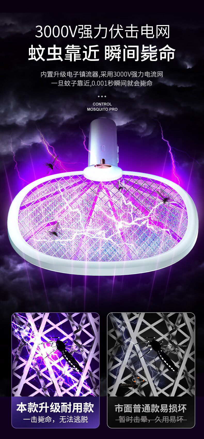Midea Rotating Folding Mosquito Killer Swatter Home Three-in-One Rechargeable Handheld Mosquito Killer Lamp Purple Light Mosquito Attraction Lightweight Electric Mosquito Swatter Electric Mosquito Swatter Rechargeable Household Two-in-One Automatic Mosquito Killer White Leaf-Vertical Mosquito Killer Swatter
