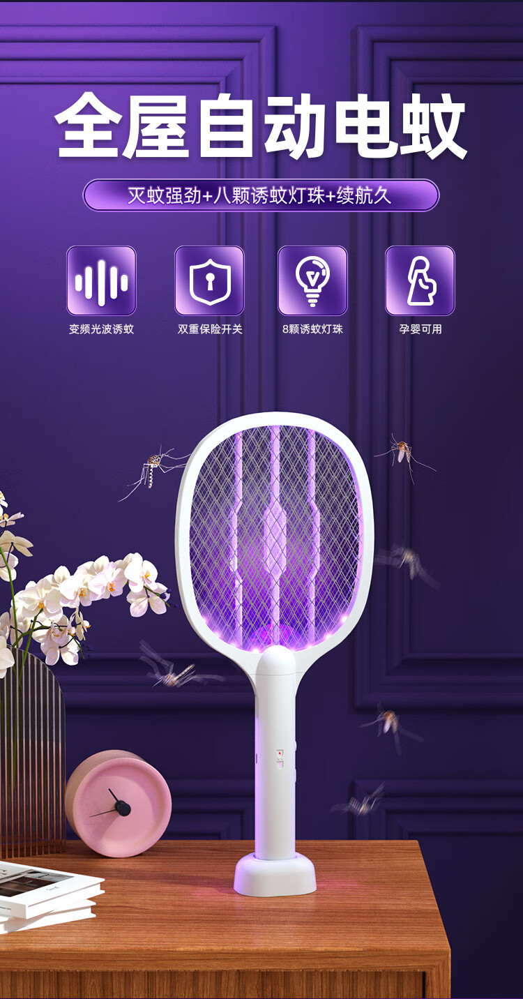 Midea's new electric mosquito swatter, two-in-one mosquito killer lamp, rechargeable automatic mosquito trap, powerful household mosquito repellent, electric mosquito swatter, rechargeable household two-in-one automatic mosquito trap, small white two lamps