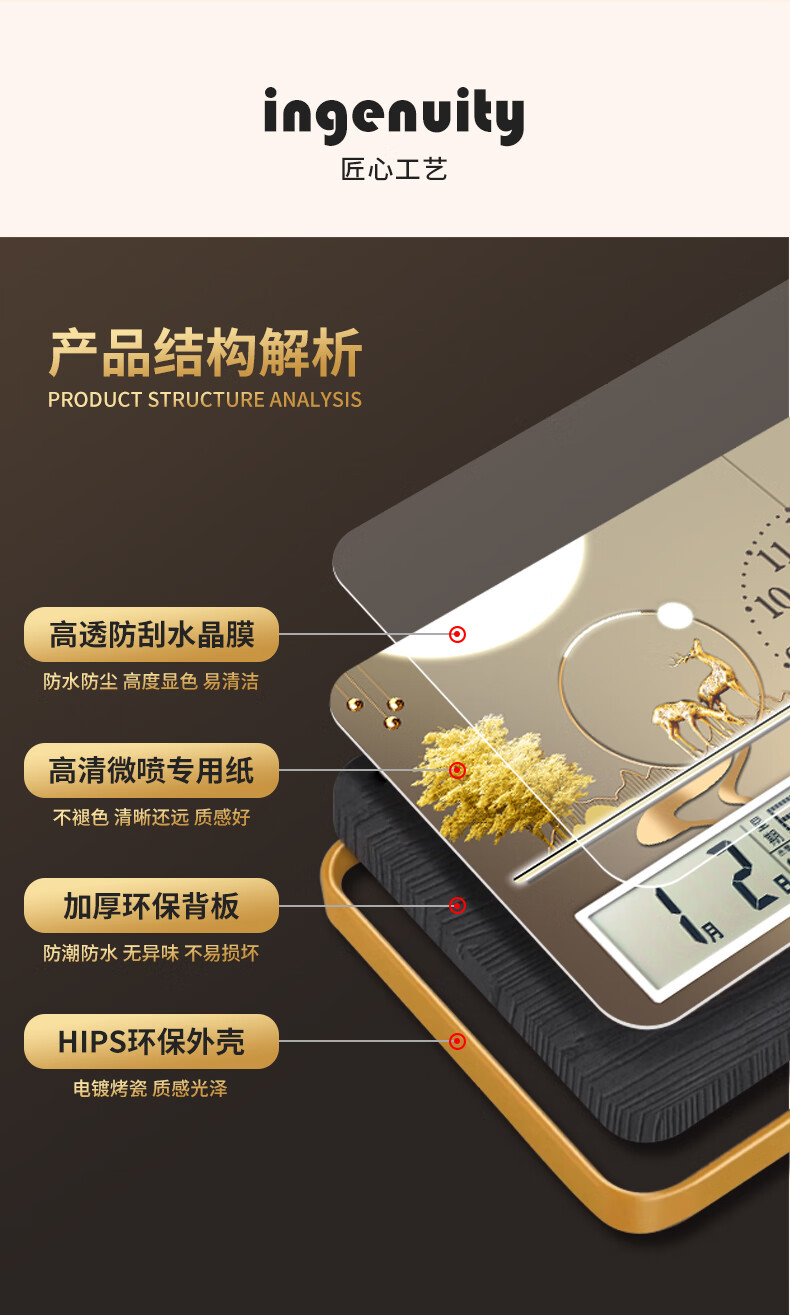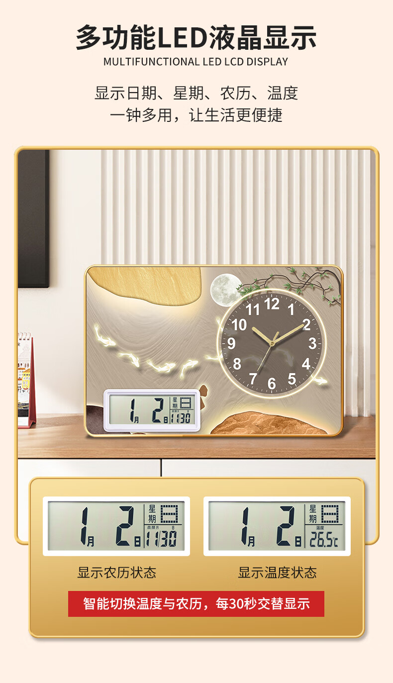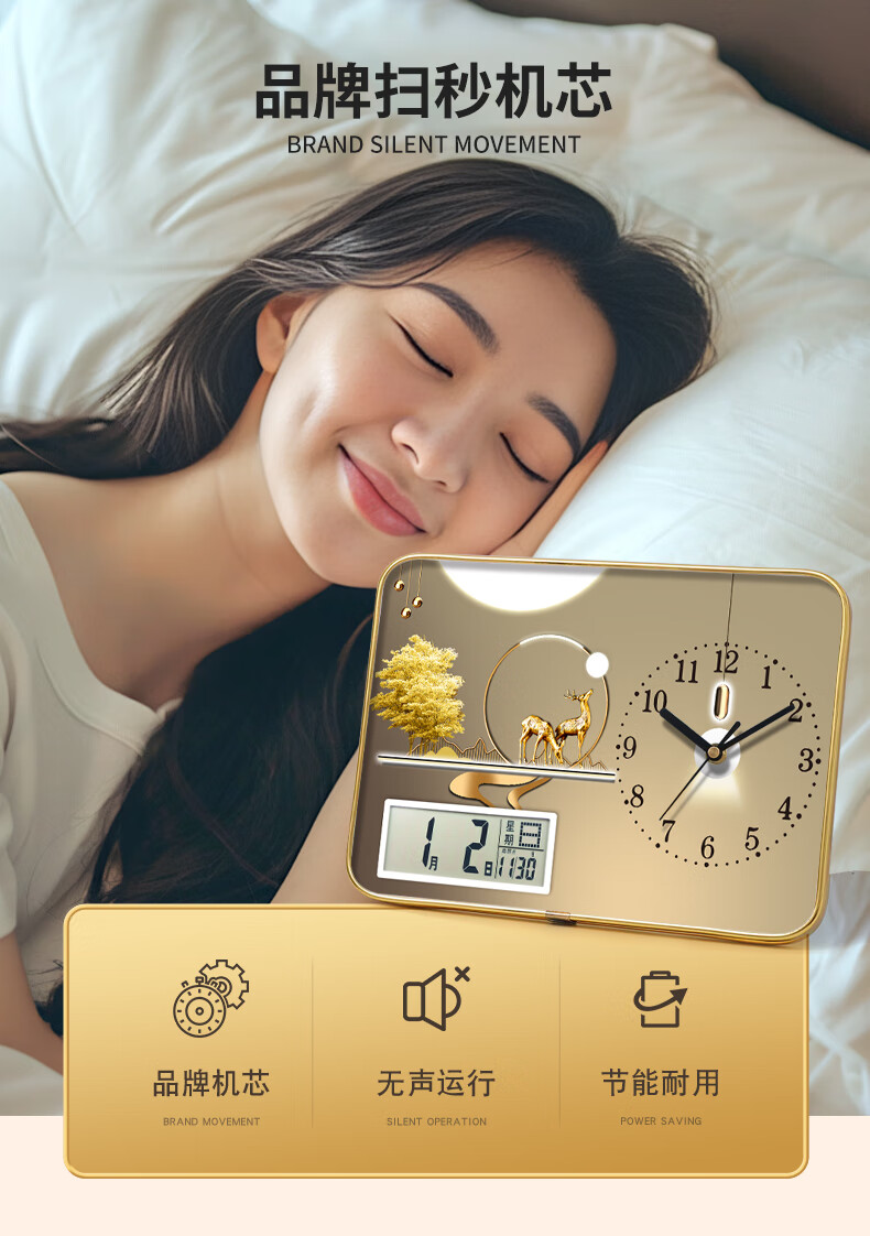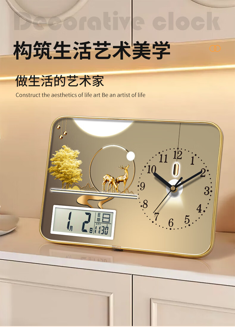 Zhong Naier Home Bedroom Living Room Wall Clock 2025 New Creative New Chinese Style Table Clock Silent Decoration Golden Deer Blessing with Calendar Table Clock 20*30CM
