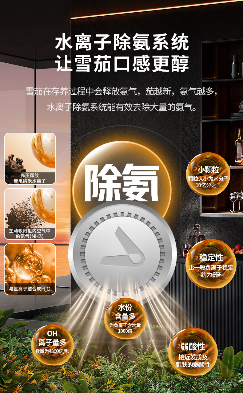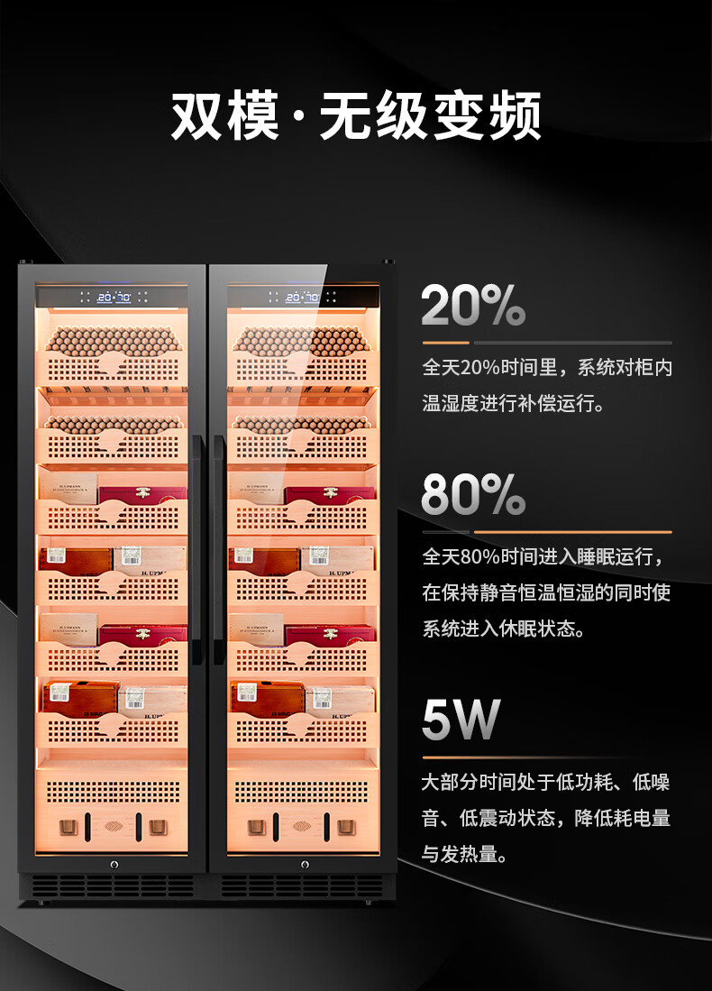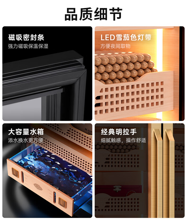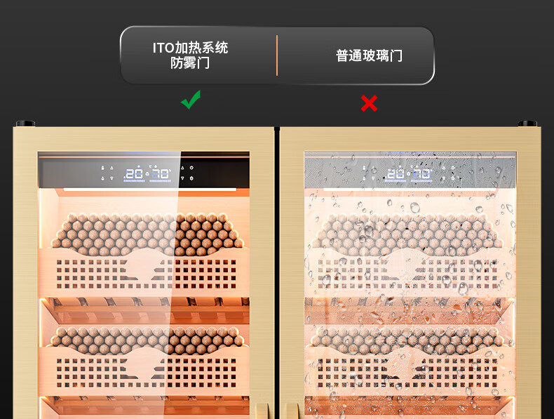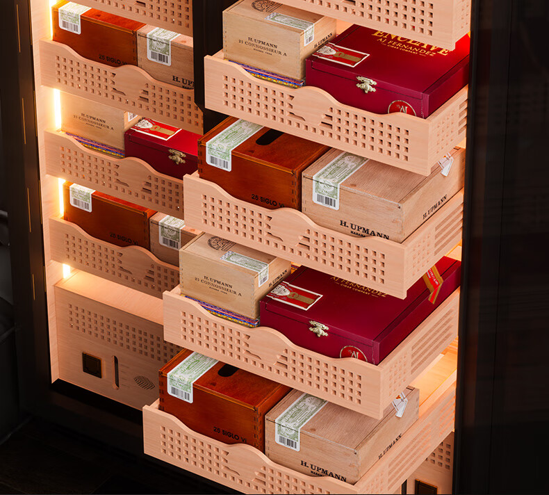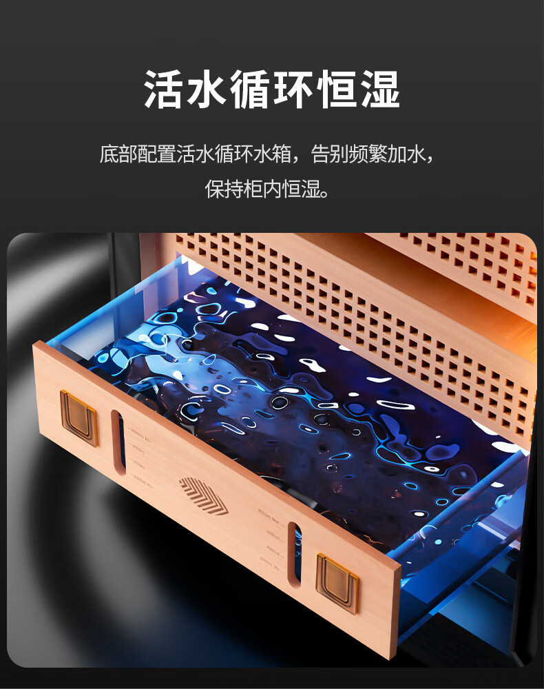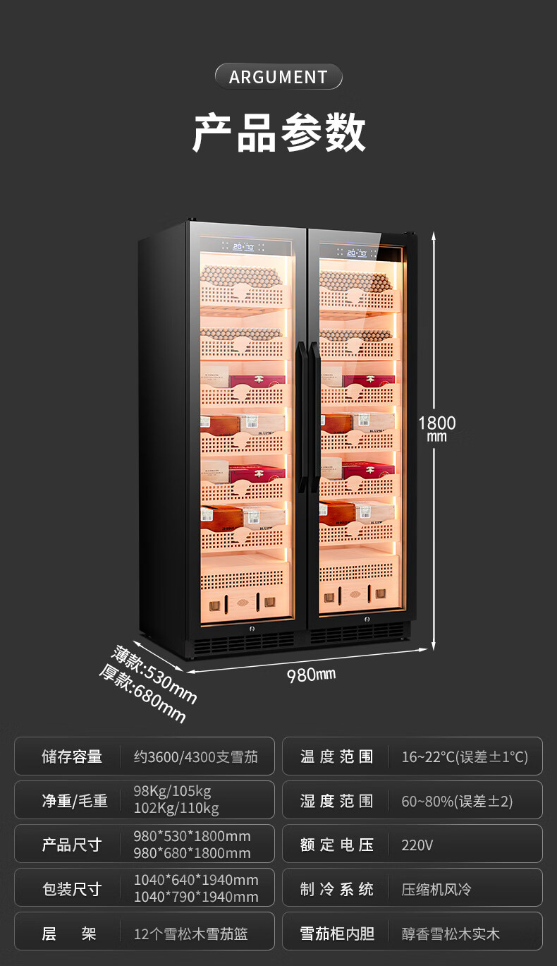 Kelong 680C cigar cabinet with constant temperature and humidity, precise frequency conversion, cedar wood liner and shelf, WiFi smart IoT control, air-cooled water ion ammonia removal compressor, cigar and red wine dual-purpose cabinet, rose gold luxury accessories, clean ammonia + WiFi + cedar wood liner and shelf, thick version (depth 680mm)