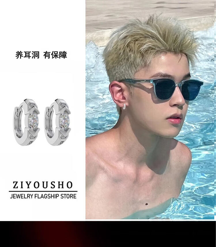 Free Talk star's same Eye of Horus earrings for men. Handsome and high-end full diamond earrings as a gift for boyfriend and lover. Single piece