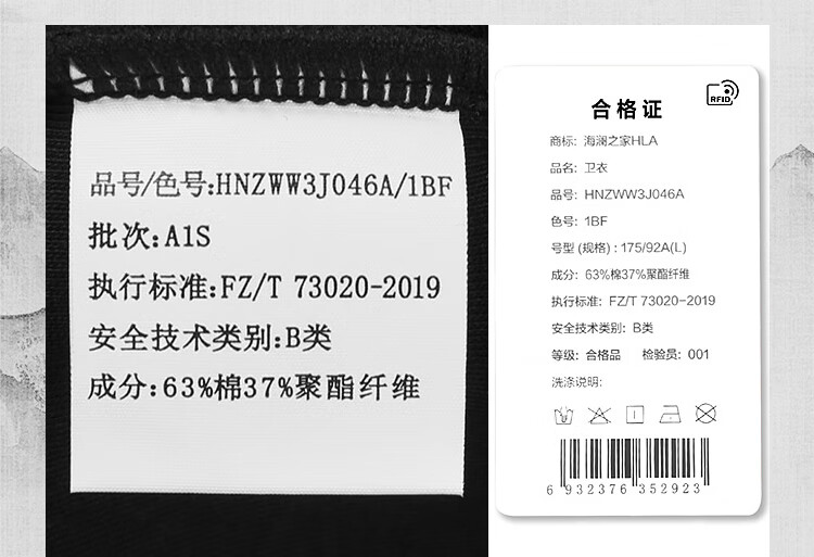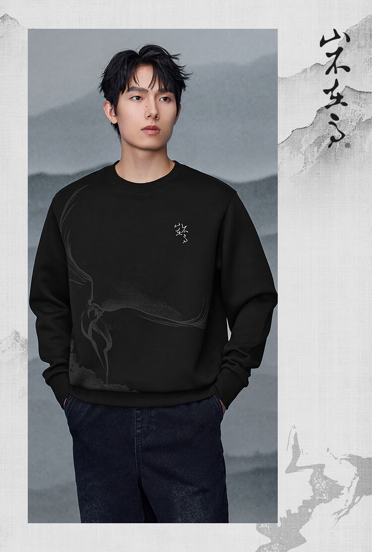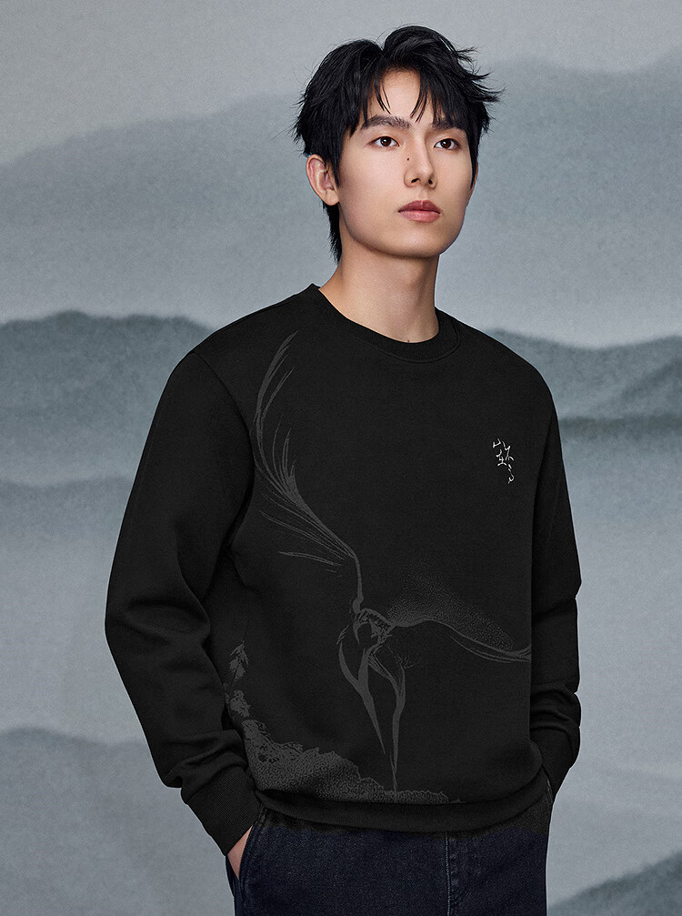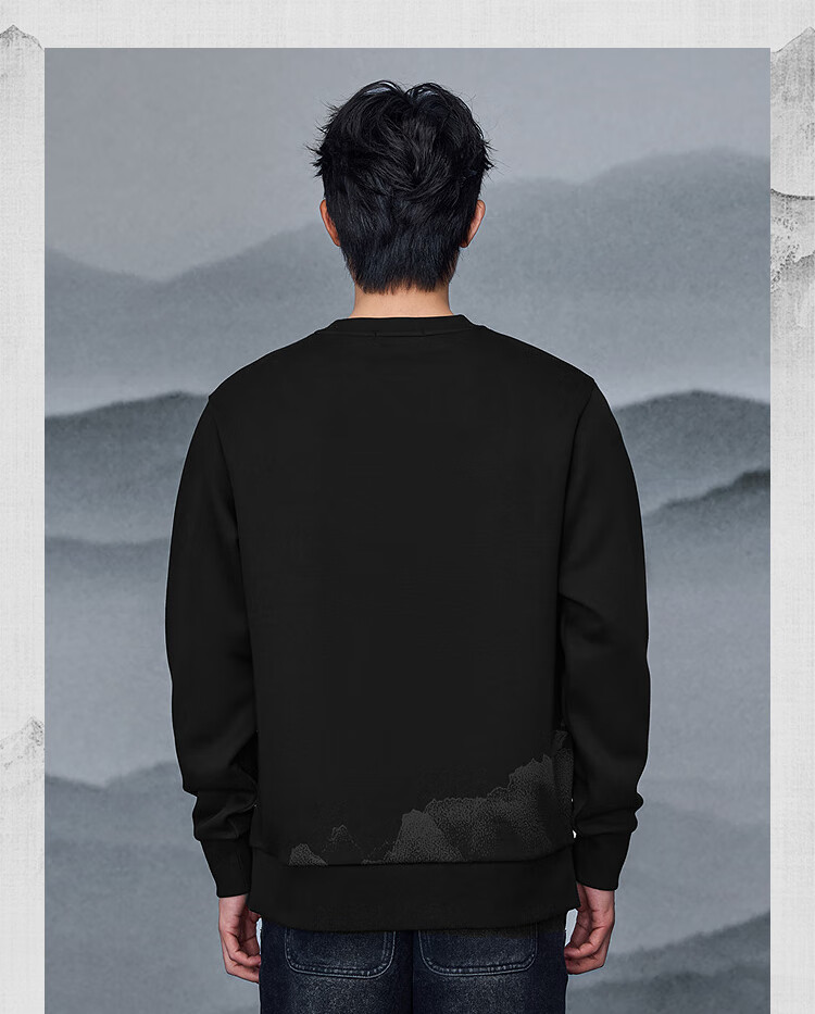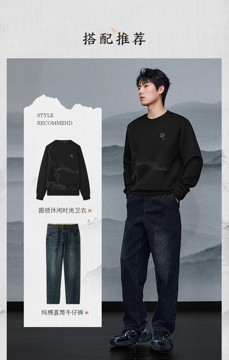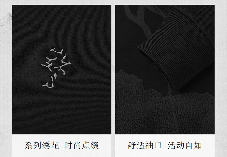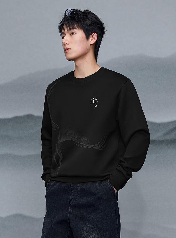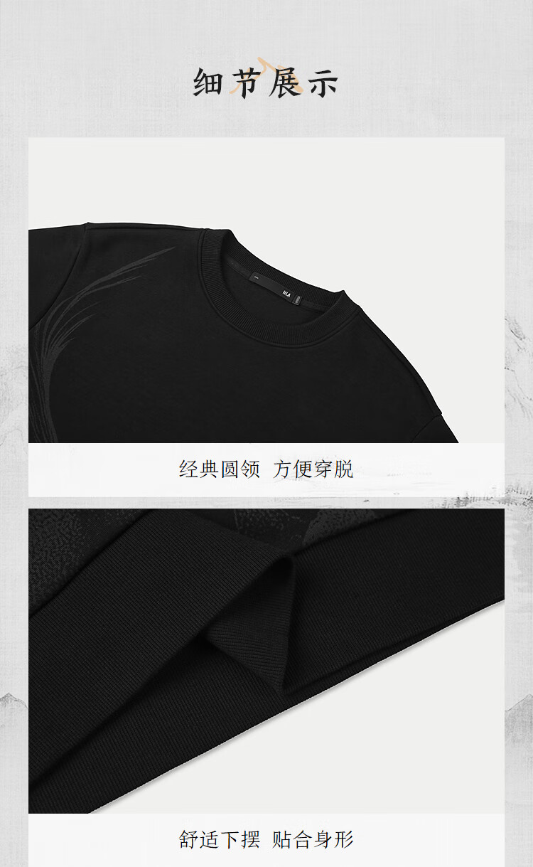 Hailan House (HLA) sweatshirt for men, high round neck, embroidered long sleeves, men's autumn, black pattern 1B L 175/92A recommended 137~150Jin Jin equals 0.5 kg