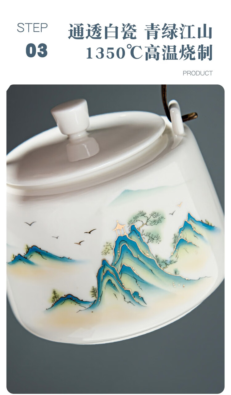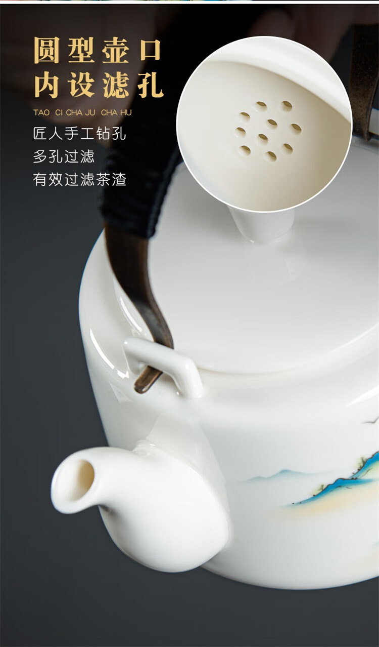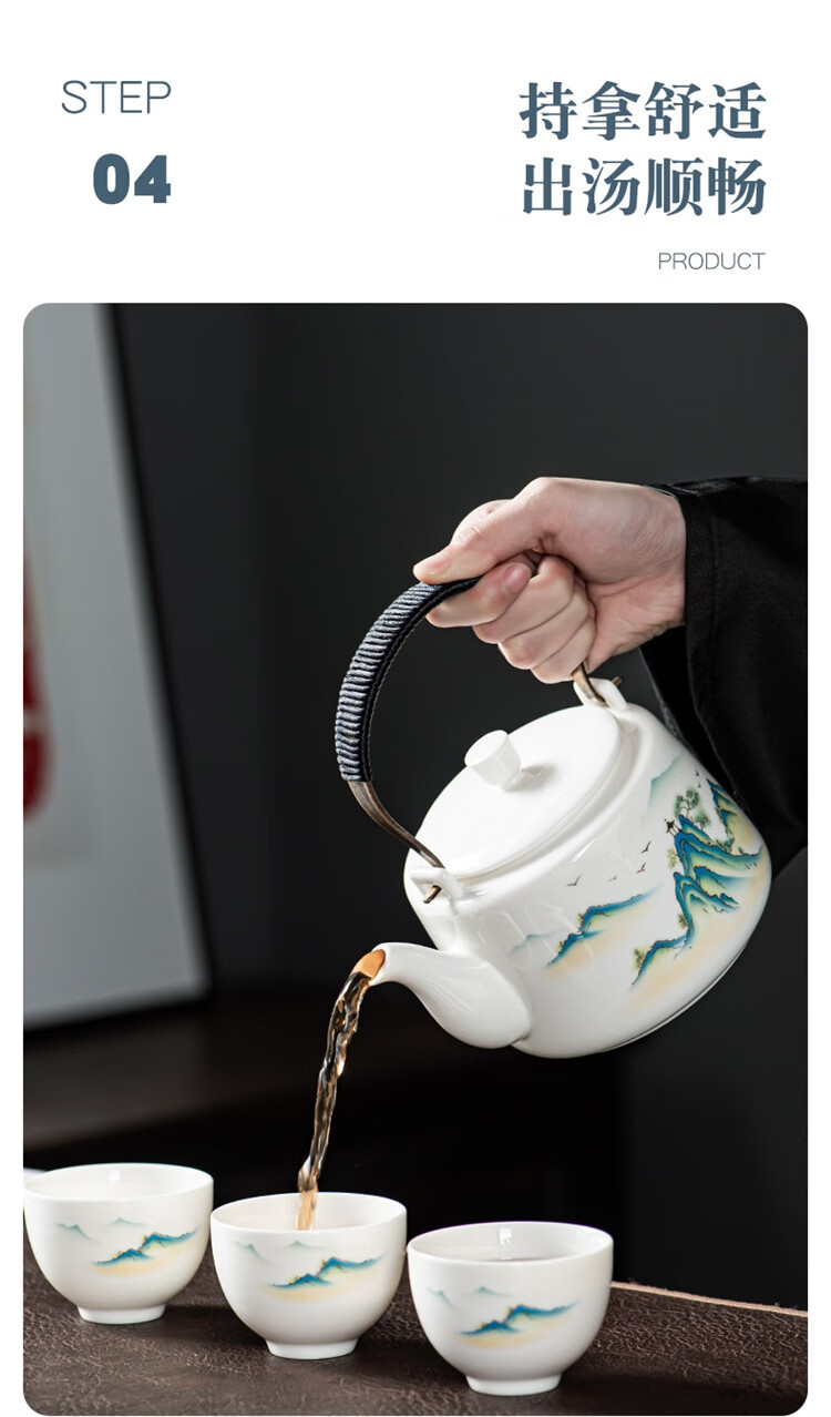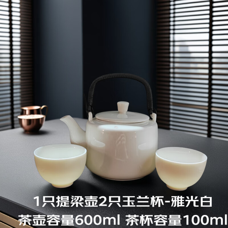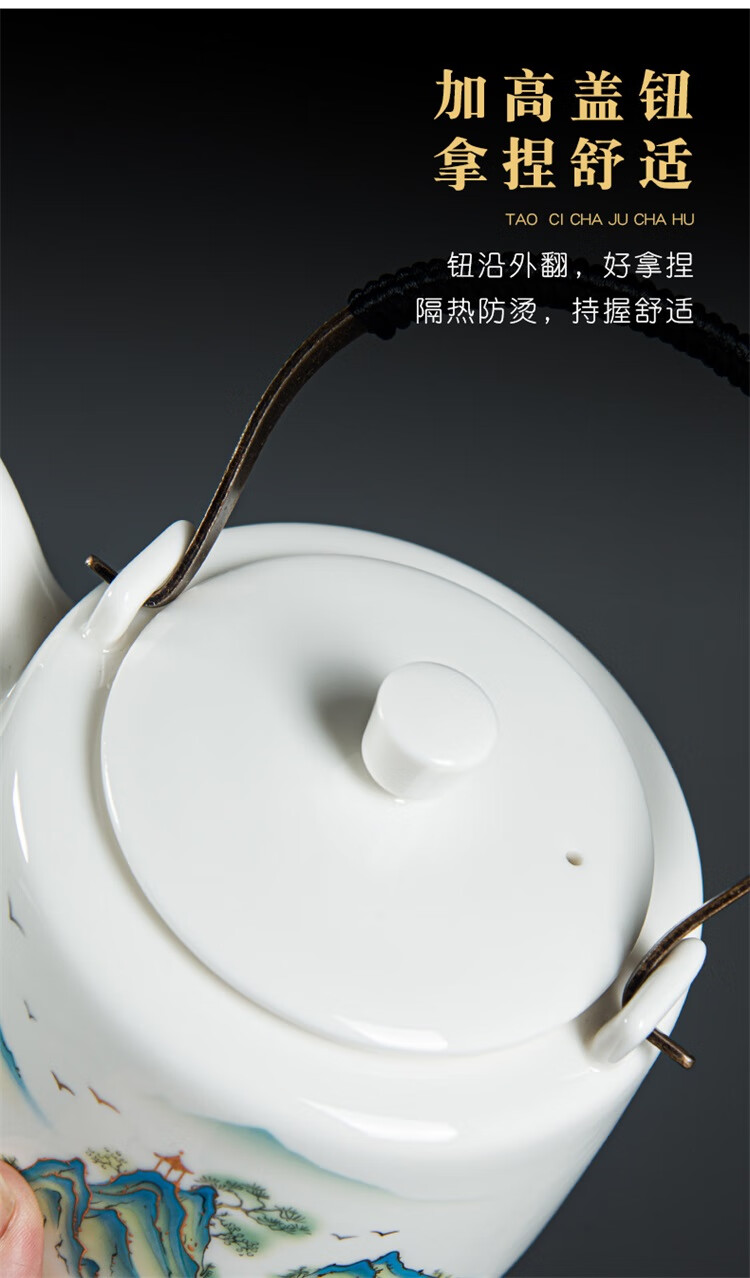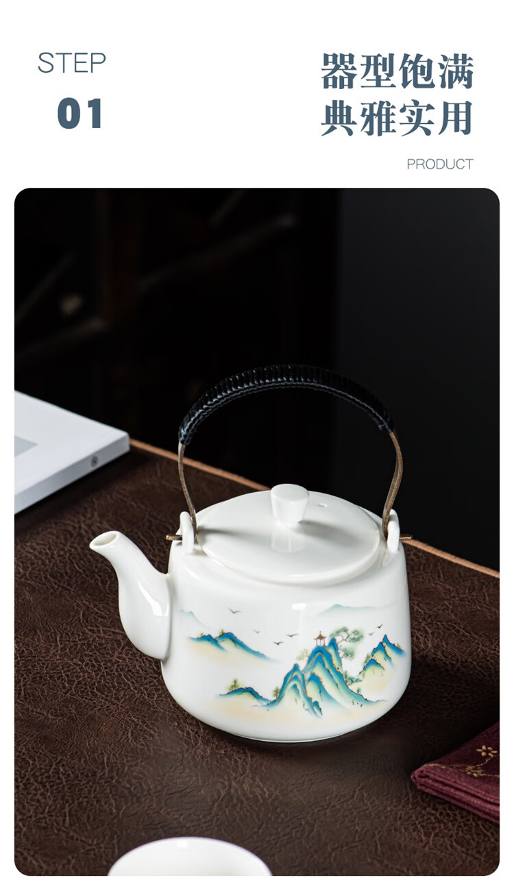 Suet-fat jade porcelain teapot one pot and two cups tea set large capacity household cold kettle Chinese teapot tea cup 600ml teapot single pot - Yunhai