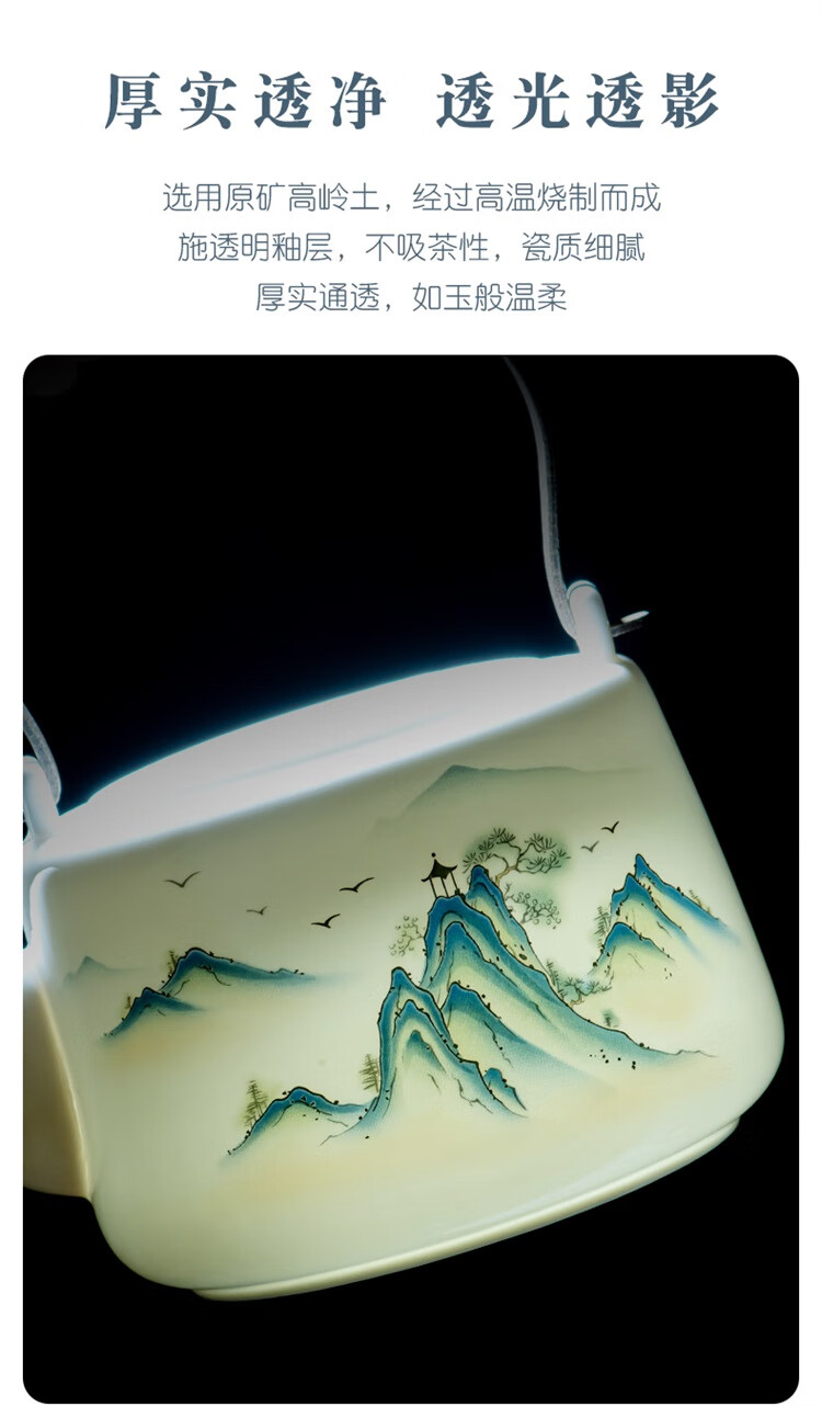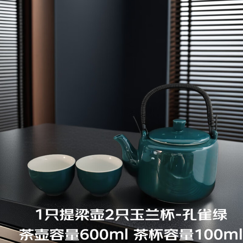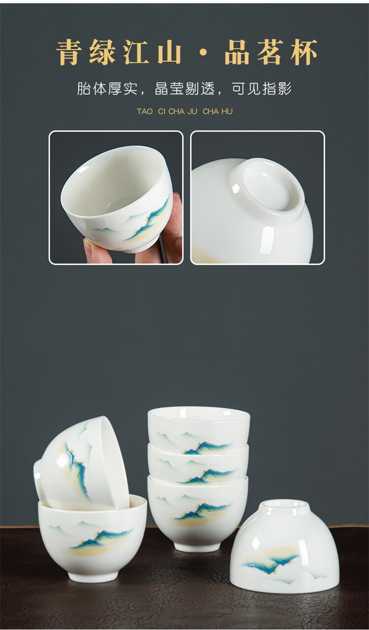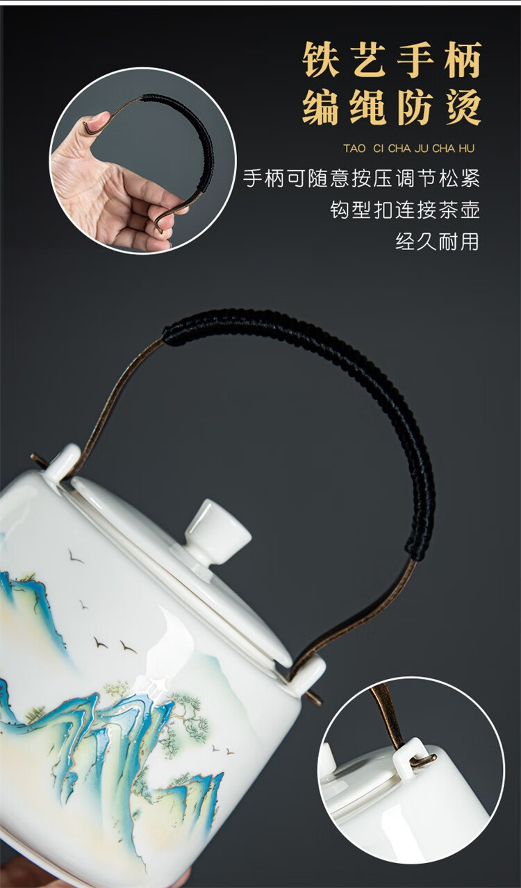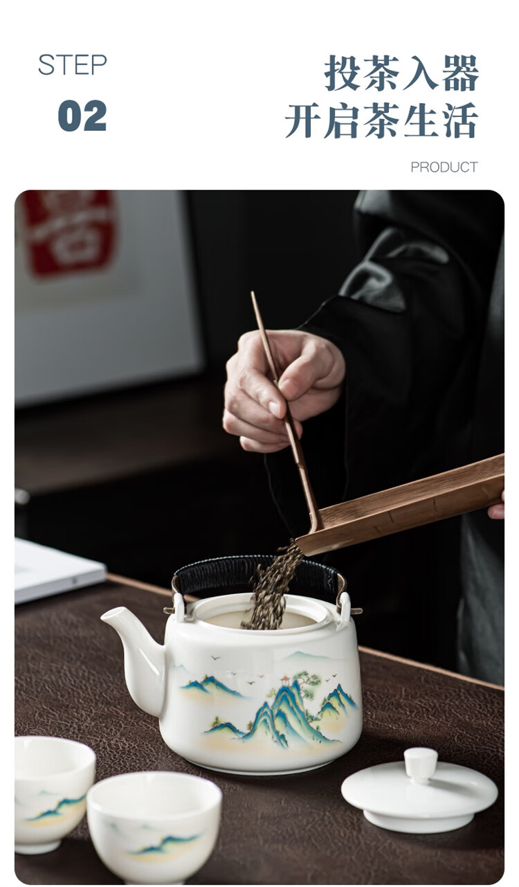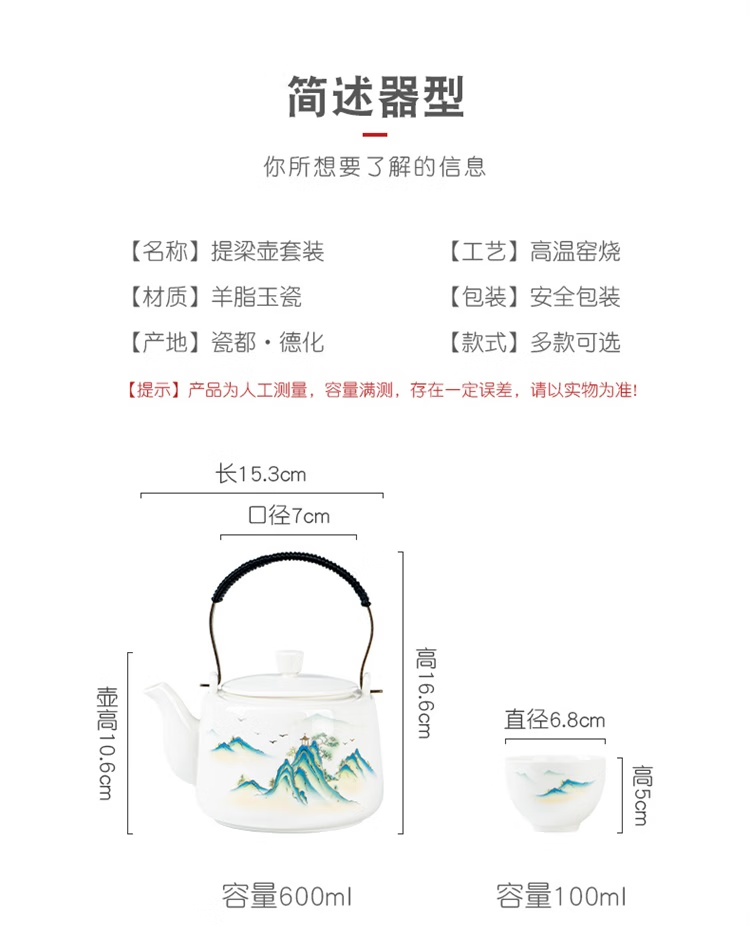 Suet-fat jade porcelain teapot one pot and two cups tea set large capacity household cold kettle Chinese teapot tea cup 600ml teapot single pot - Yunhai