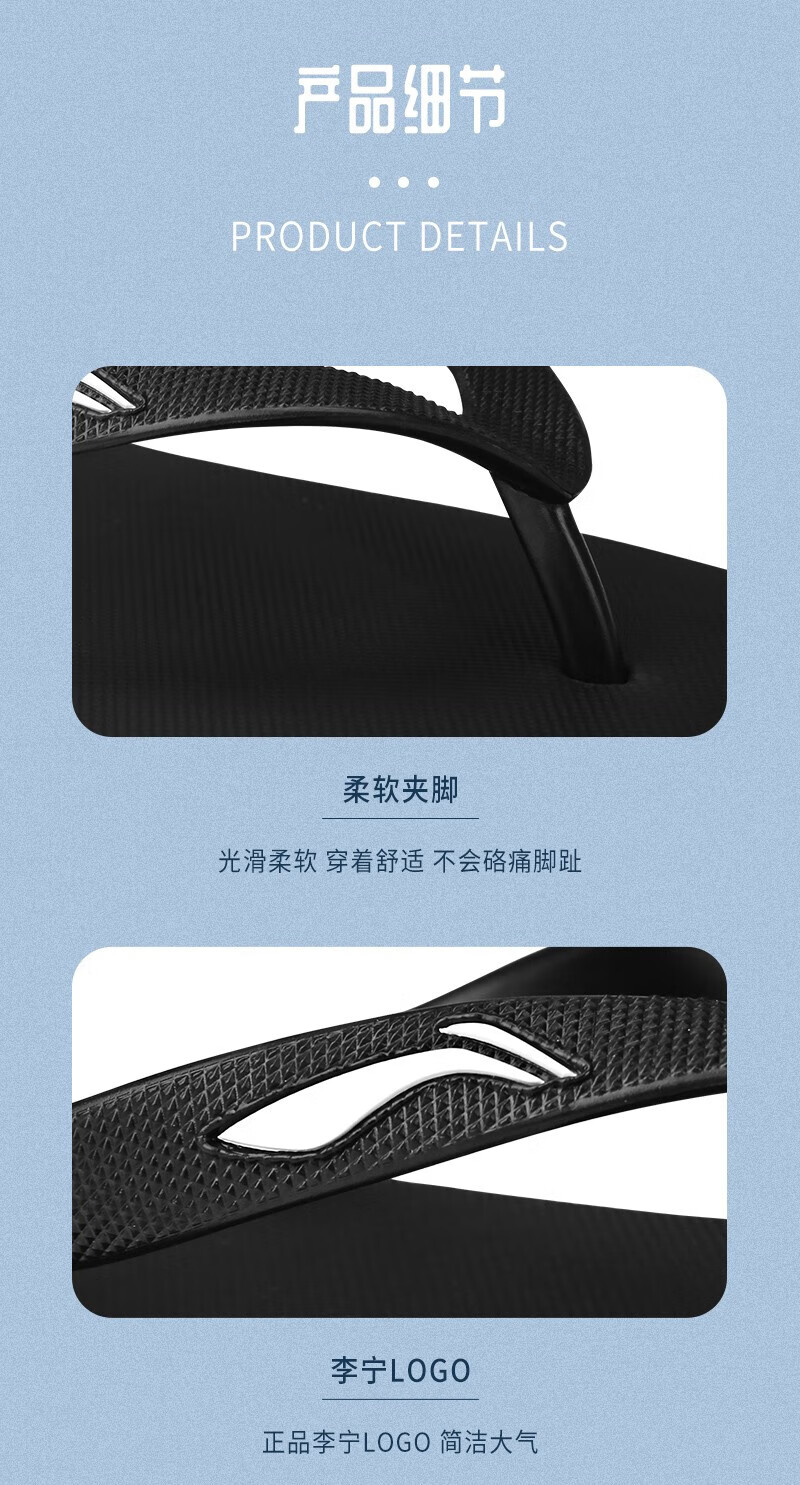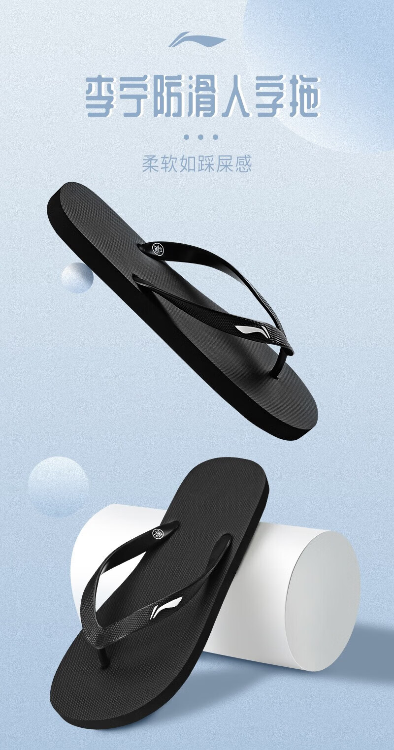Li Ning flip-flops men's slippers, non-slip, wear-resistant, anti-pinch toe boards, beach smelly new outer wear, swimming and bathing, black LNXT800-1 39