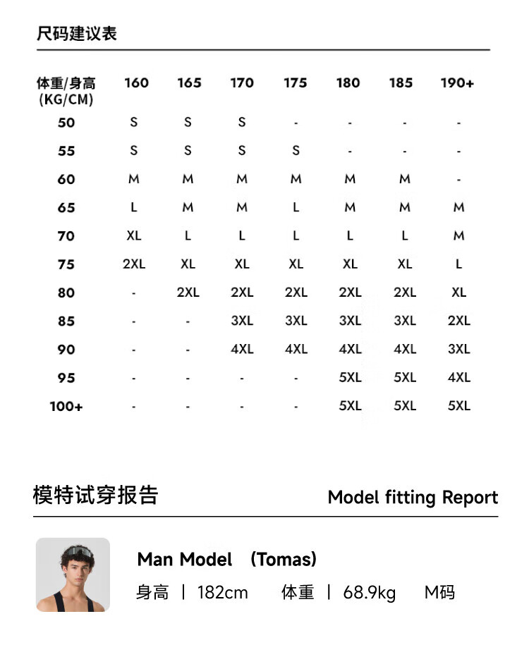 China (cm) 160-165/84-86 165-170 / 88-90 167-172 / 92-96 168-173 / 98-102 170-176 / 106-110