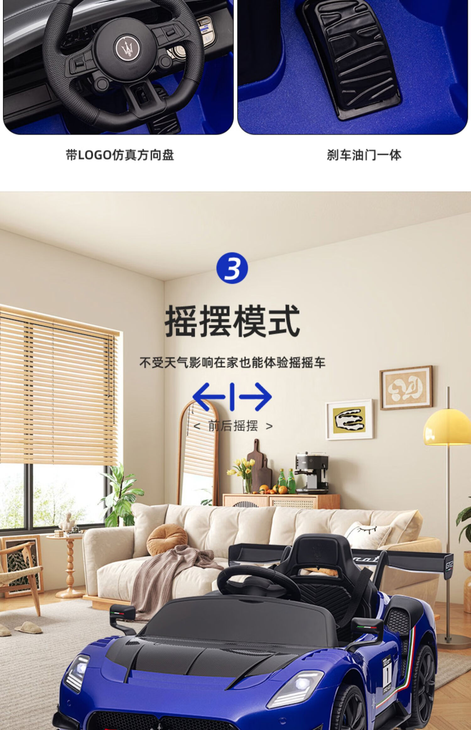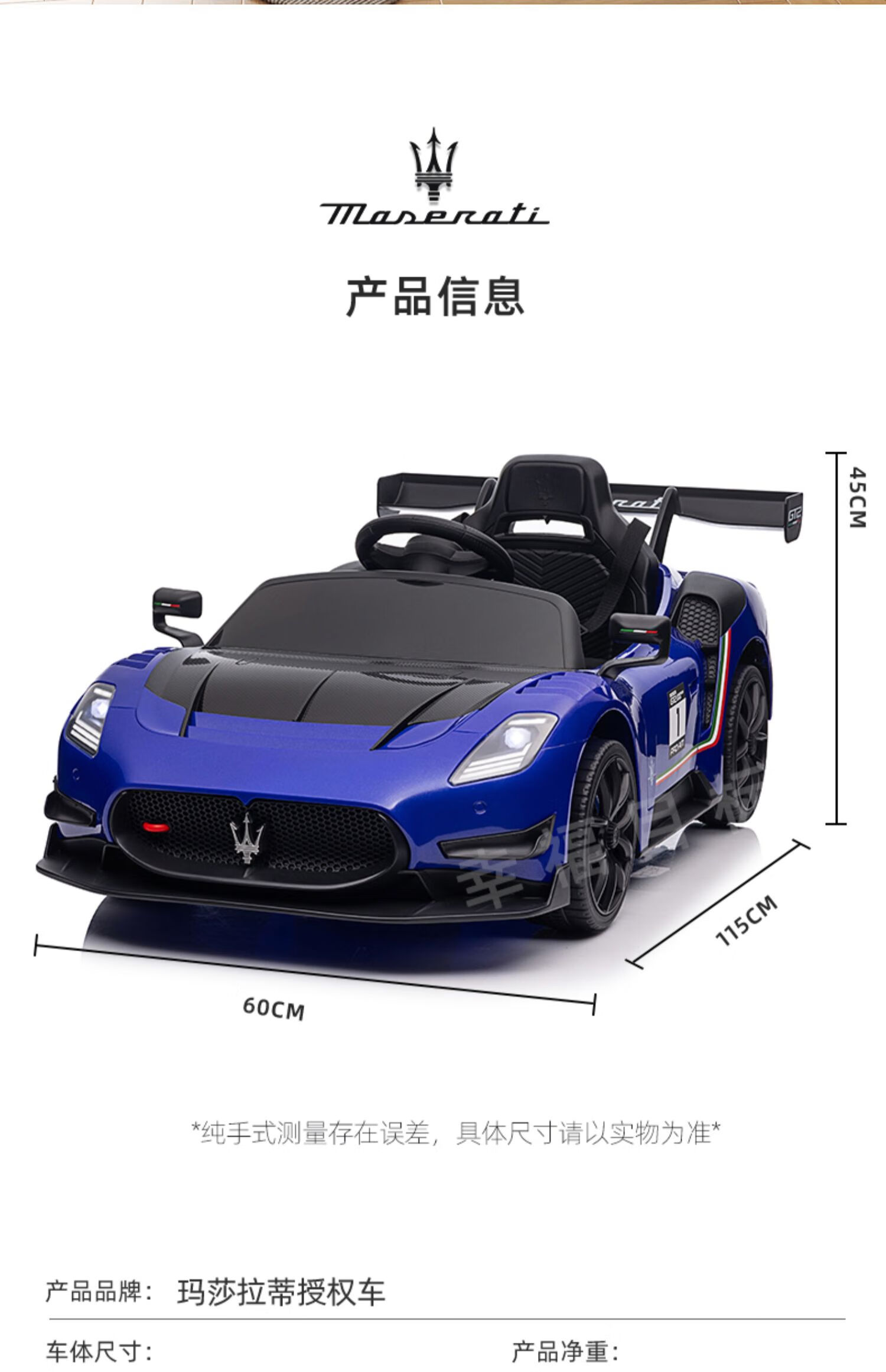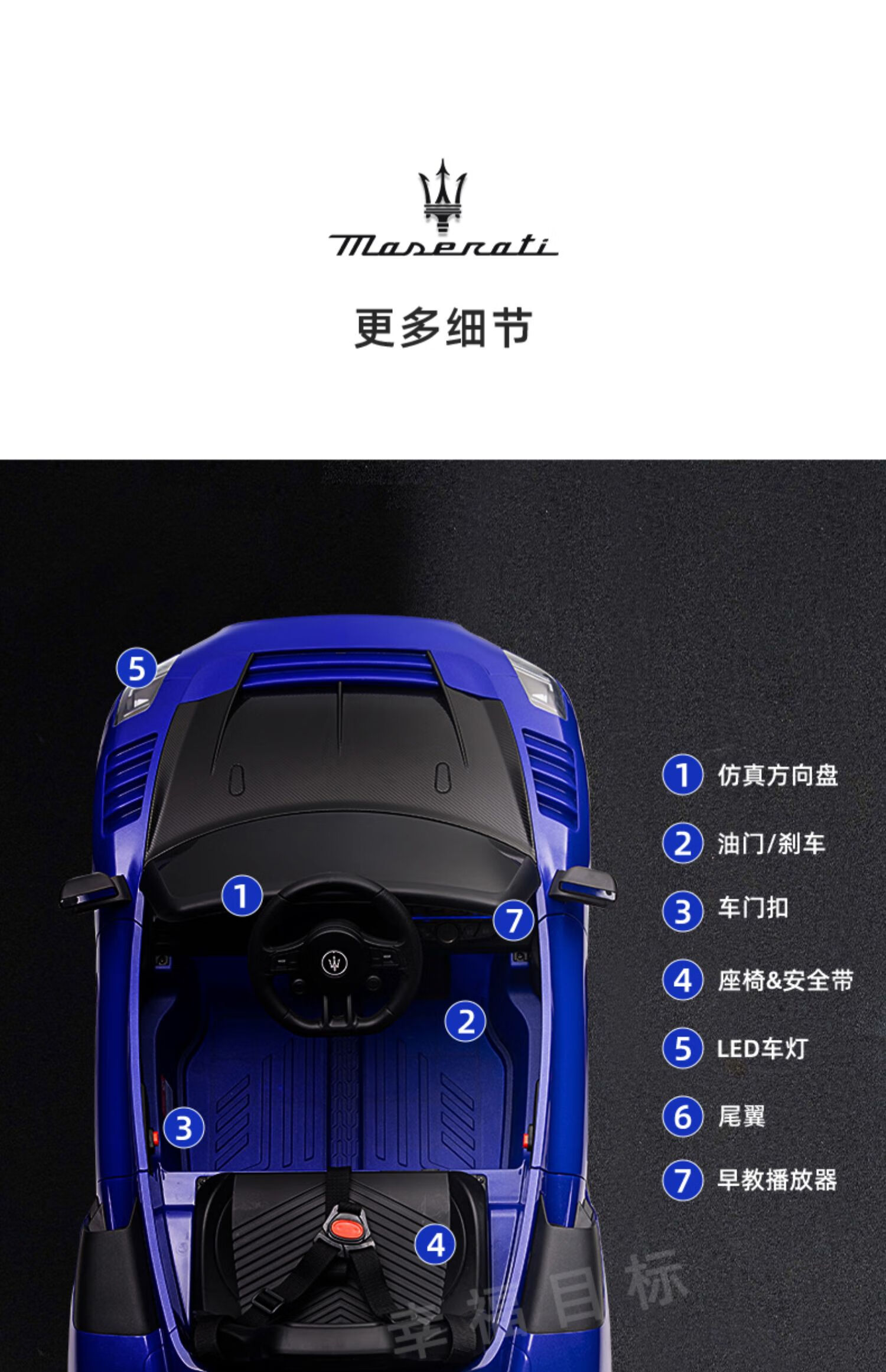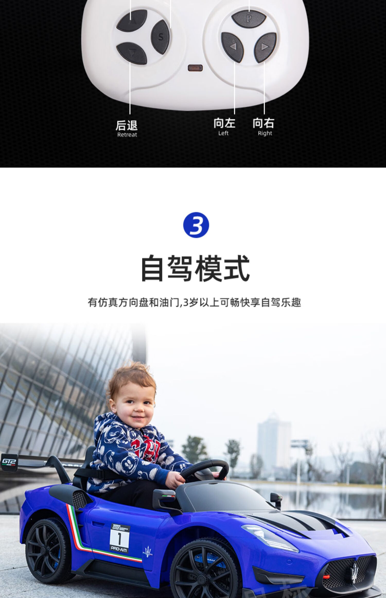 ChiNami Maserati 1-7 years old children's car toy electric car four-wheeled child remote control battery sports car flagship blue