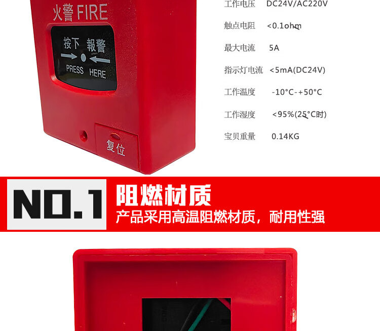 Fire switch emergency alarm button manual reset alarm bell switch alarm panel switch 24V/220V