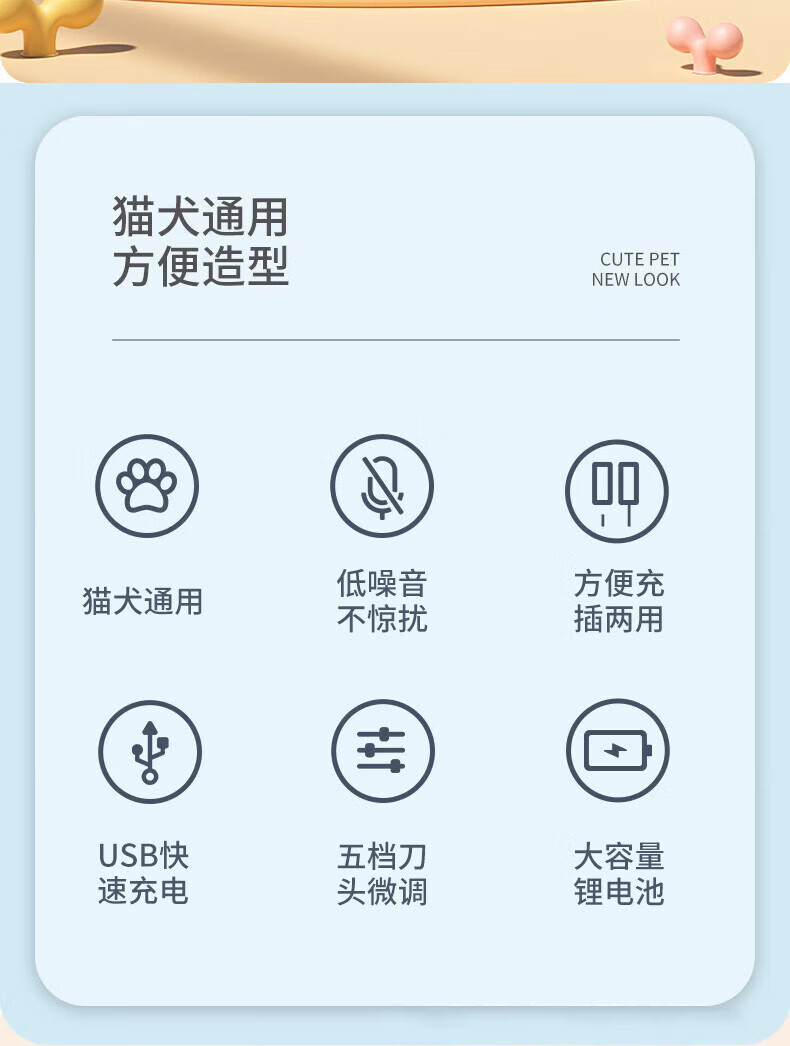 Bei Chuzhong pet shaver dog hair clipper dog hair shaver cat hair shaver dog hair pusher shaver plus nail clipper + scissor + comb, etc. Plus 4 sizes of positioning comb 5W power