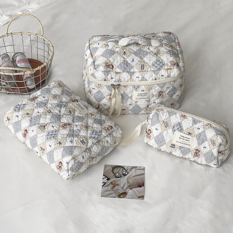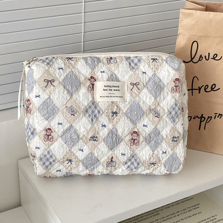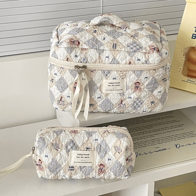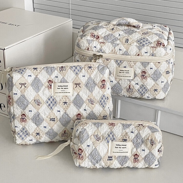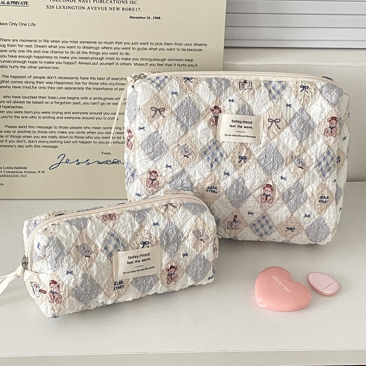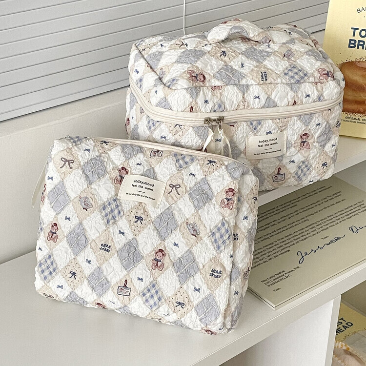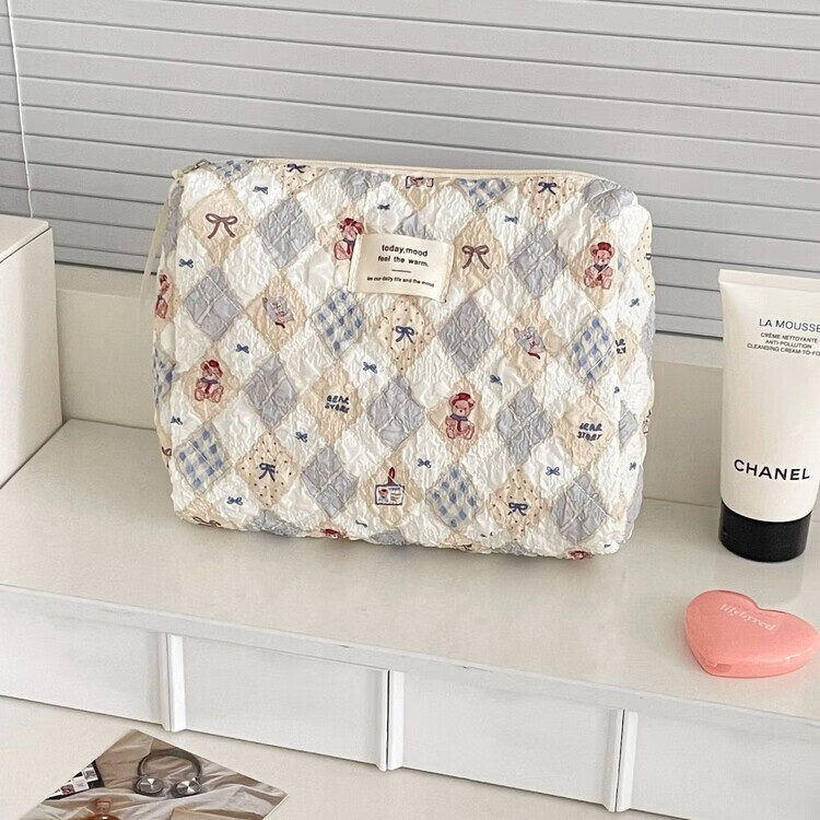Diamond Teddy Bear Cosmetic Bag, High-Looking Student Travel Portable Contrast Color Toiletries Bag, Large Capacity Portable Storage Bag, Retro Diamond Teddy Bear - Octagonal Bag