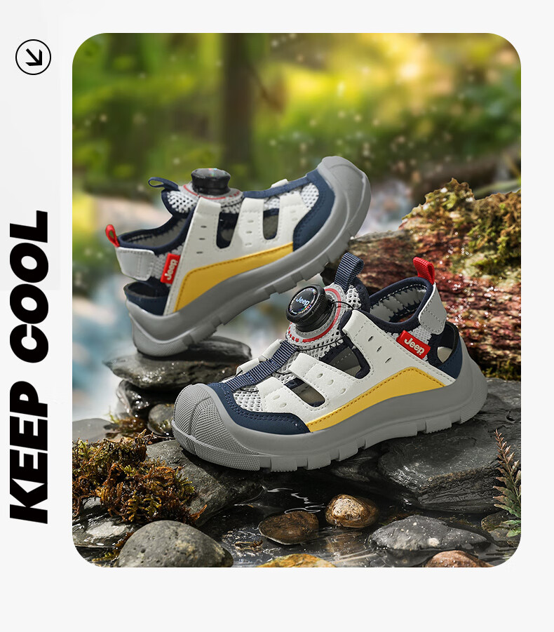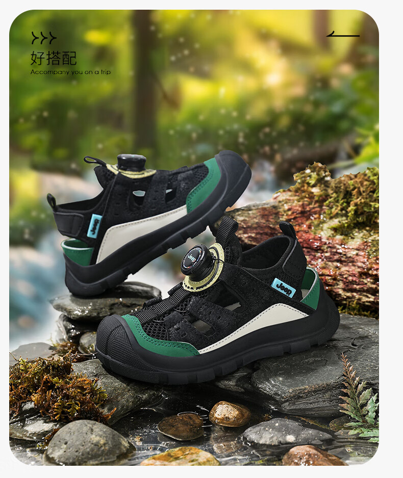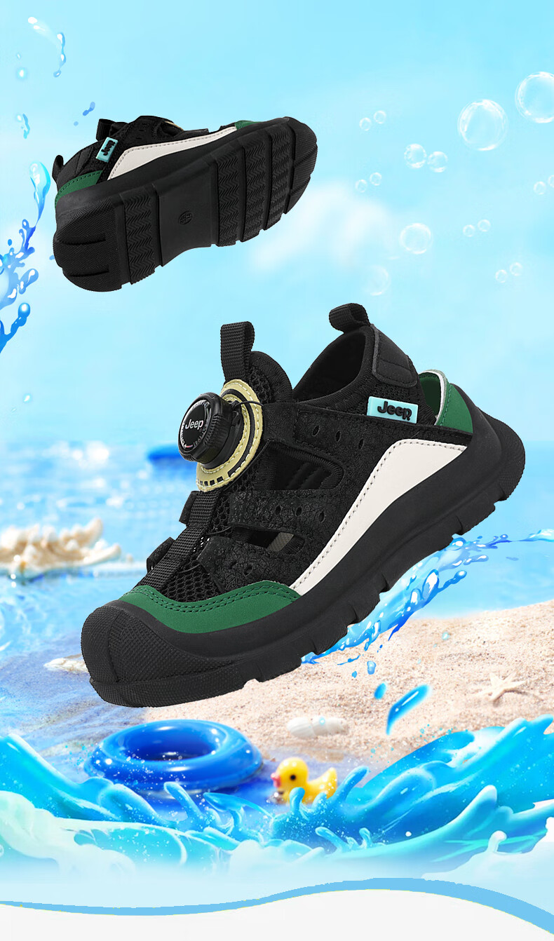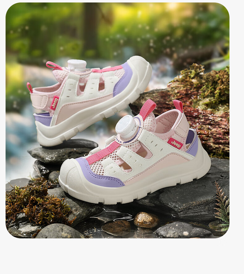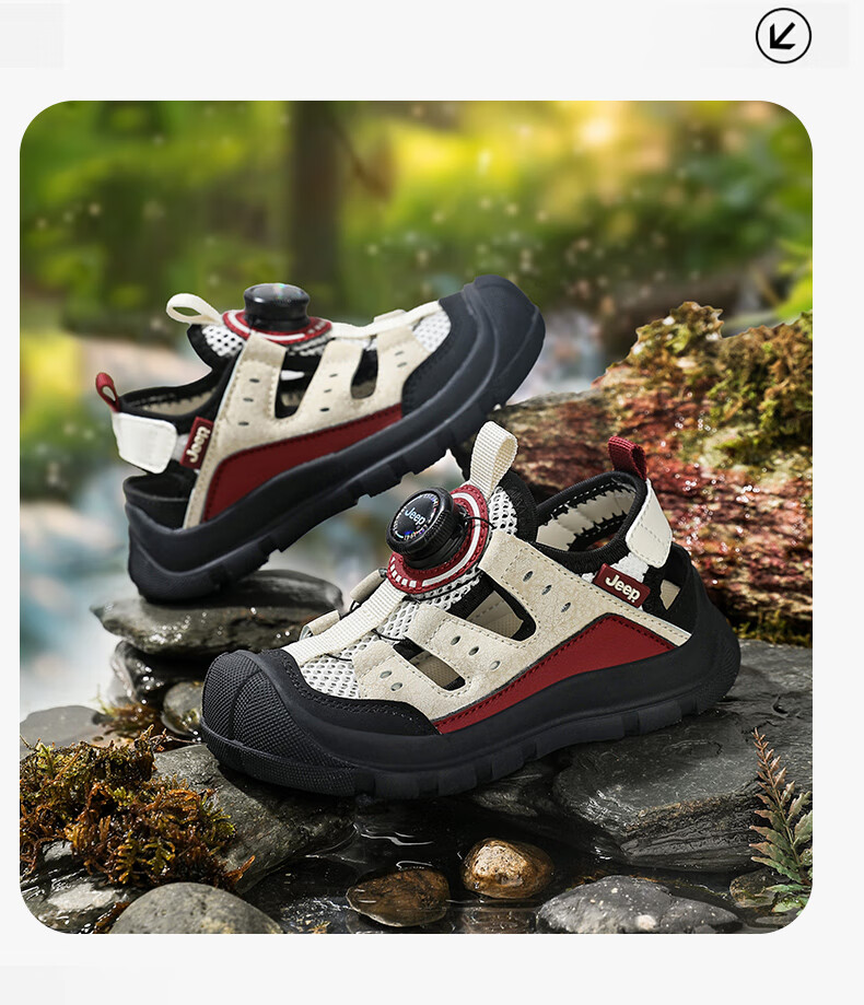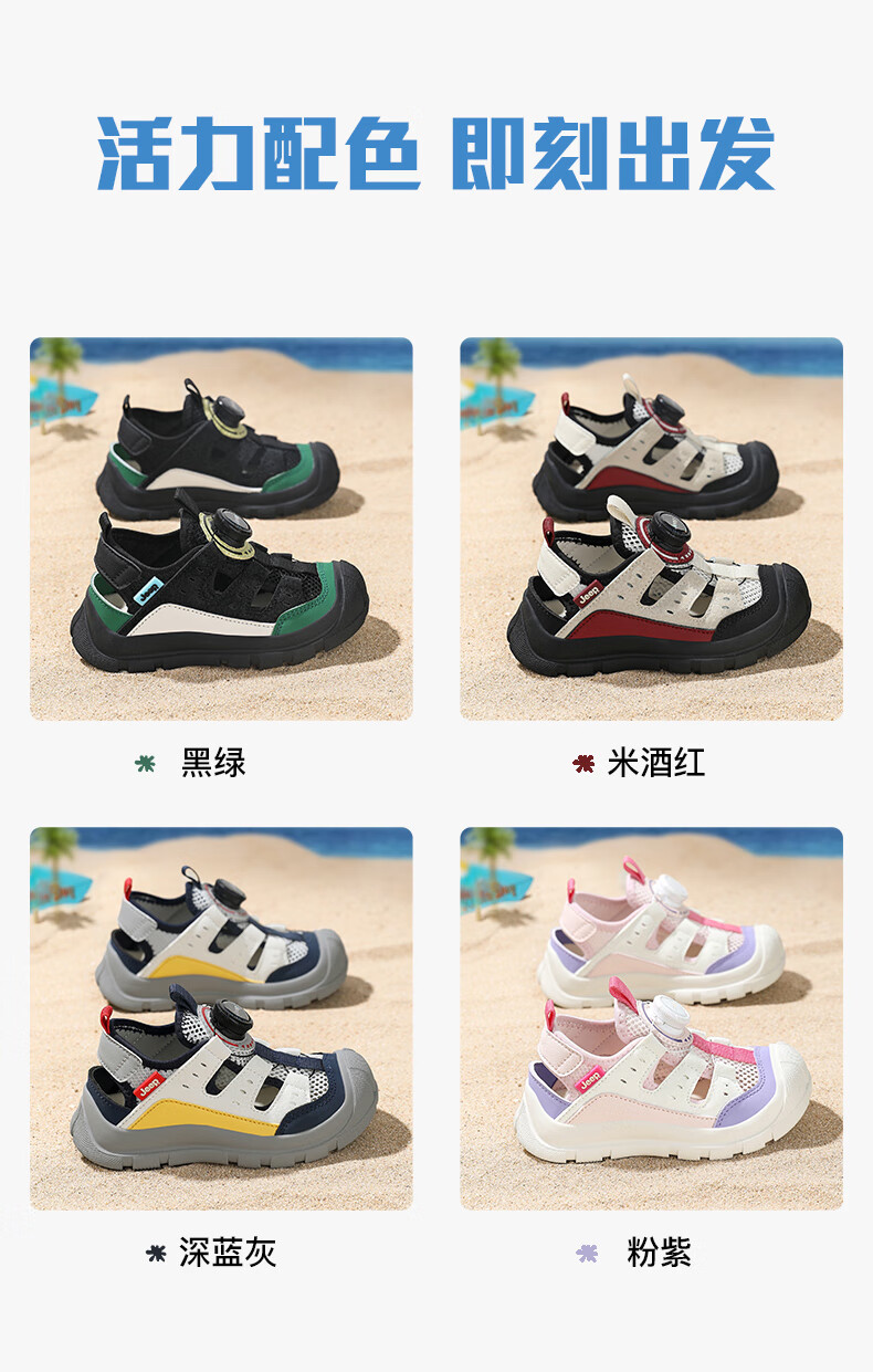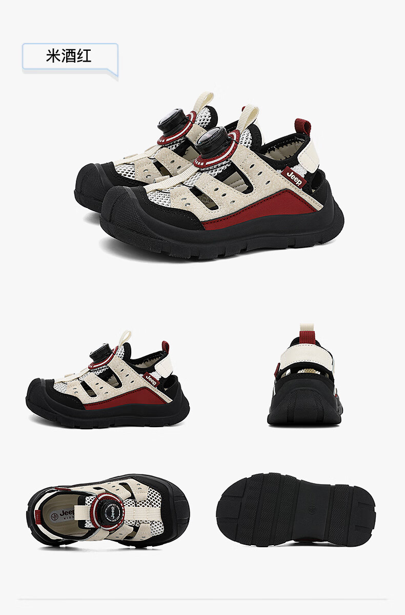 Jeep children's Baotou sandals 2025 new summer men and women's river tracing shoes outdoor wading shoes non-slip beach shoes rice wine red 32 inner length of the shoe is about 20.6cm