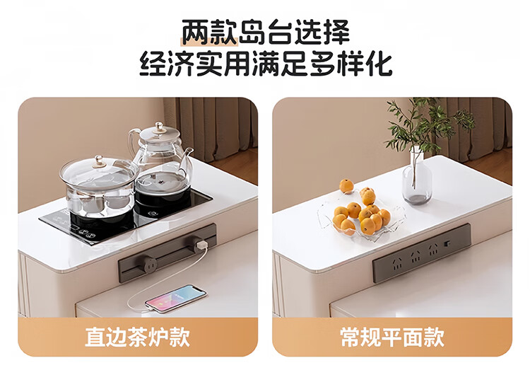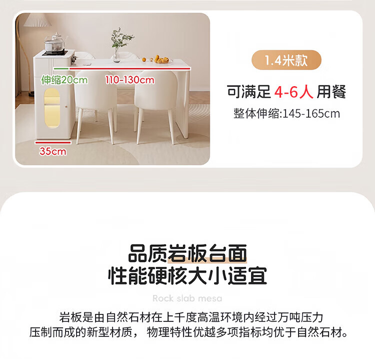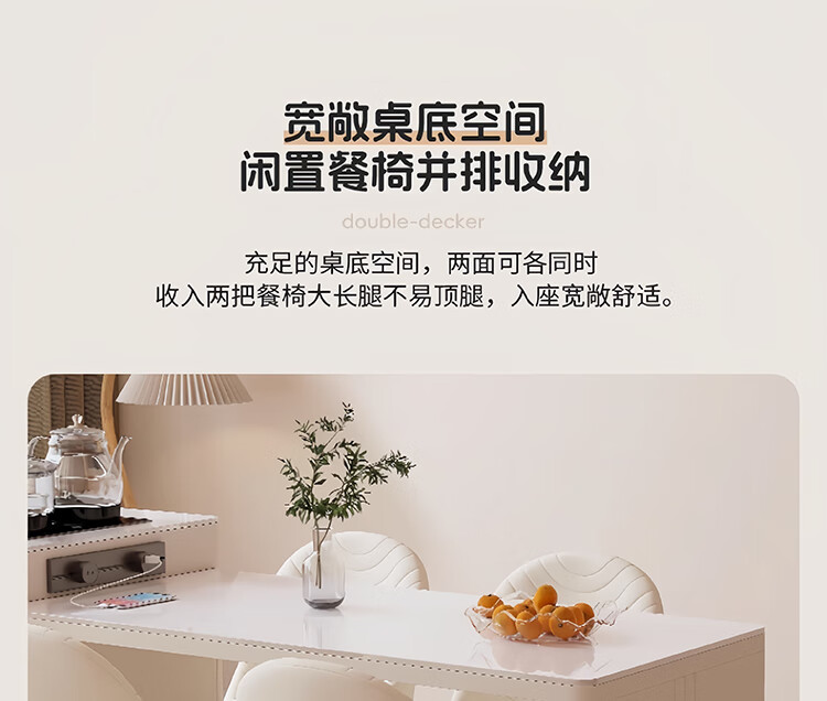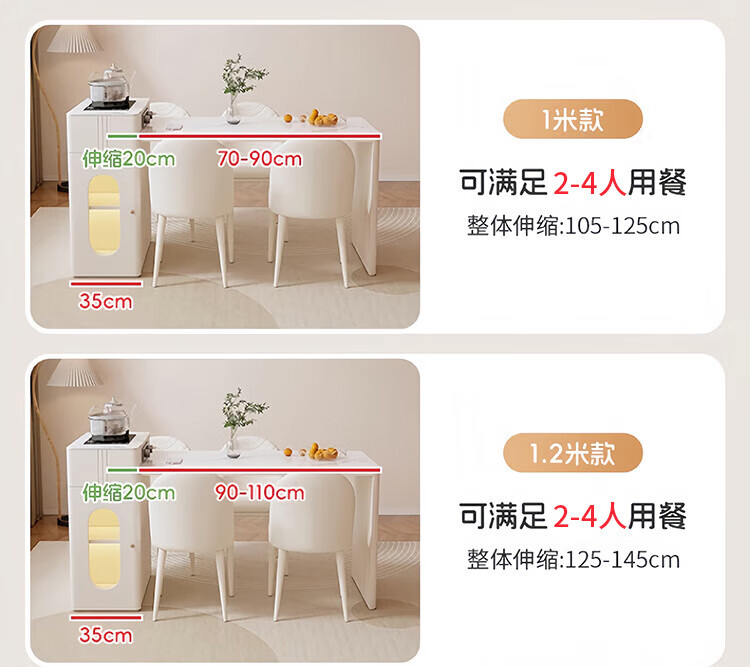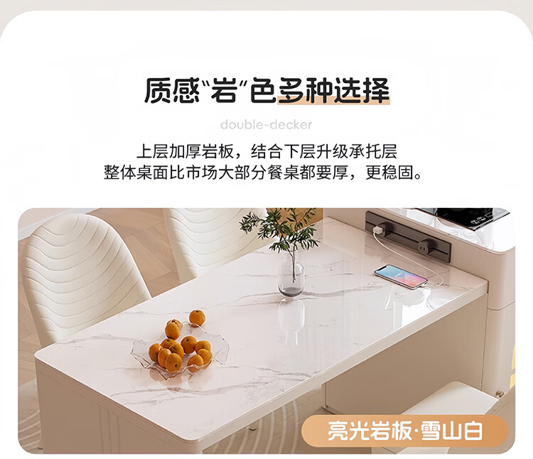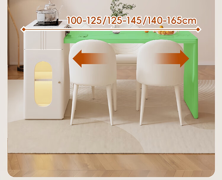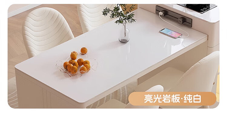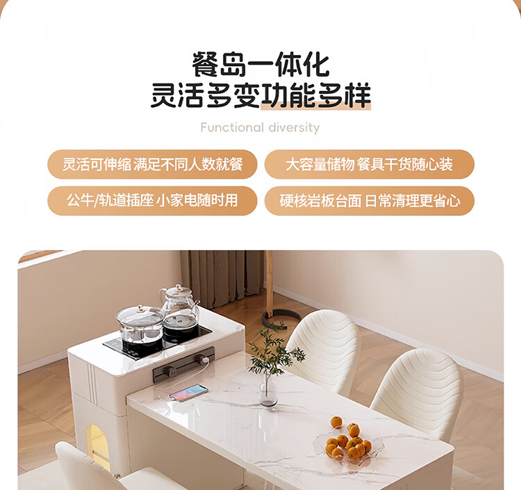 Fashidu cream style slate island dining table integrated 2025 new hot style retractable small-sized household multi-functional tea table tea stove style bull socket island table + 2 chairs 1 meter telescopic total length 105-125cm