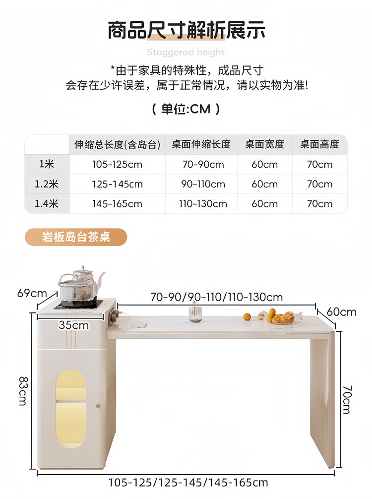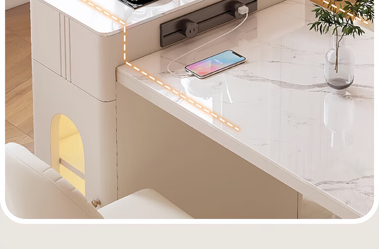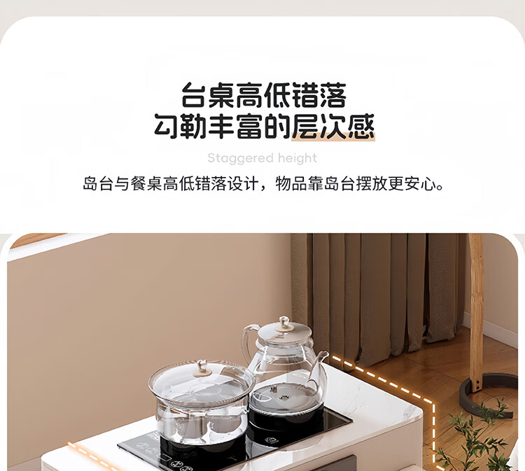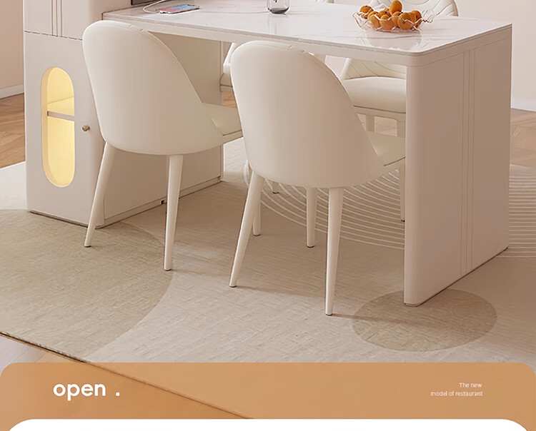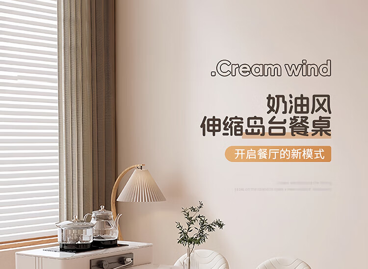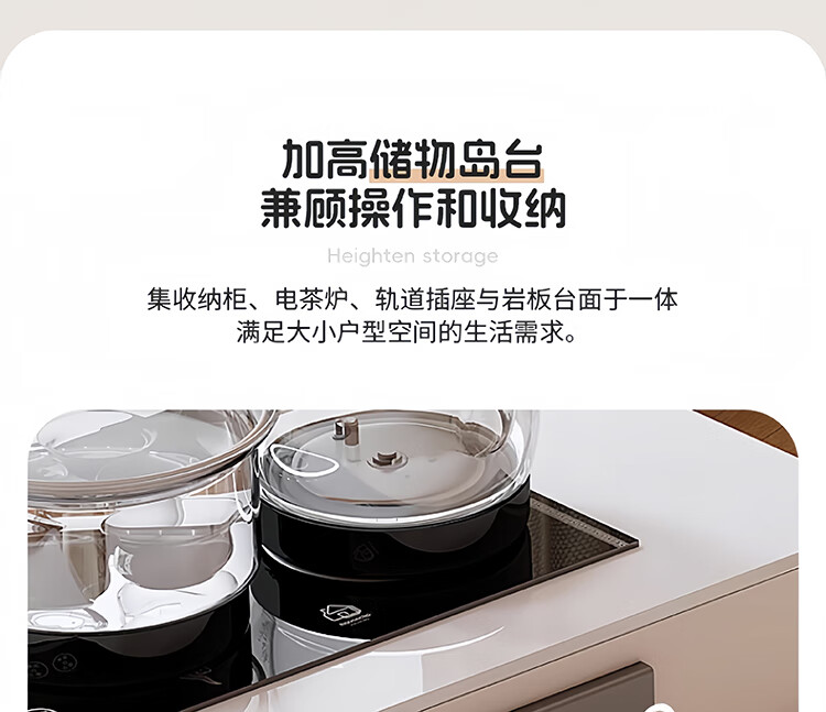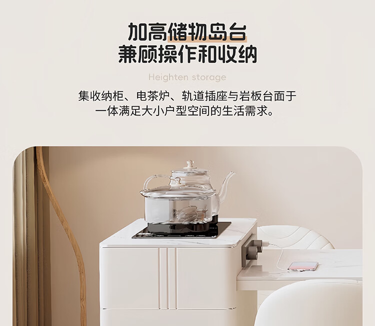 Fashidu cream style slate island dining table integrated 2025 new hot style retractable small-sized household multi-functional tea table tea stove style bull socket island table + 2 chairs 1 meter telescopic total length 105-125cm