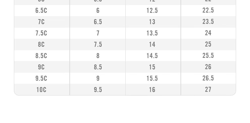 Length (cm) 22.8 23.1 23.5 24.1 24.5 25.1 25.7 26 26.7 27.3 27.9 28.6 29.2