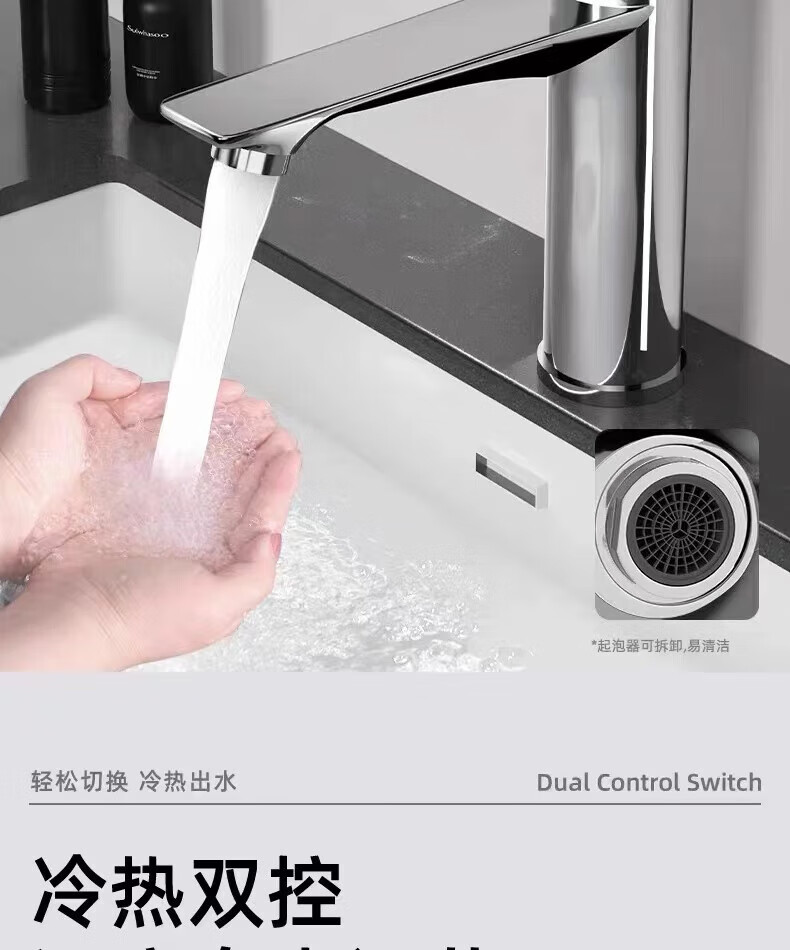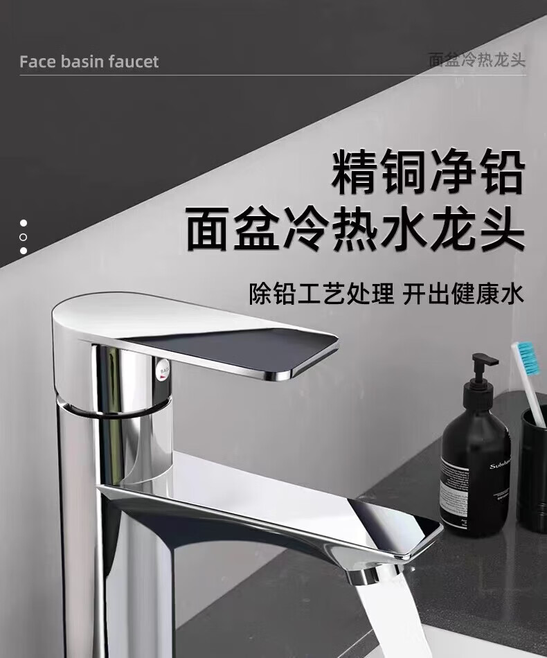 Washbasin faucet hot and cold water two-in-one bathroom cabinet washbasin washbasin single faucet household high standard all copper hot and cold flat panel + 80cm anti-